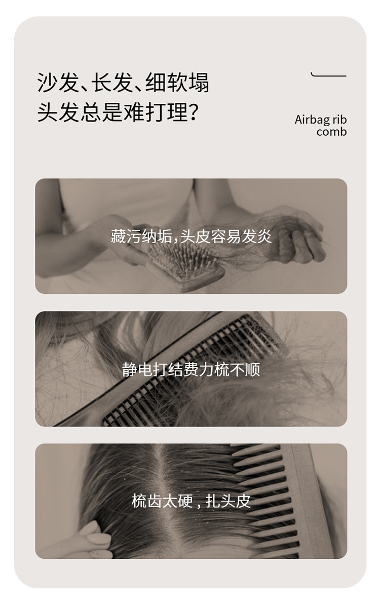 FaSoLa蓬松高颅顶梳子女士专用长发造型按摩经络气囊排骨卷发梳子