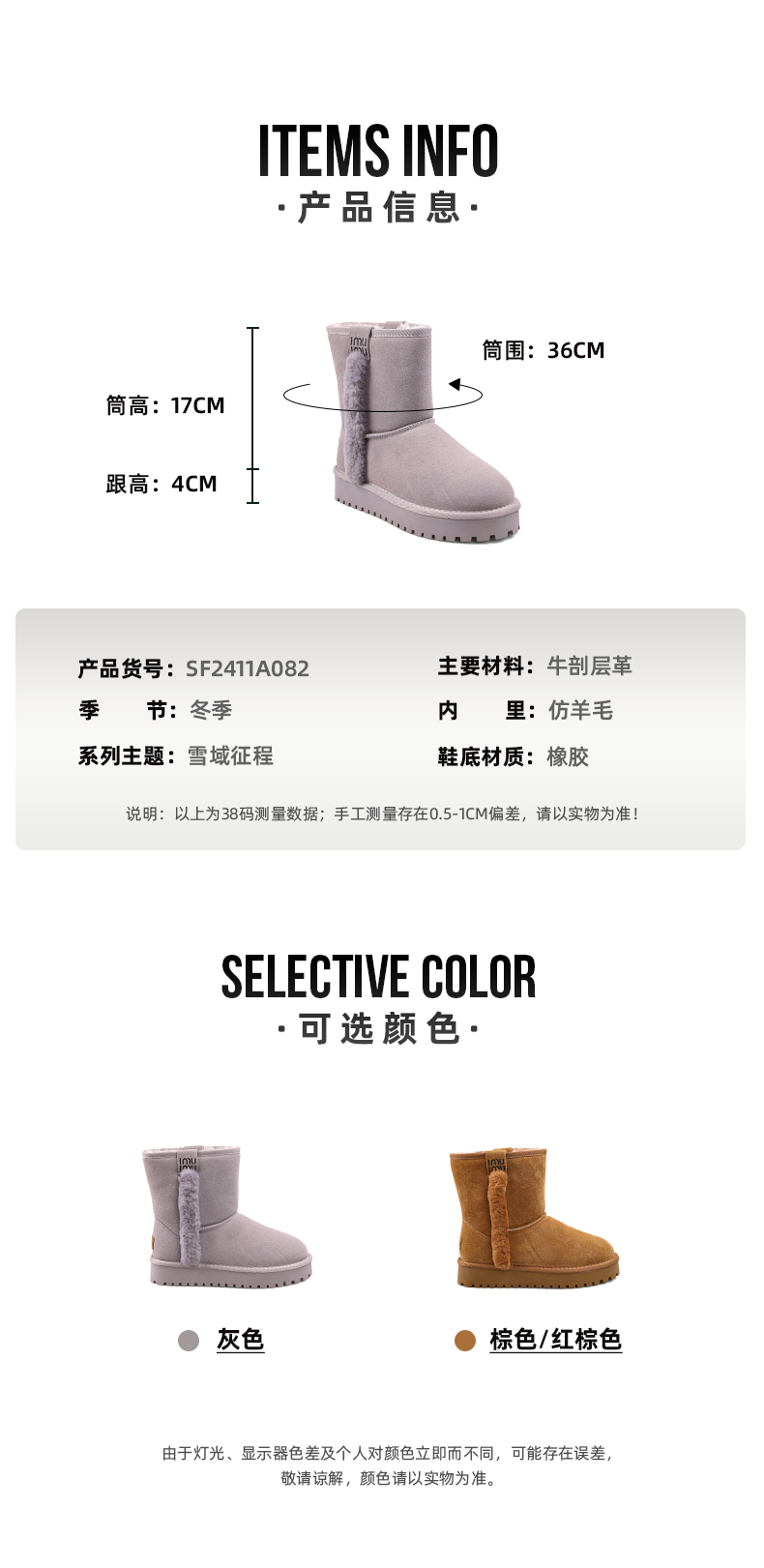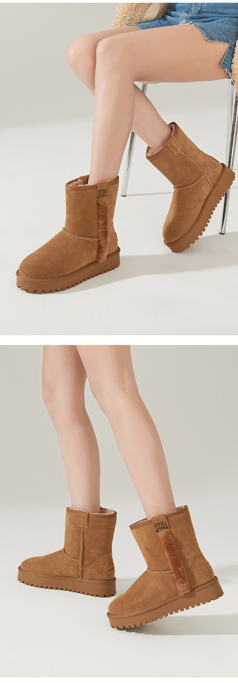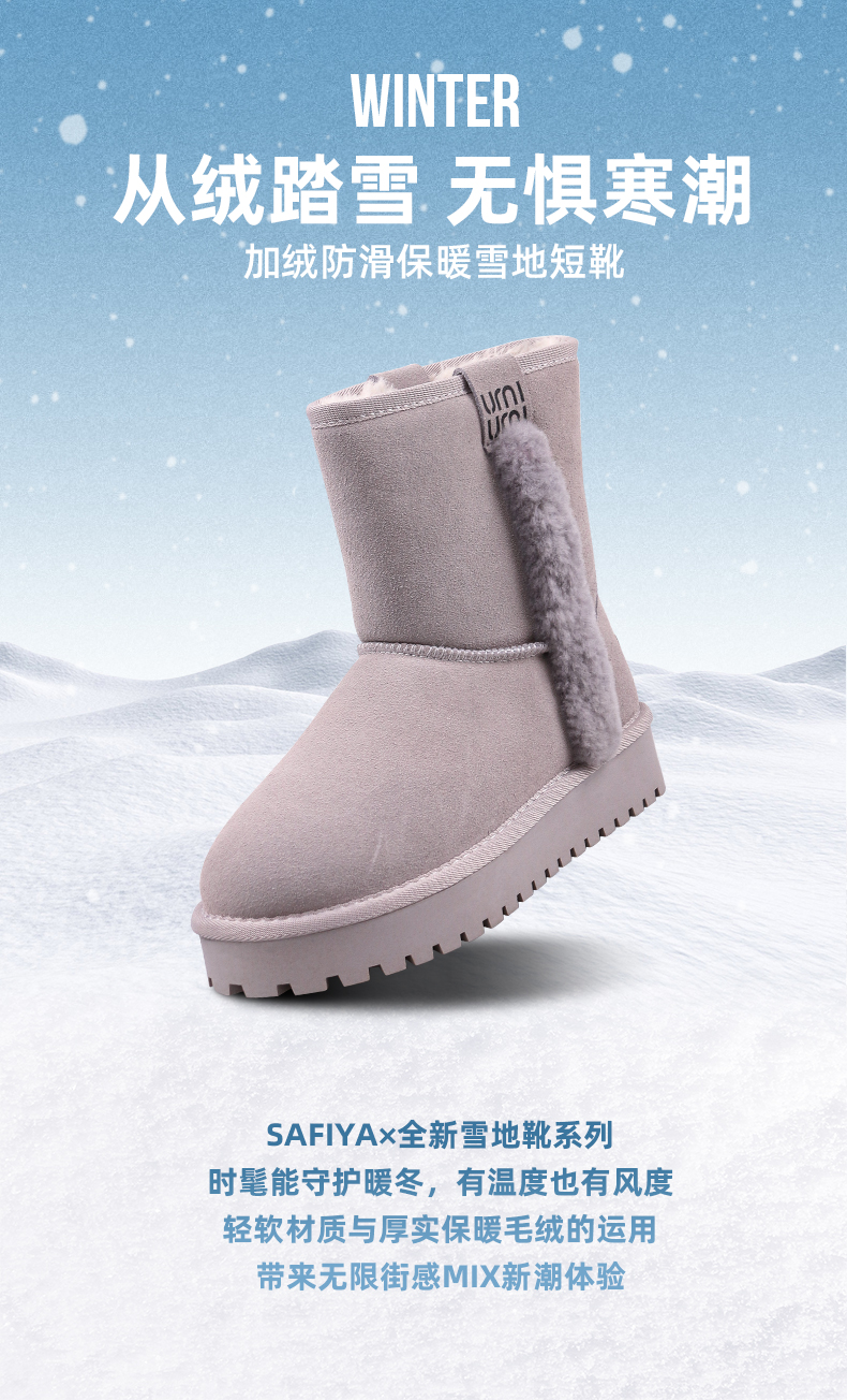Safiya/索菲娅 雪地靴2022年冬季新款加绒加厚防滑保暖雪地短靴女 SF2411A082