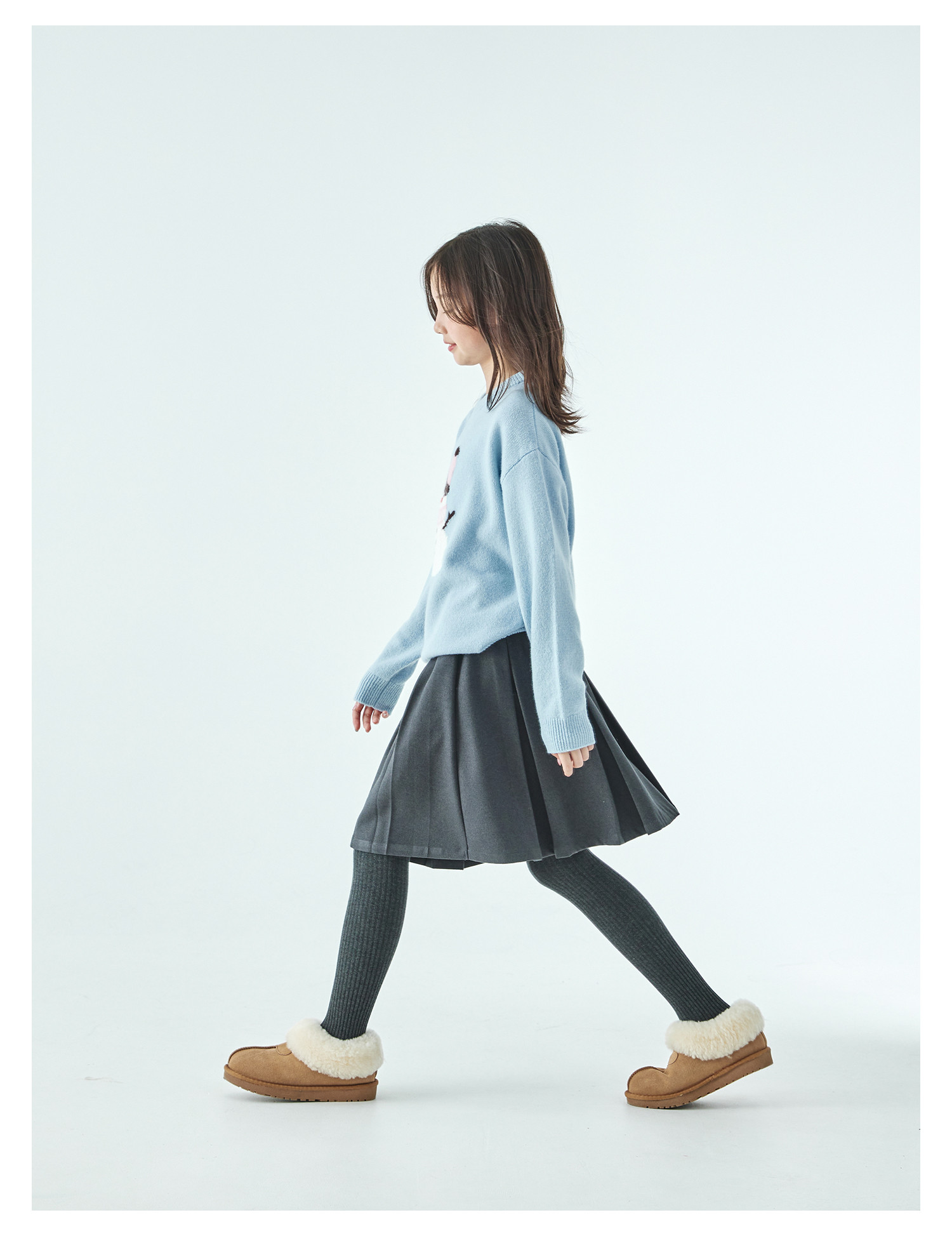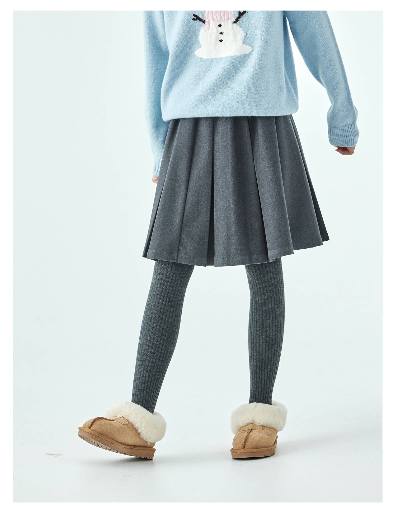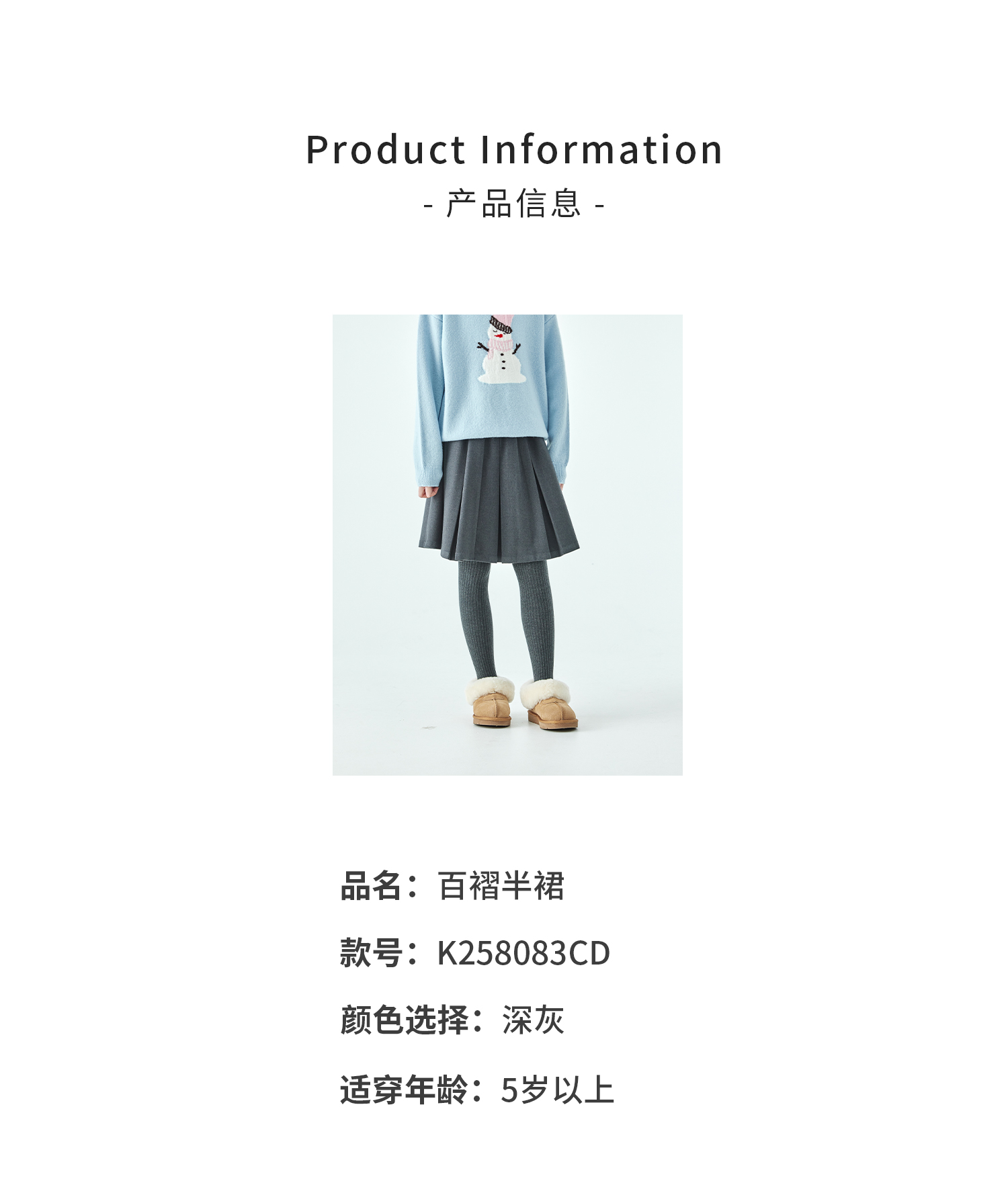棵初25年冬季新款亲子中大女童百褶西装半裙学院风利落垂顺中长裙