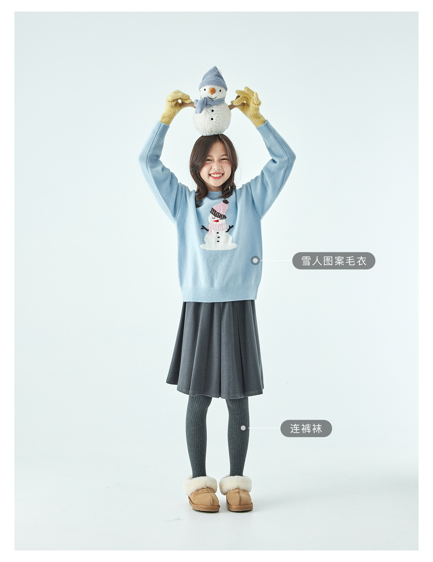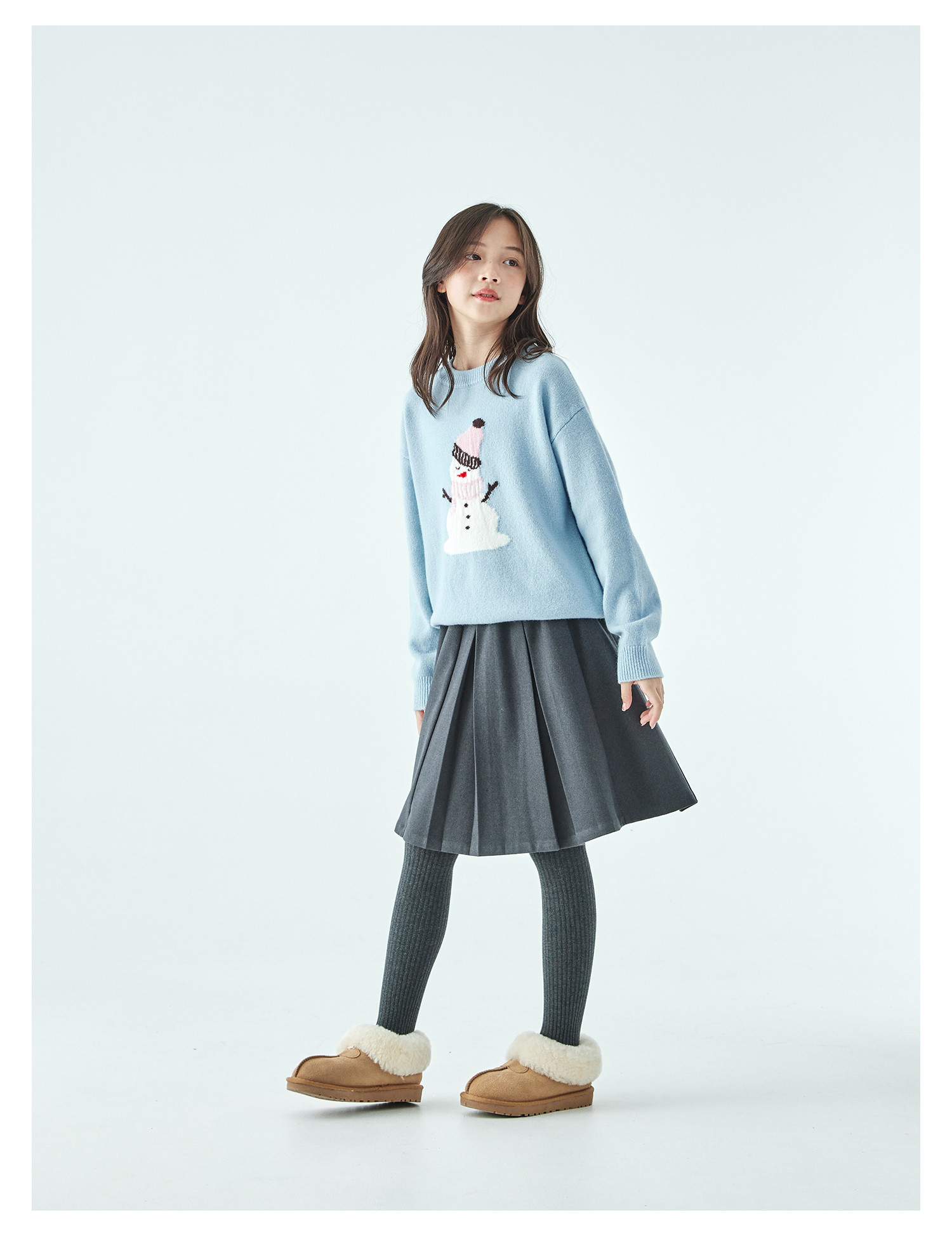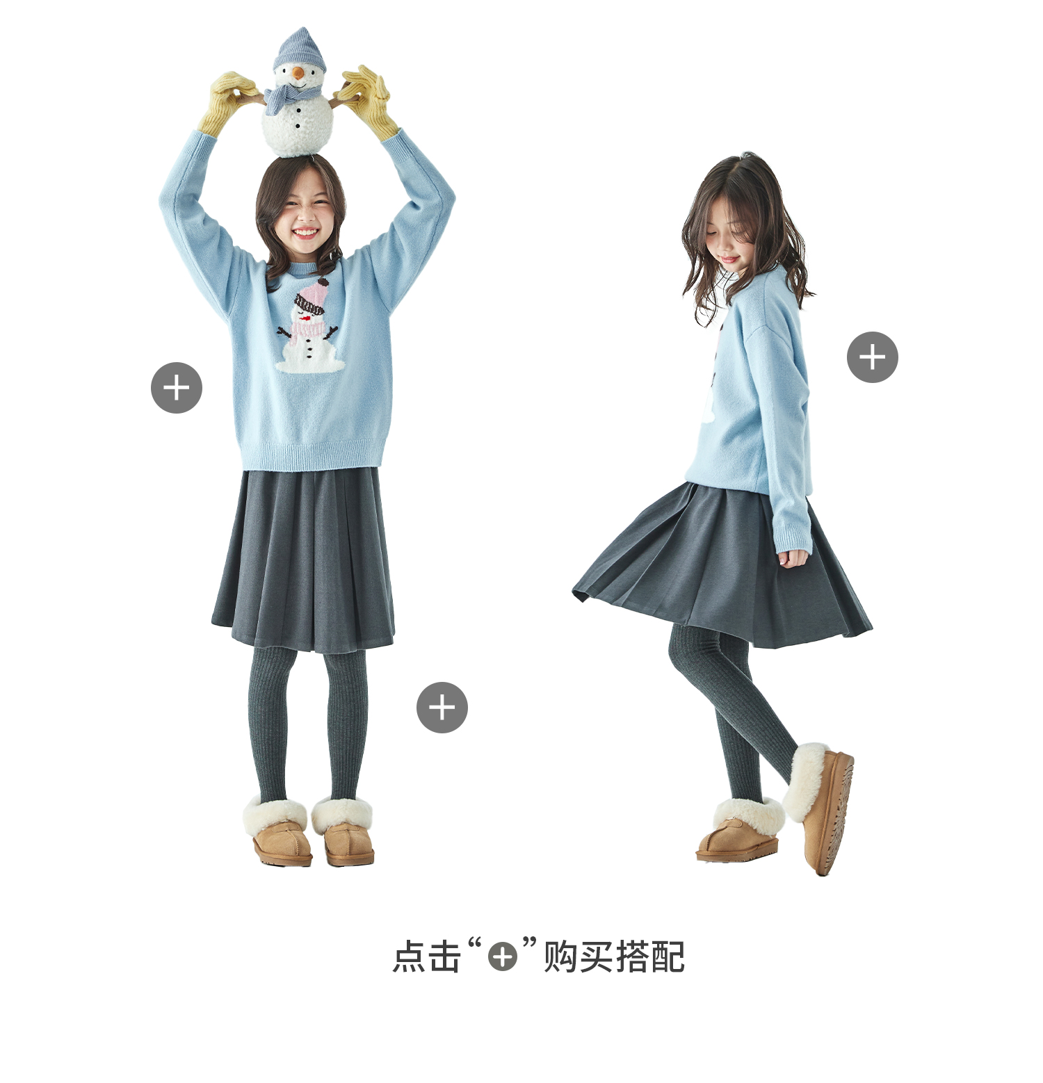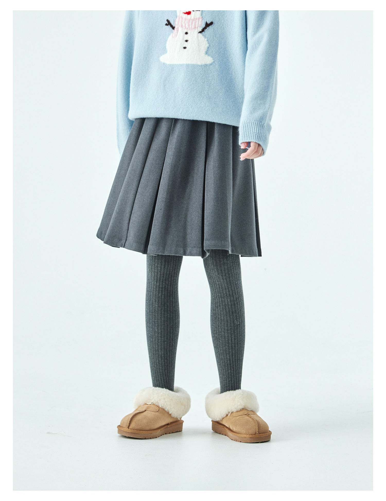 棵初25年冬季新款亲子中大女童百褶西装半裙学院风利落垂顺中长裙