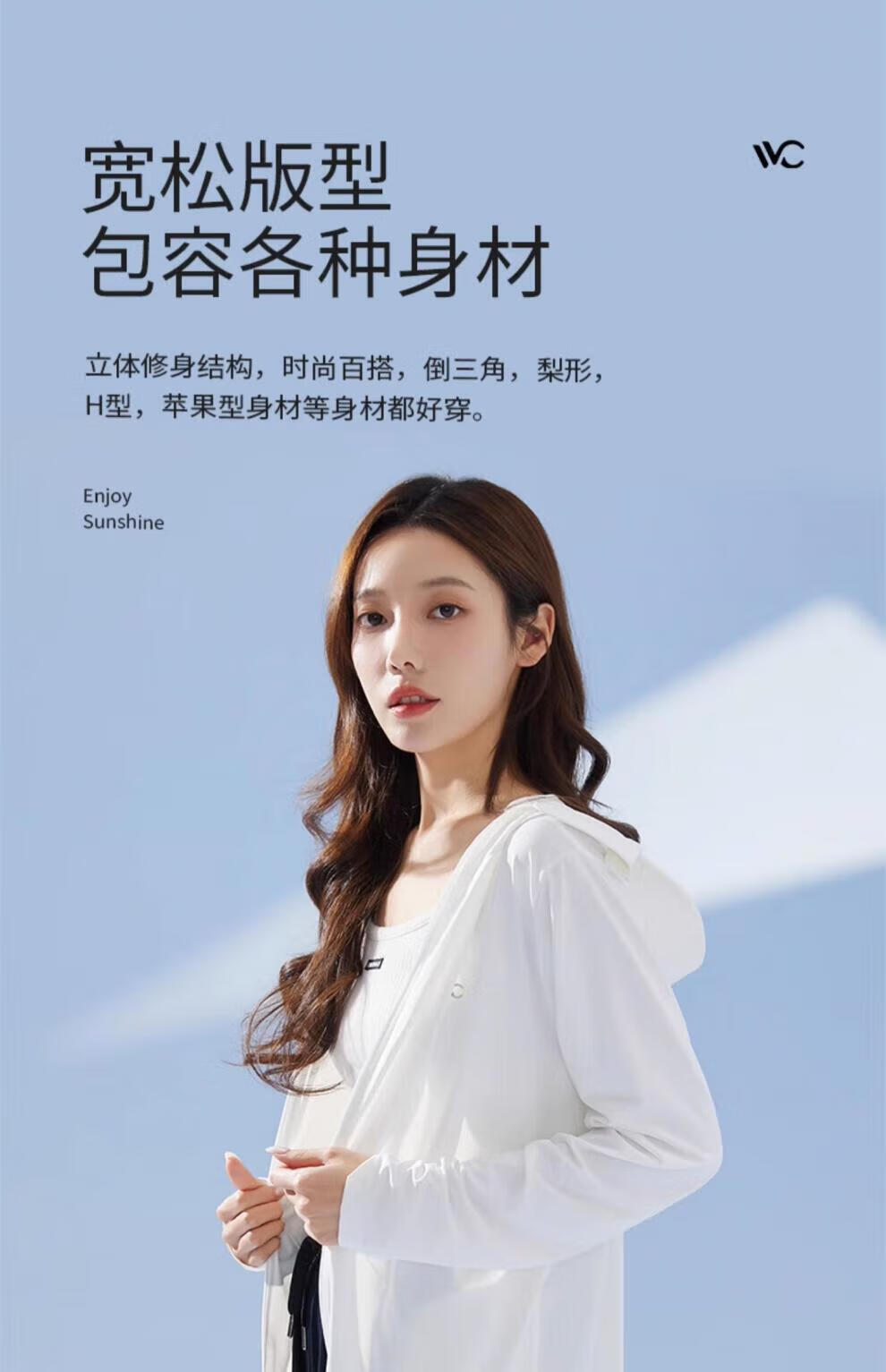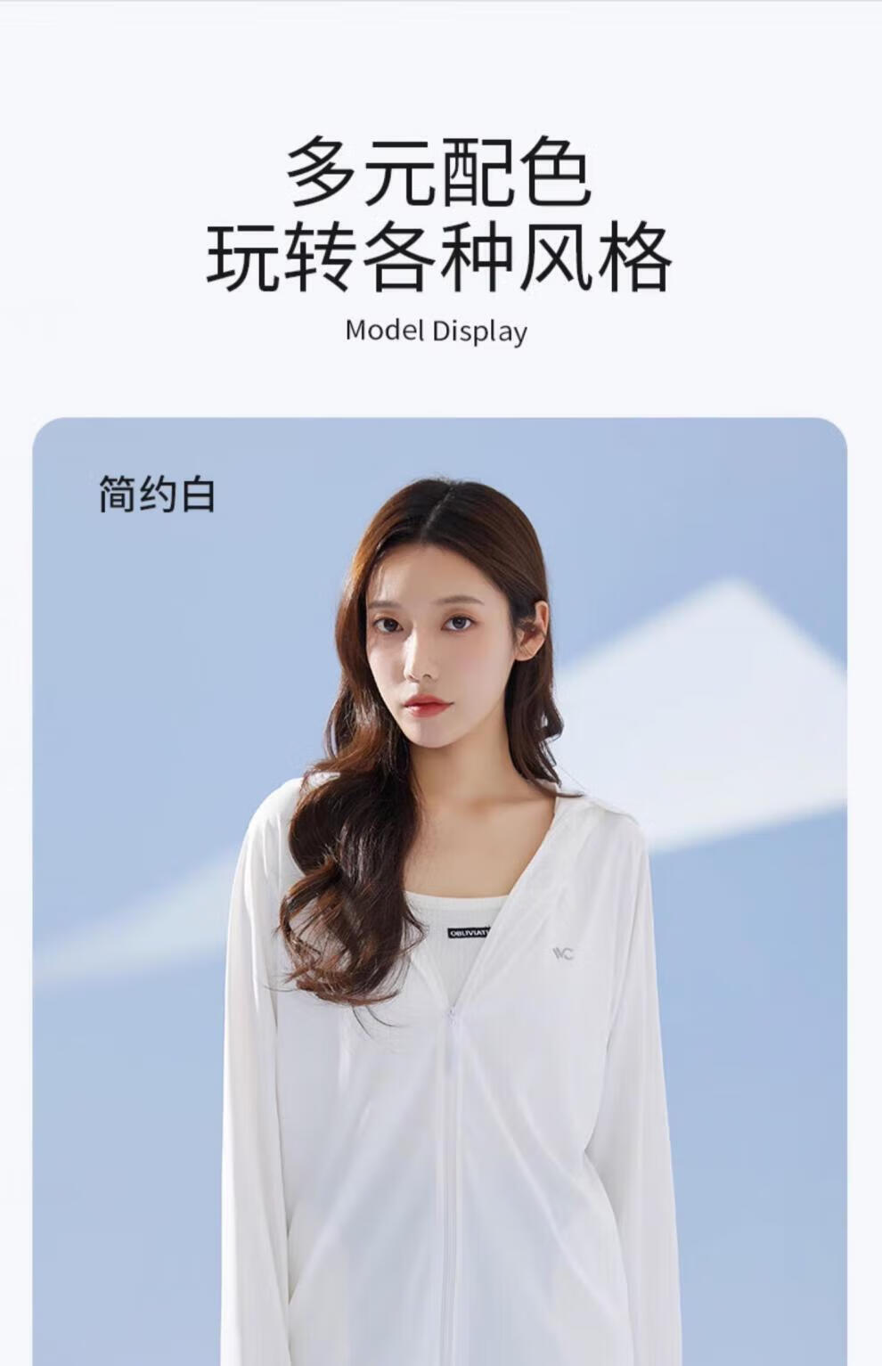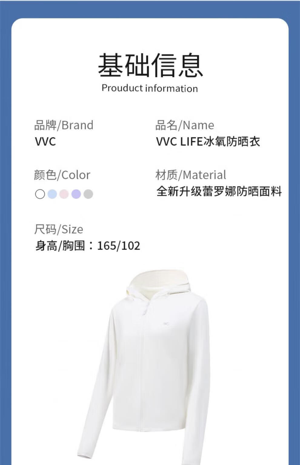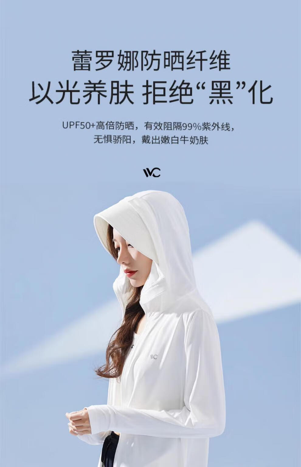 VVC防晒衣女士防晒服款户外夏冰氧防紫外线夏季冰丝透气 简约白