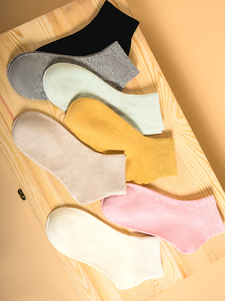 任选5双36.8元 足装秀女短筒袜春夏轻薄棉袜纯色吸汗透气女士短袜