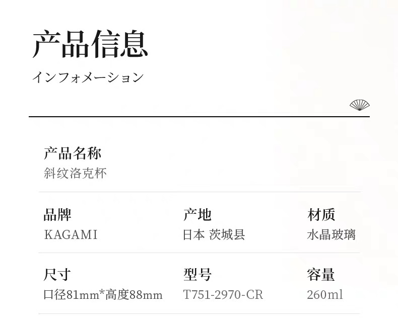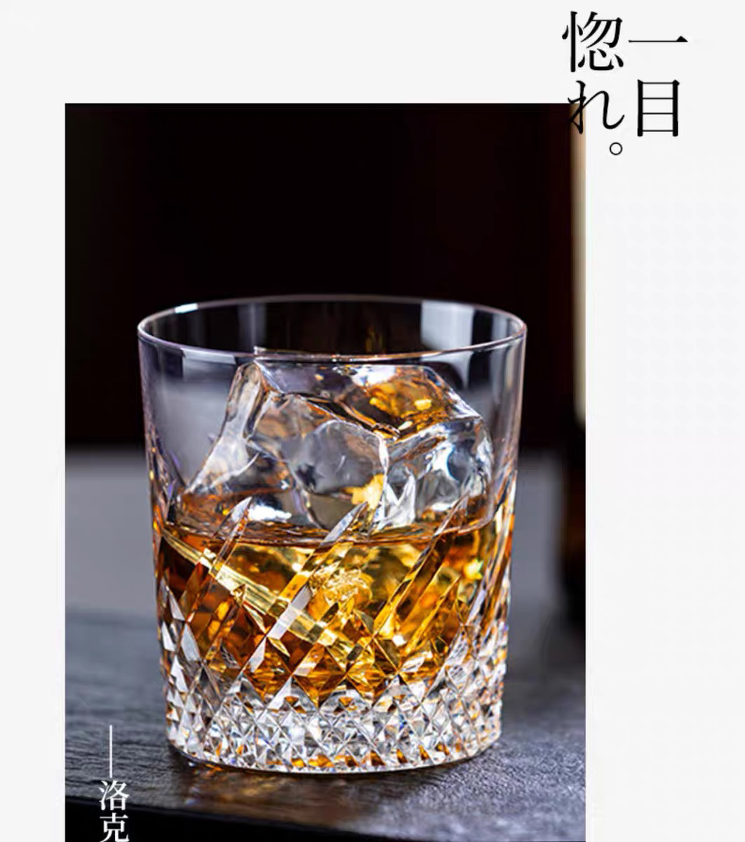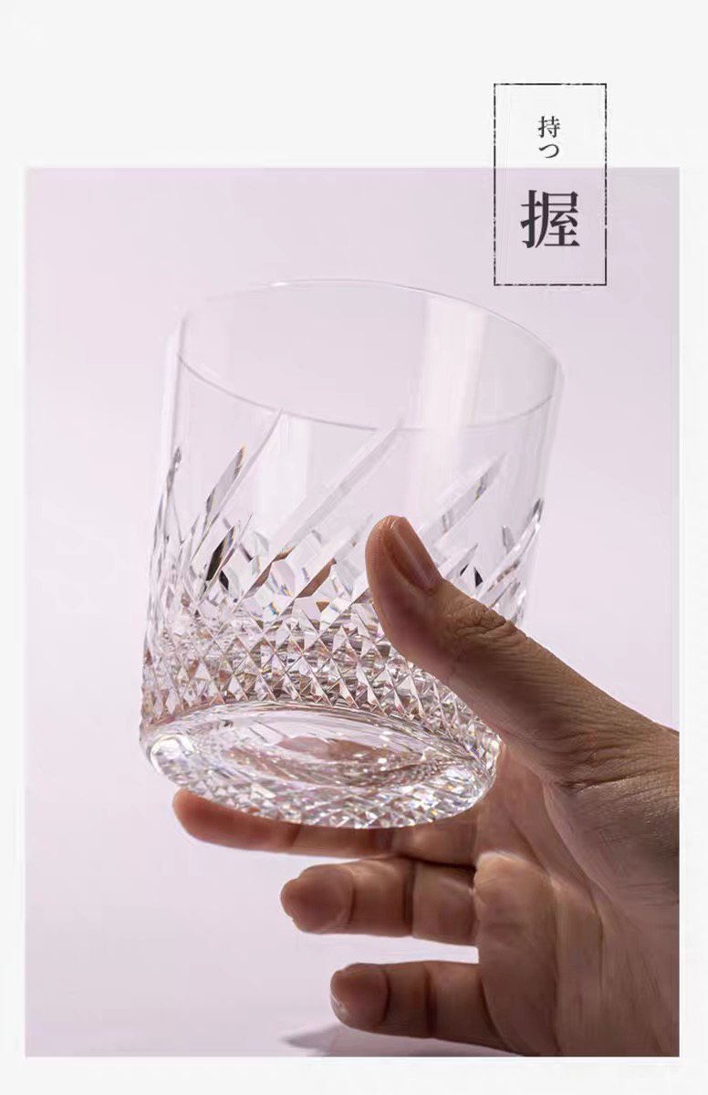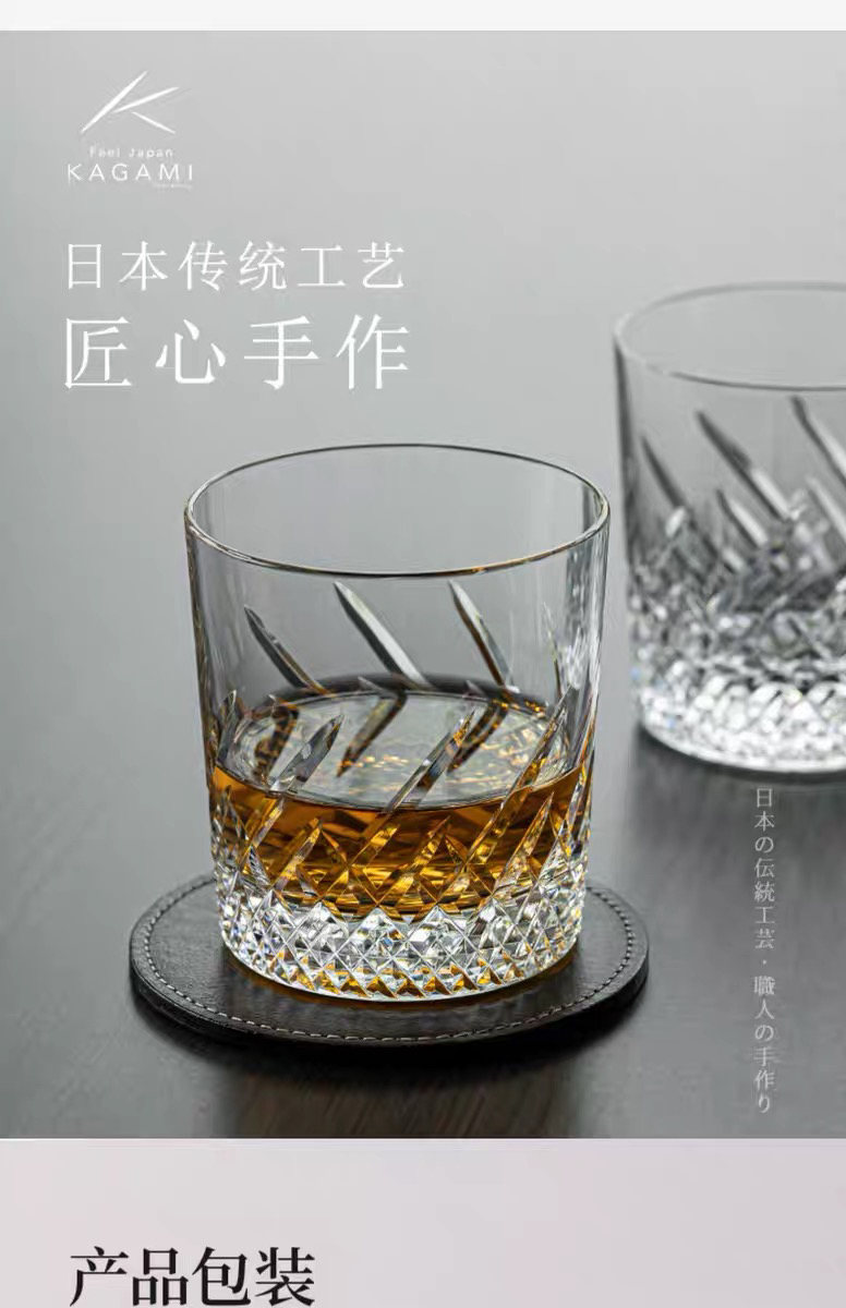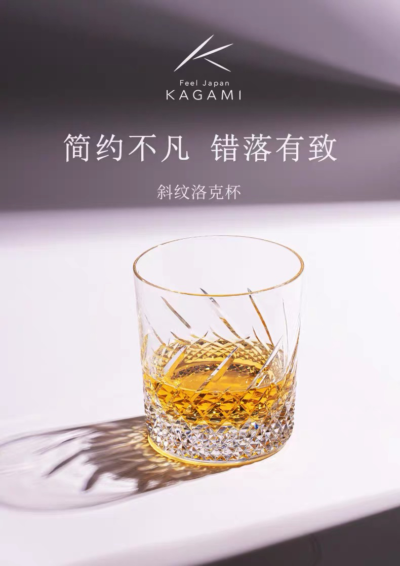 KAGAMI江户切子威士忌透明水晶玻璃酒杯洋酒杯洛克杯斜纹