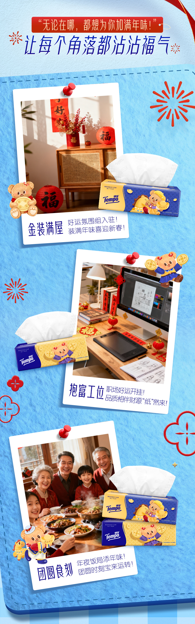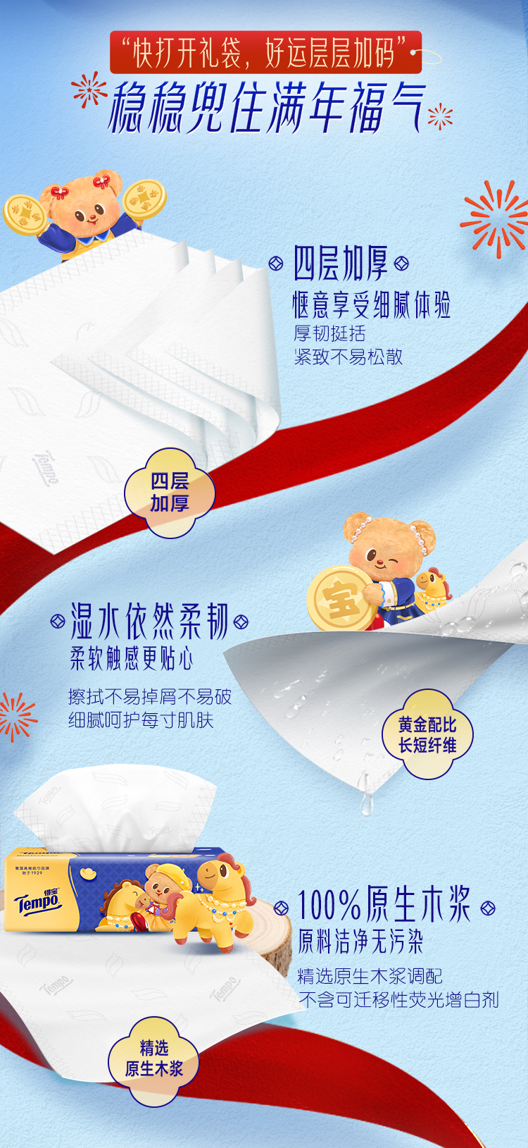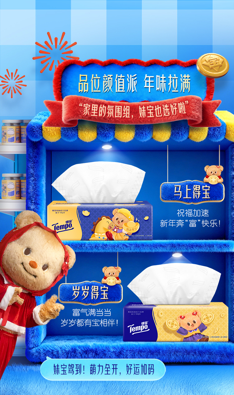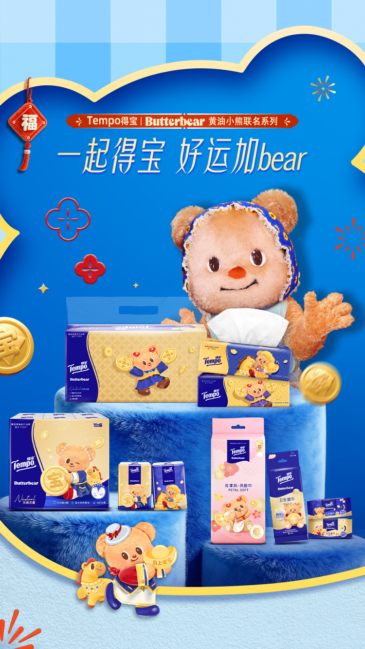 Tempo得宝 黄油小熊联名新年特别款无香抽纸 80抽*15包/箱 到手15包 四层加厚