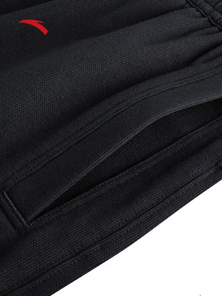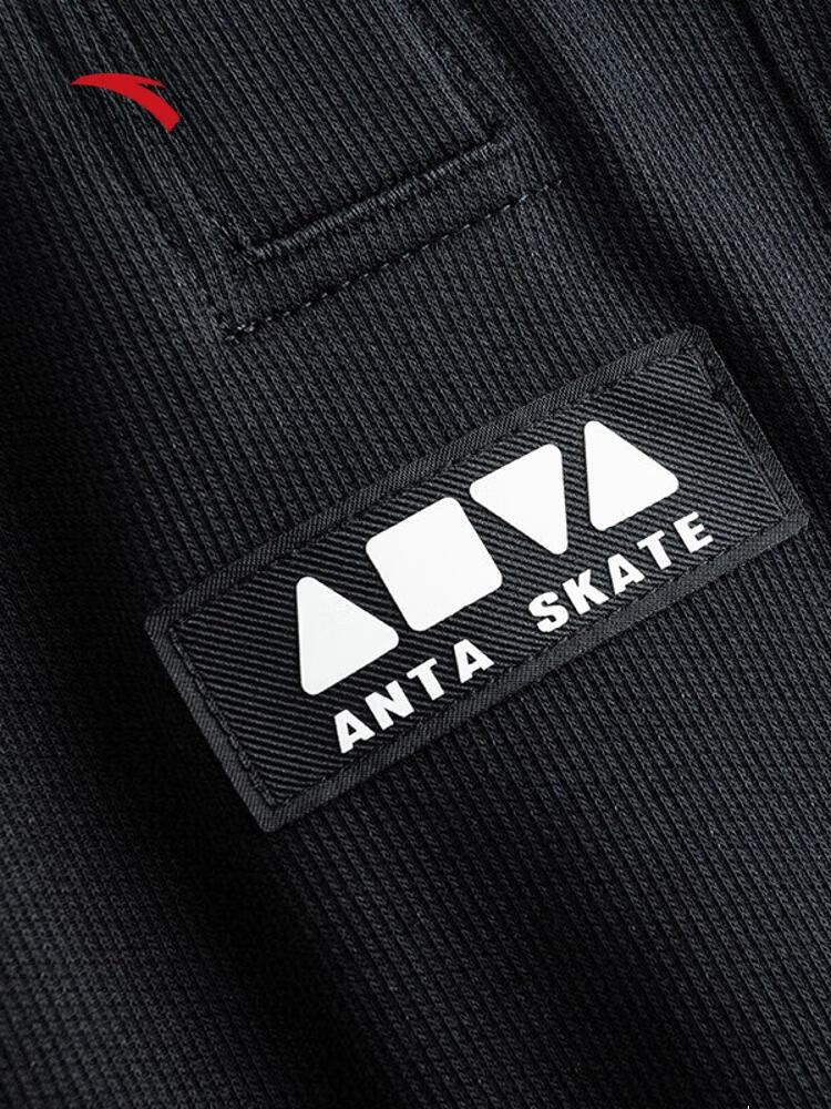 安踏(ANTA)滑板系列 休闲百搭潮流印花运动裤宽松纯棉针织长裤172538305 基础黑-2