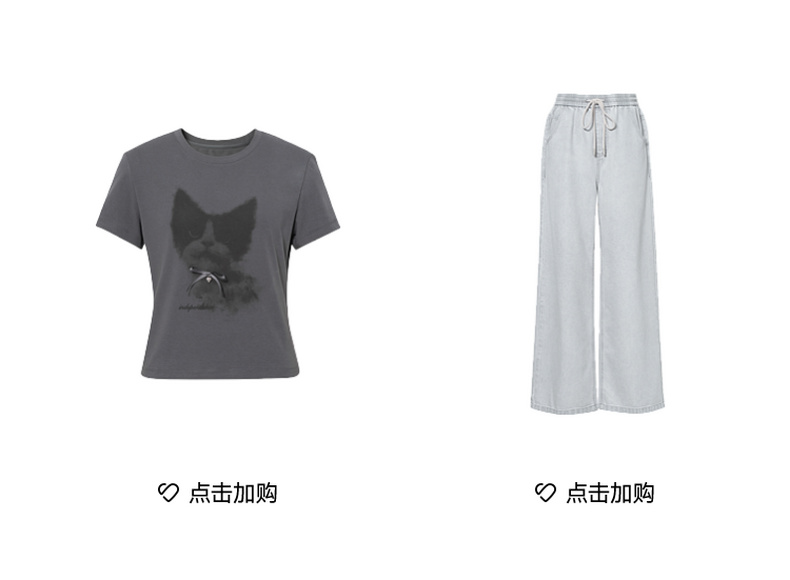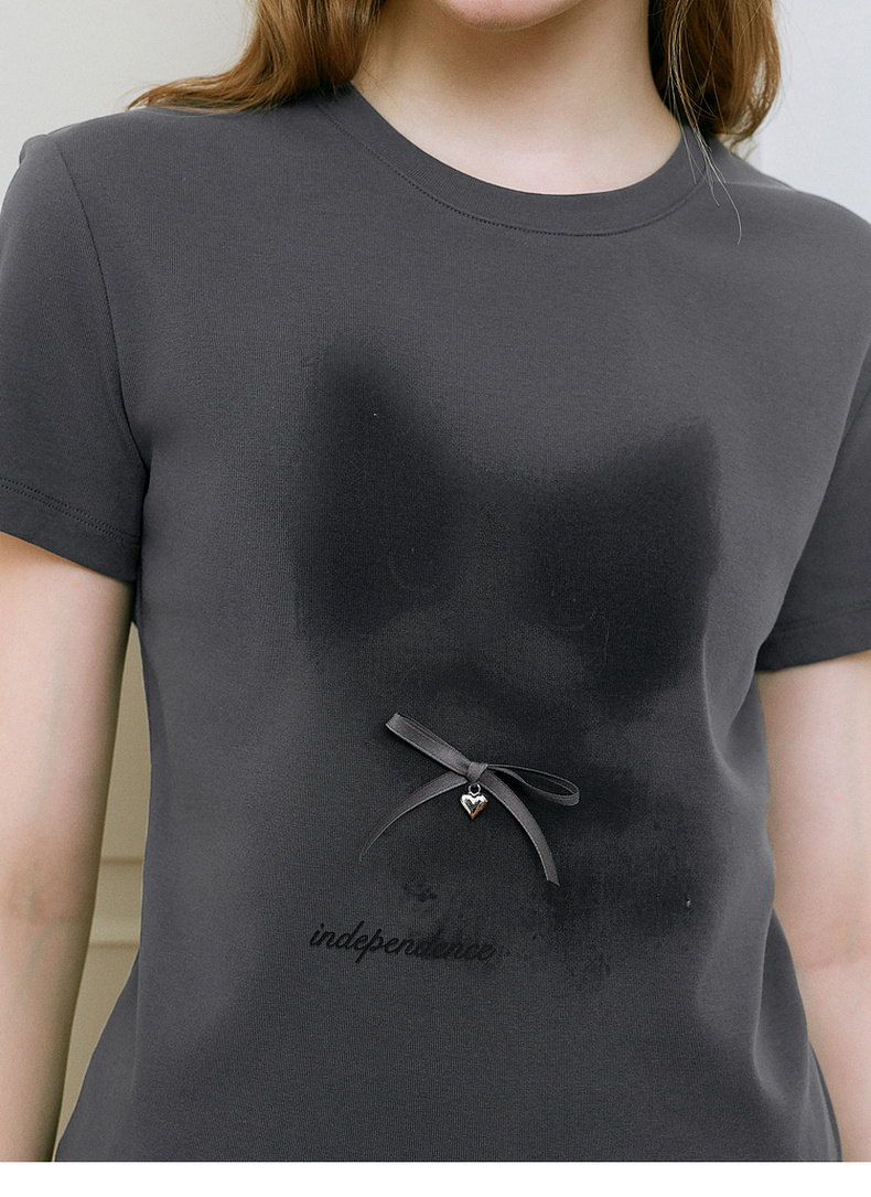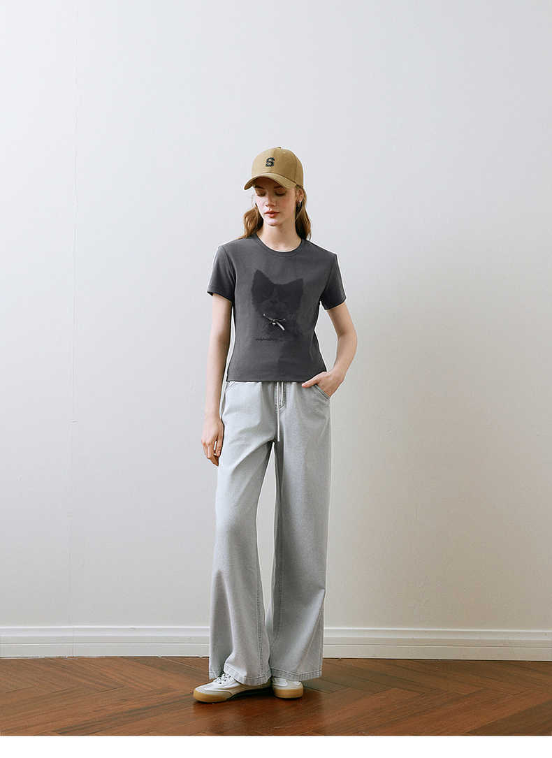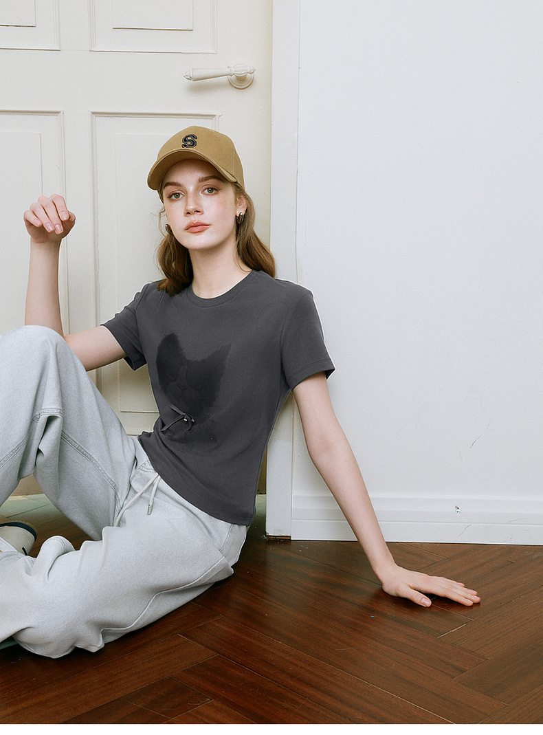 【商场同款】诗凡黎猫咪印花T恤2025夏新款百搭短袖上衣3G4200751