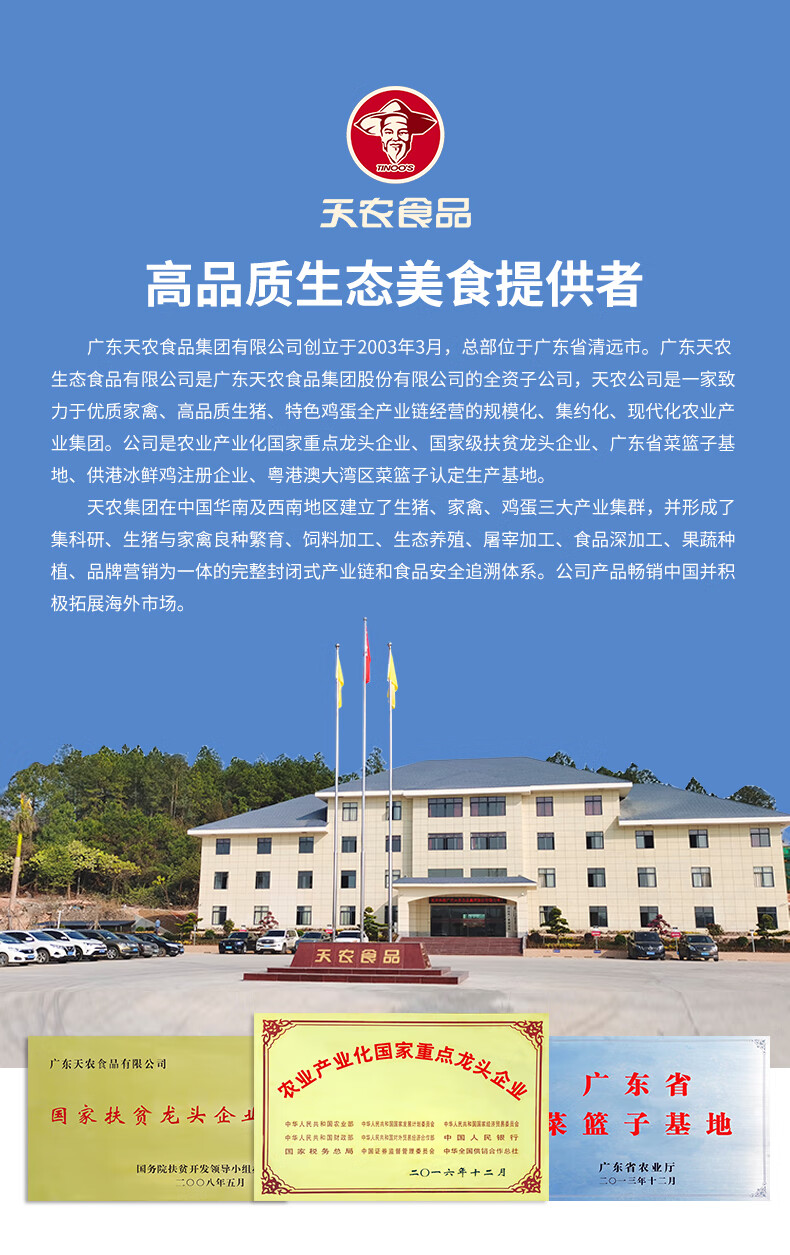 天农纯种清远鸡,专注纯种清远鸡23年!高端清远鸡销量全国遥遥领先在青山绿水+运动场的环境优养纯种清远鸡。国家级原种基地、国家级扶贫龙头企业。