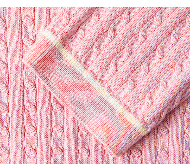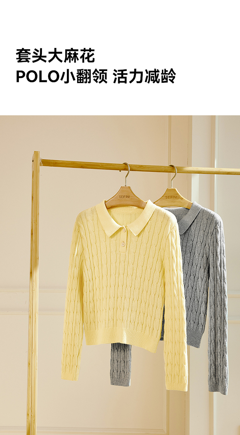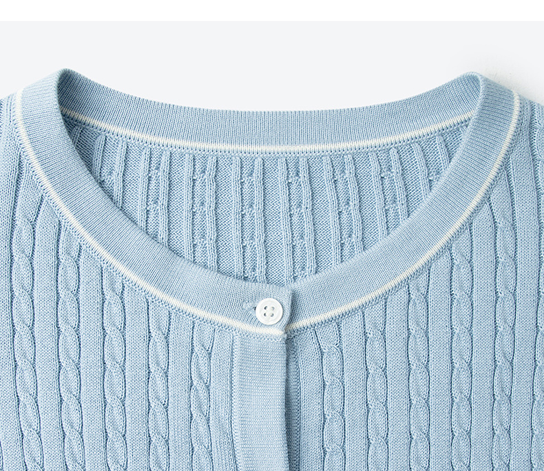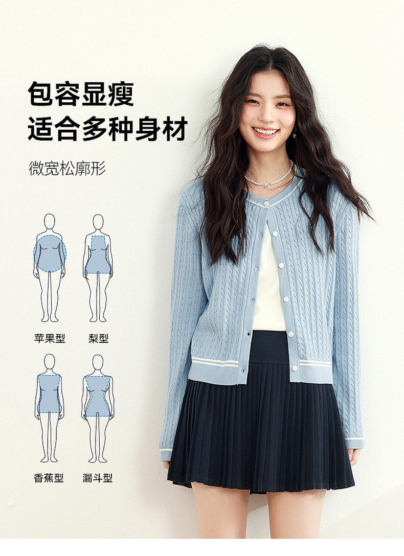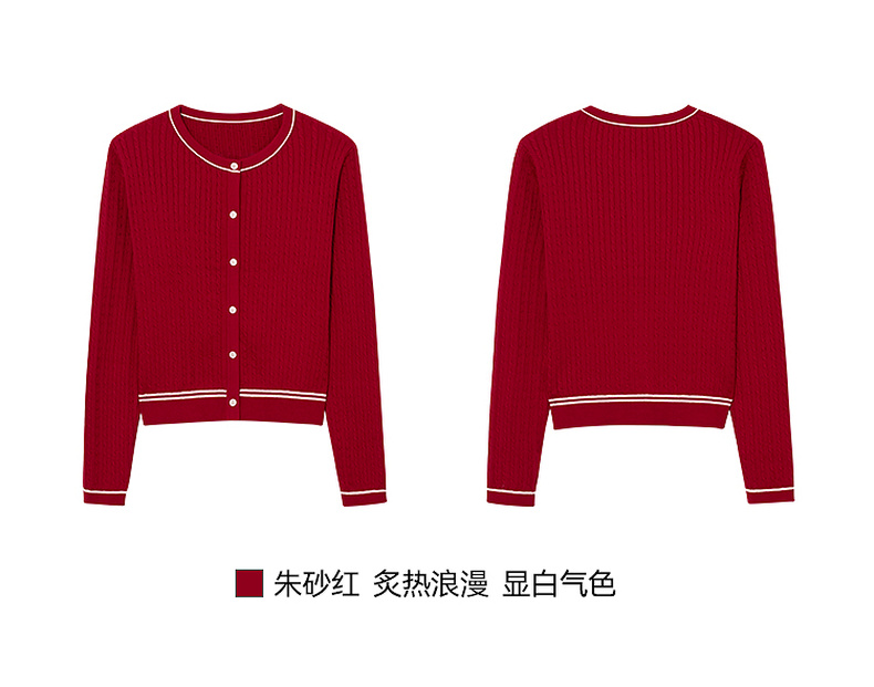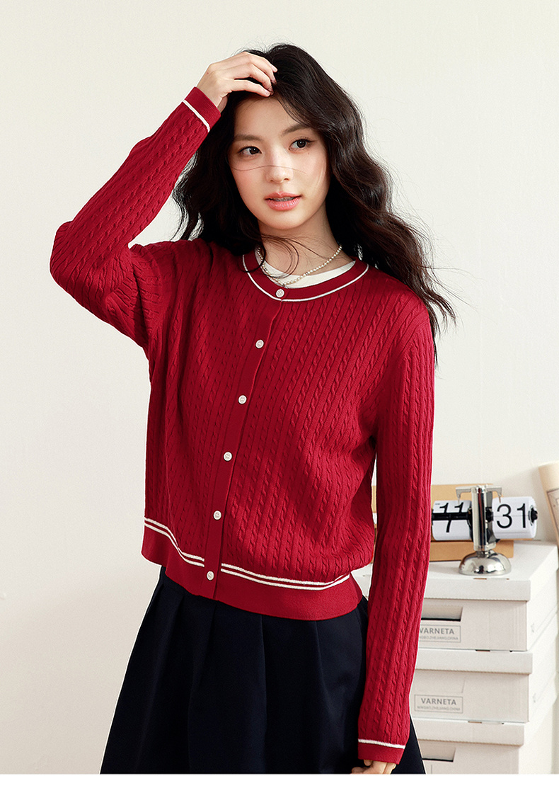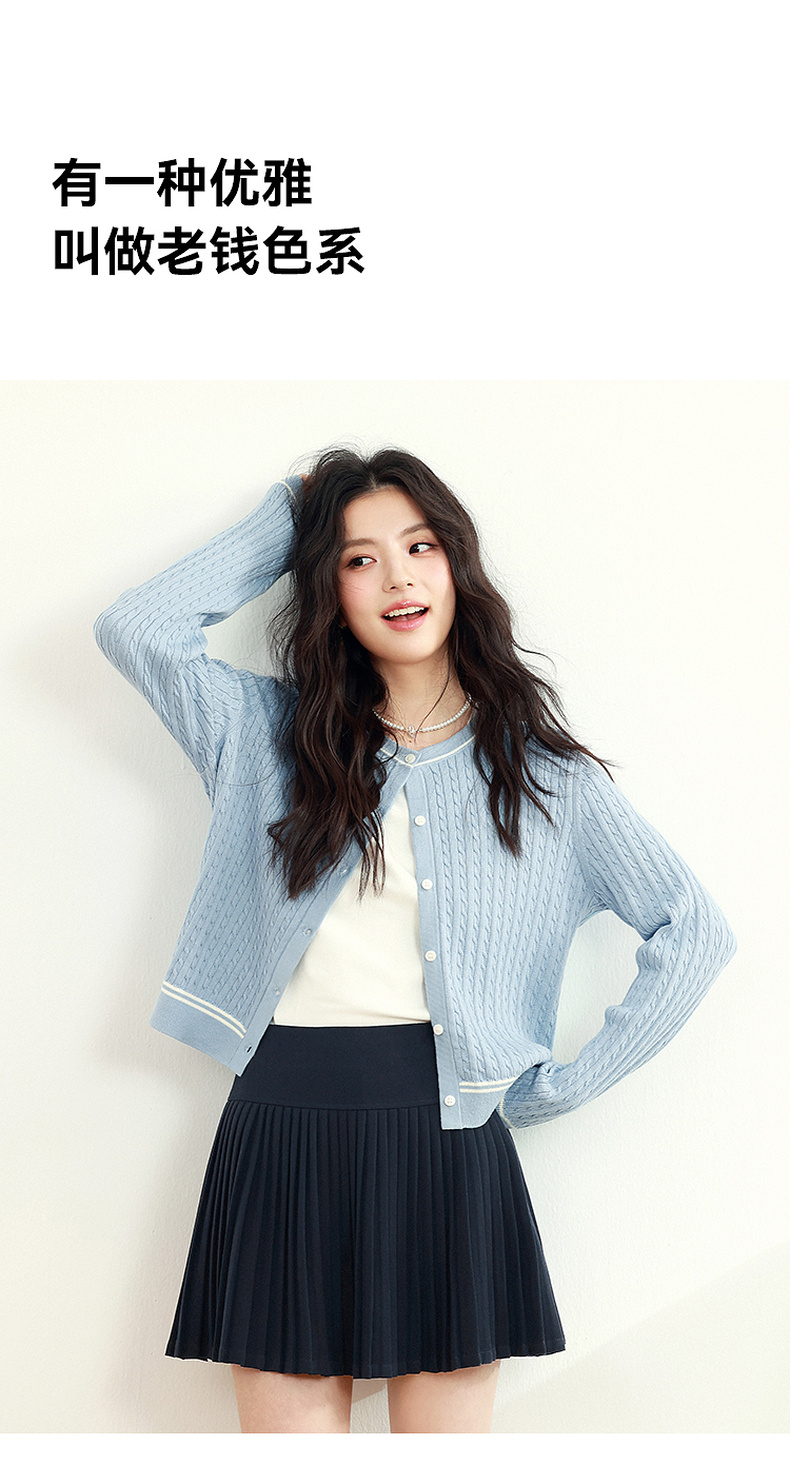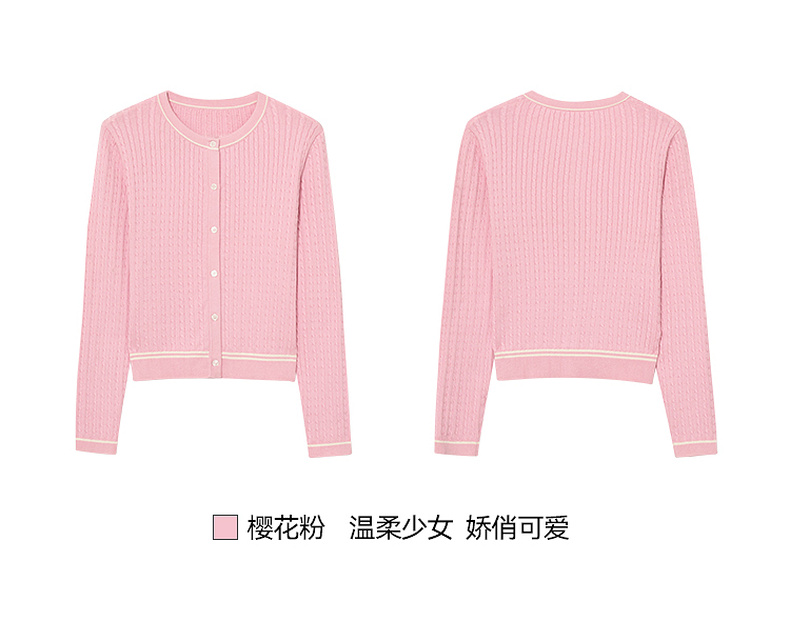 【严选】诗凡黎新疆长绒棉撞色圆领绞花针织衫2025春新款文艺复古外搭开衫7G1130411