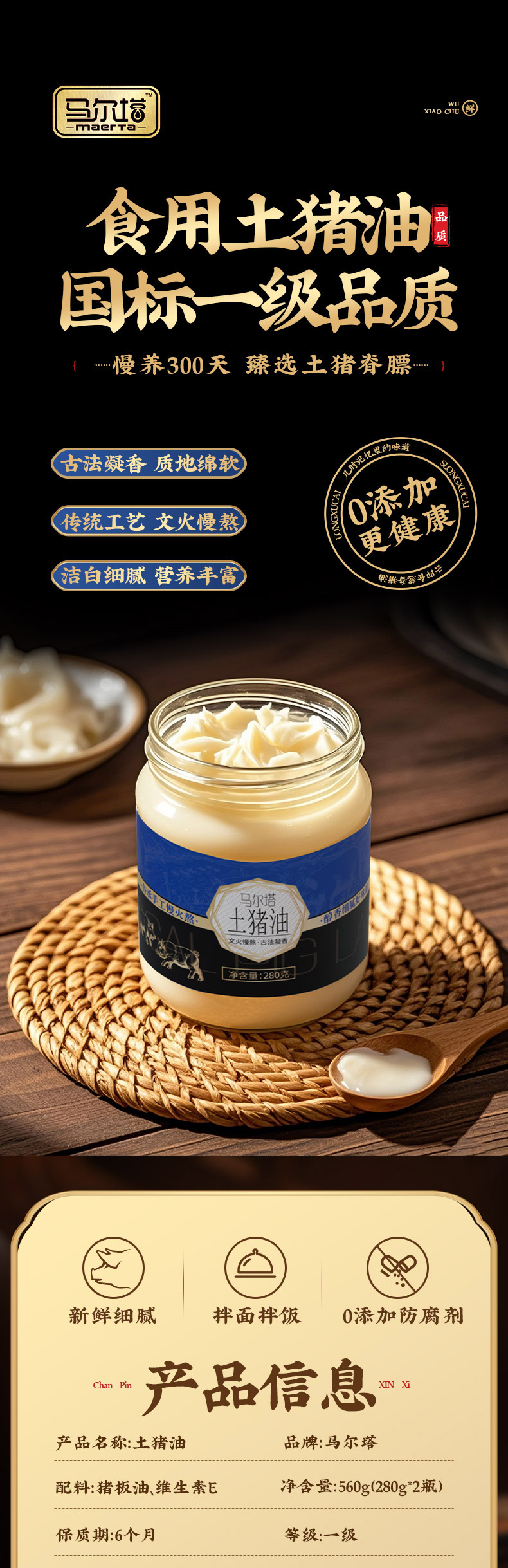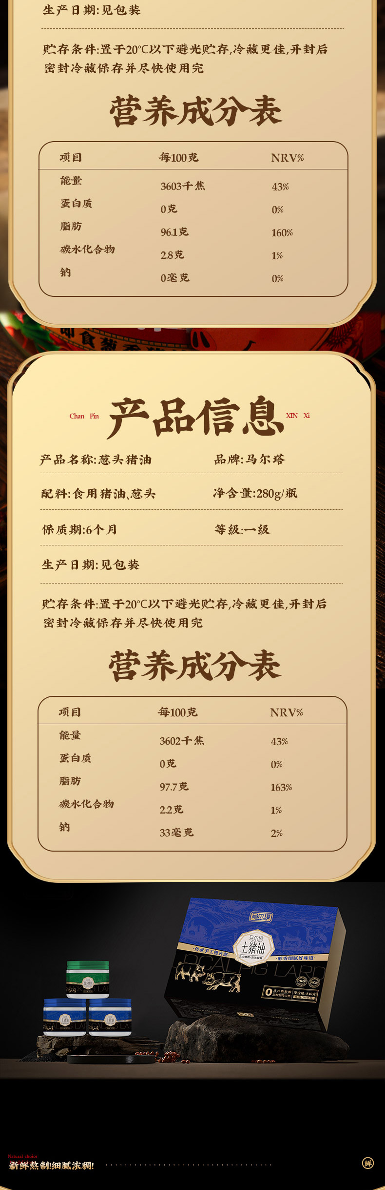 马尔塔土猪油&葱头猪油礼盒840g(土猪油*2+葱头猪油*1)-XJ