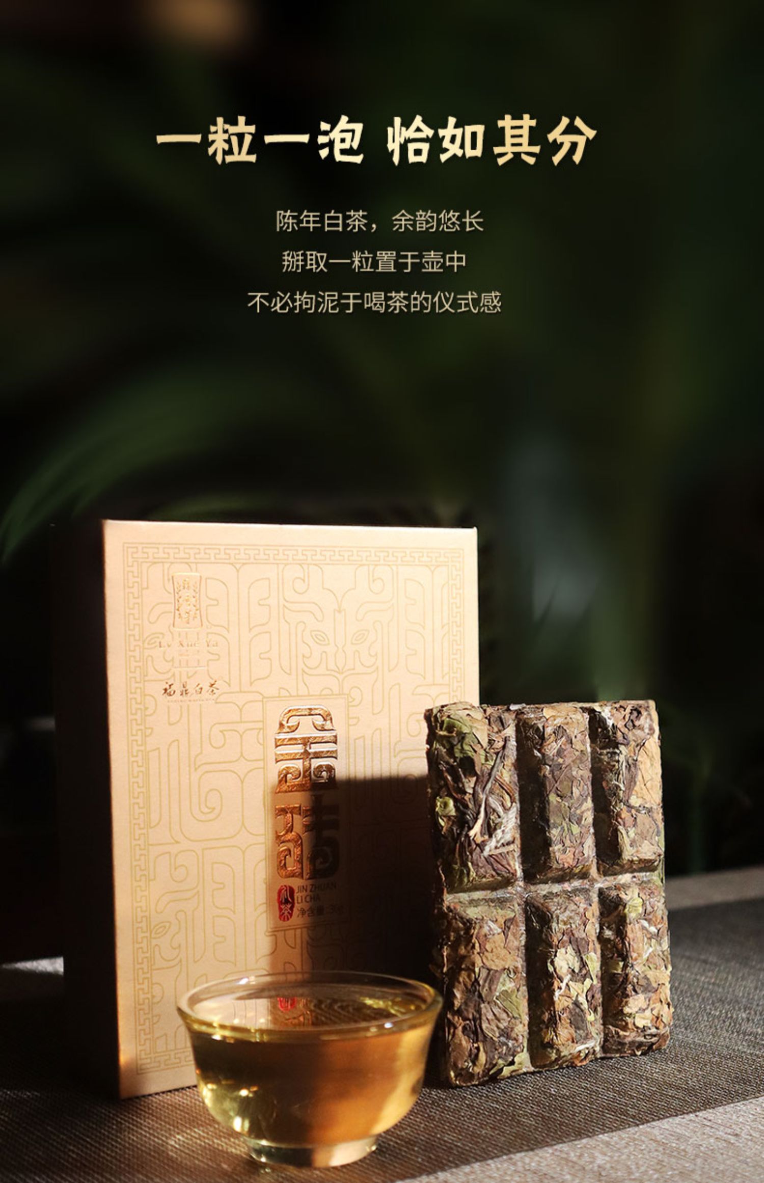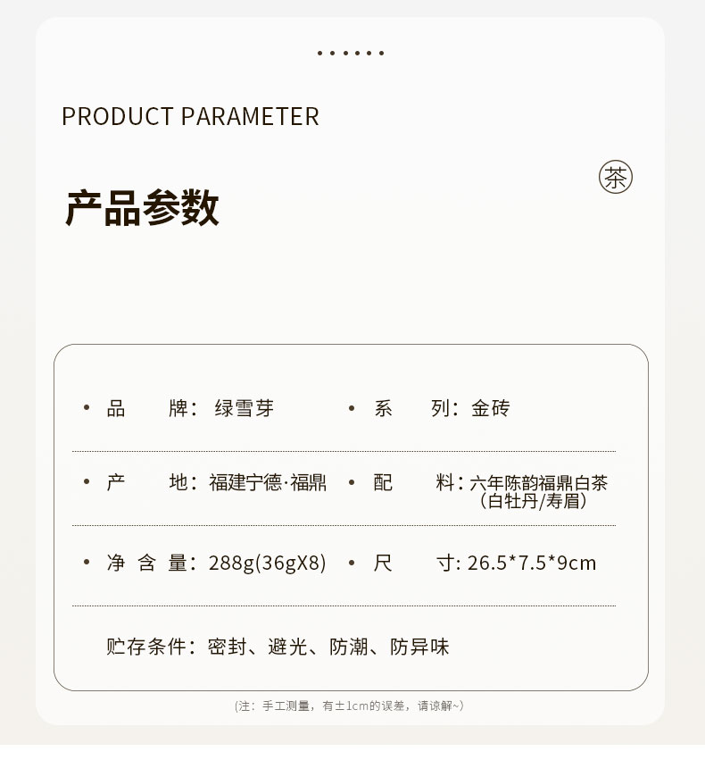 白茶 | 2023年绿雪芽6年陈韵白牡丹寿眉老白茶金砖礼盒装288G