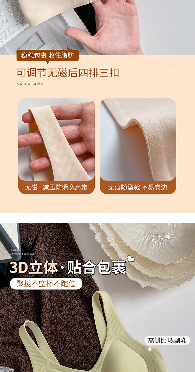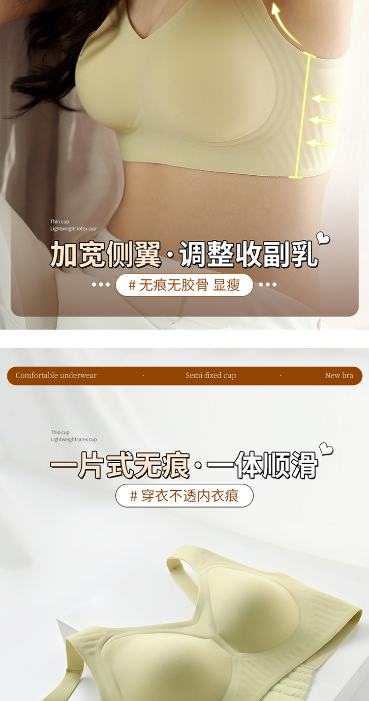 内衣女防下垂无痕无钢圈软支撑收副乳薄款文胸WW930-1