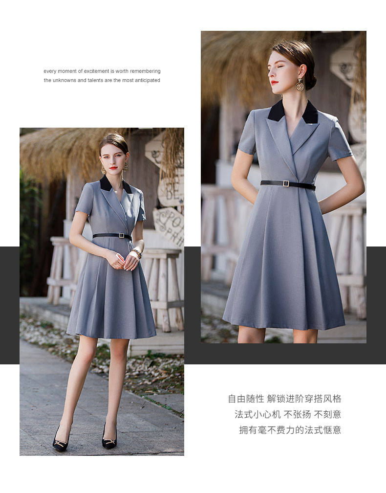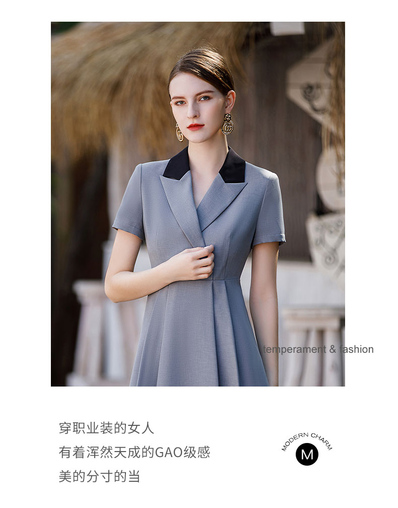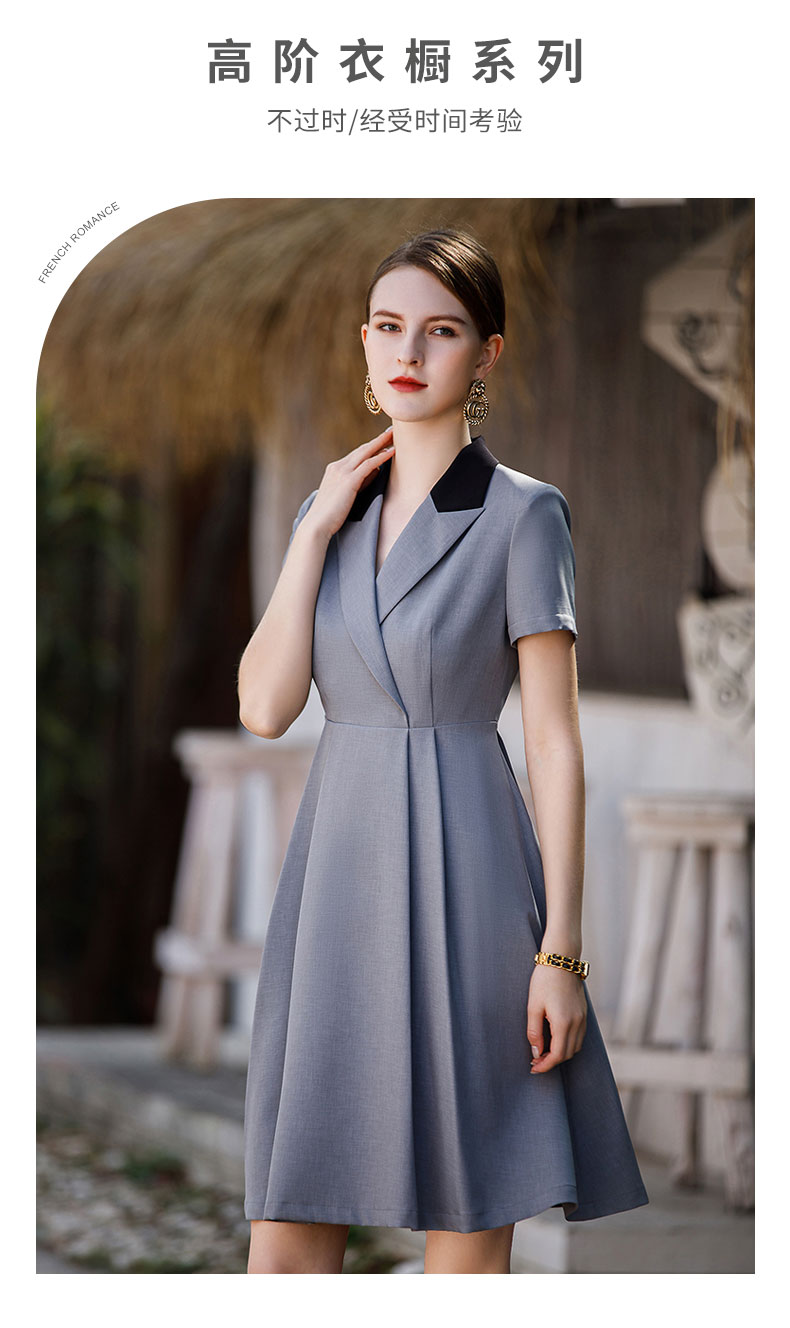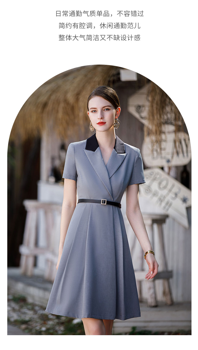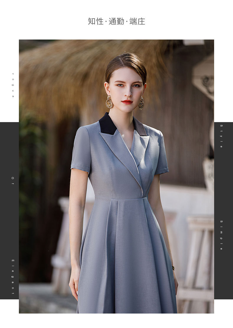 IWY/灰色西装领连衣裙夏季新款短袖西服裙收腰显瘦气质伞裙职业Q878