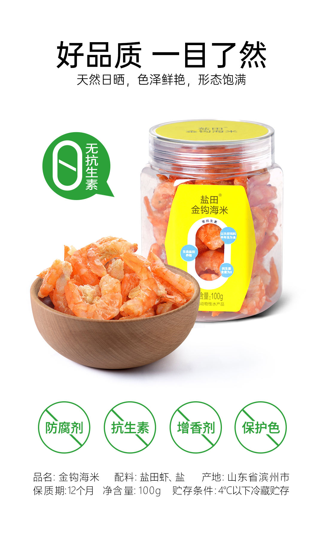 【盐田金钩海米】盐田生态虾金钩海米天然日晒海鲜干货虾米 100g/2罐
