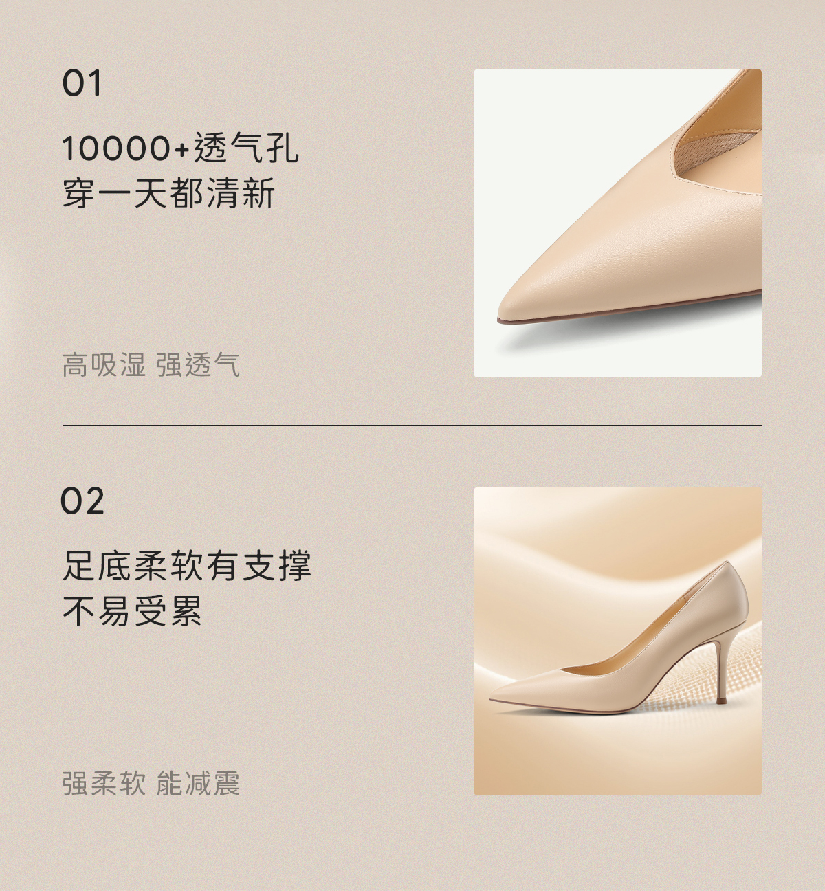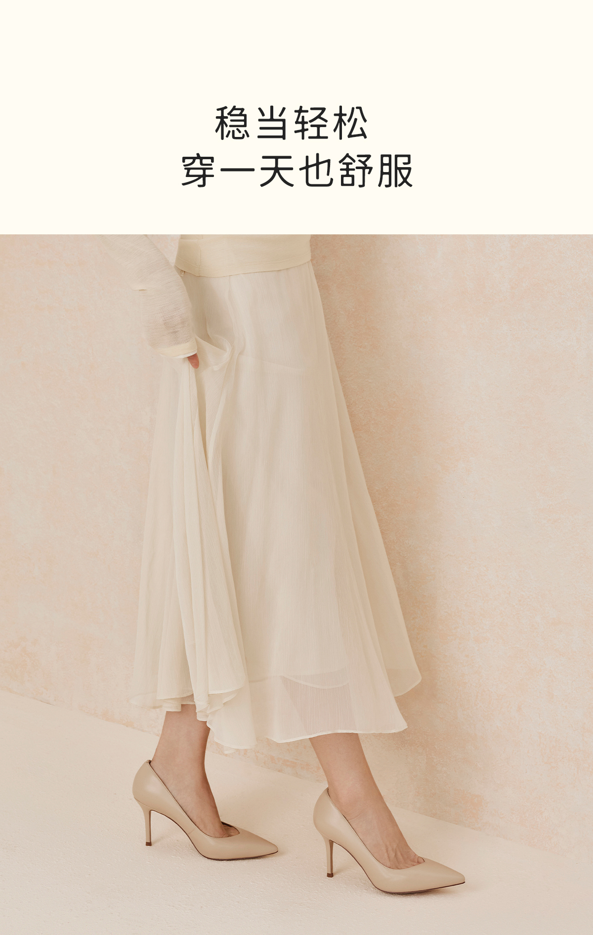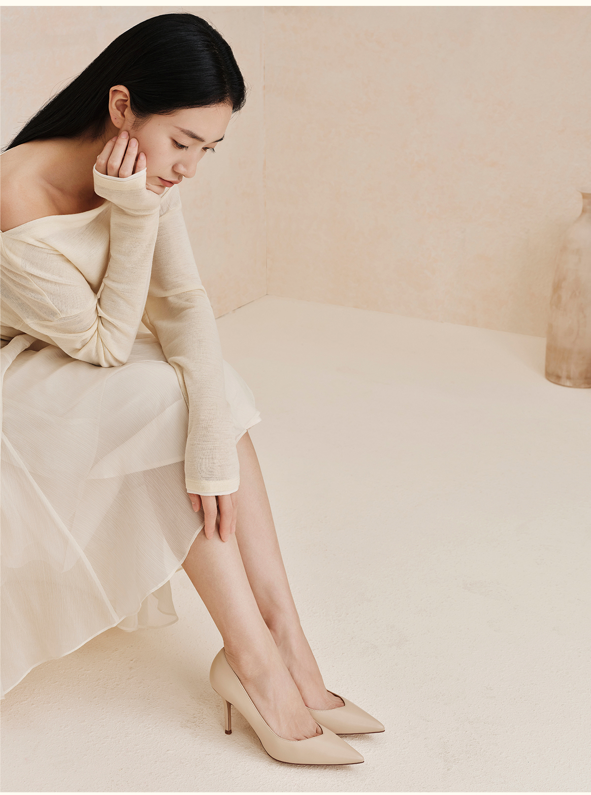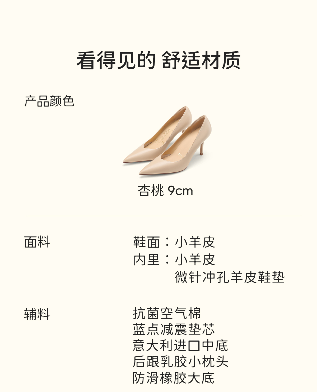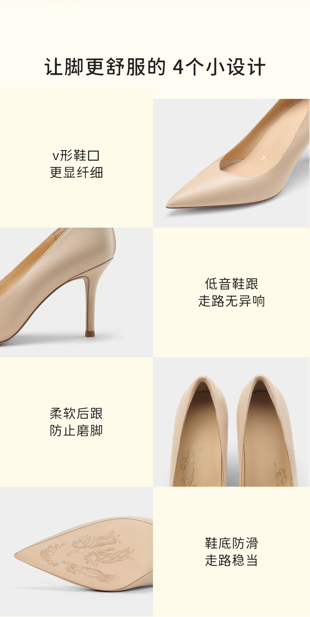 7or9高跟鞋V口裸色通勤百搭高跟鞋杏桃