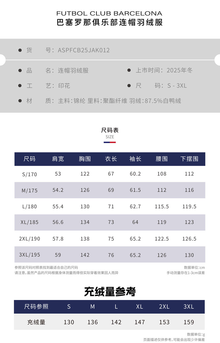 【官方正版】巴塞罗那俱乐部|巴萨连帽羽绒服冬季轻便保暖外套