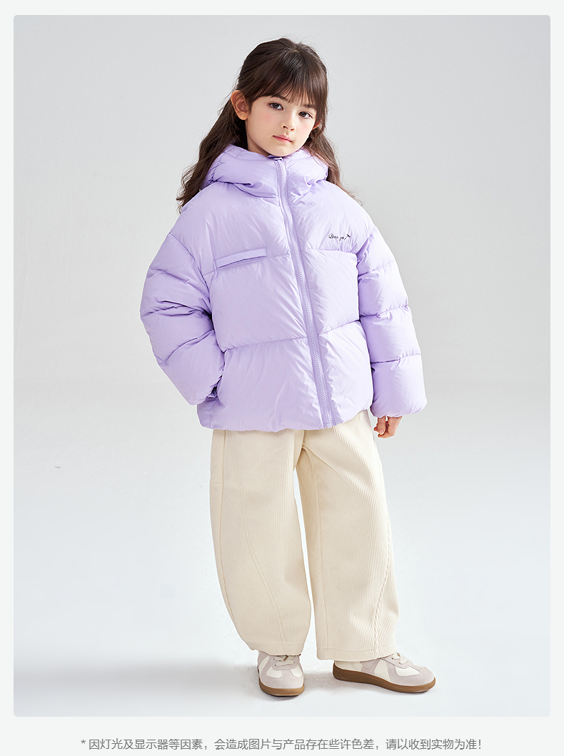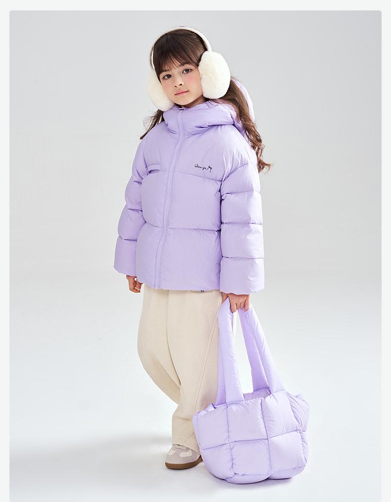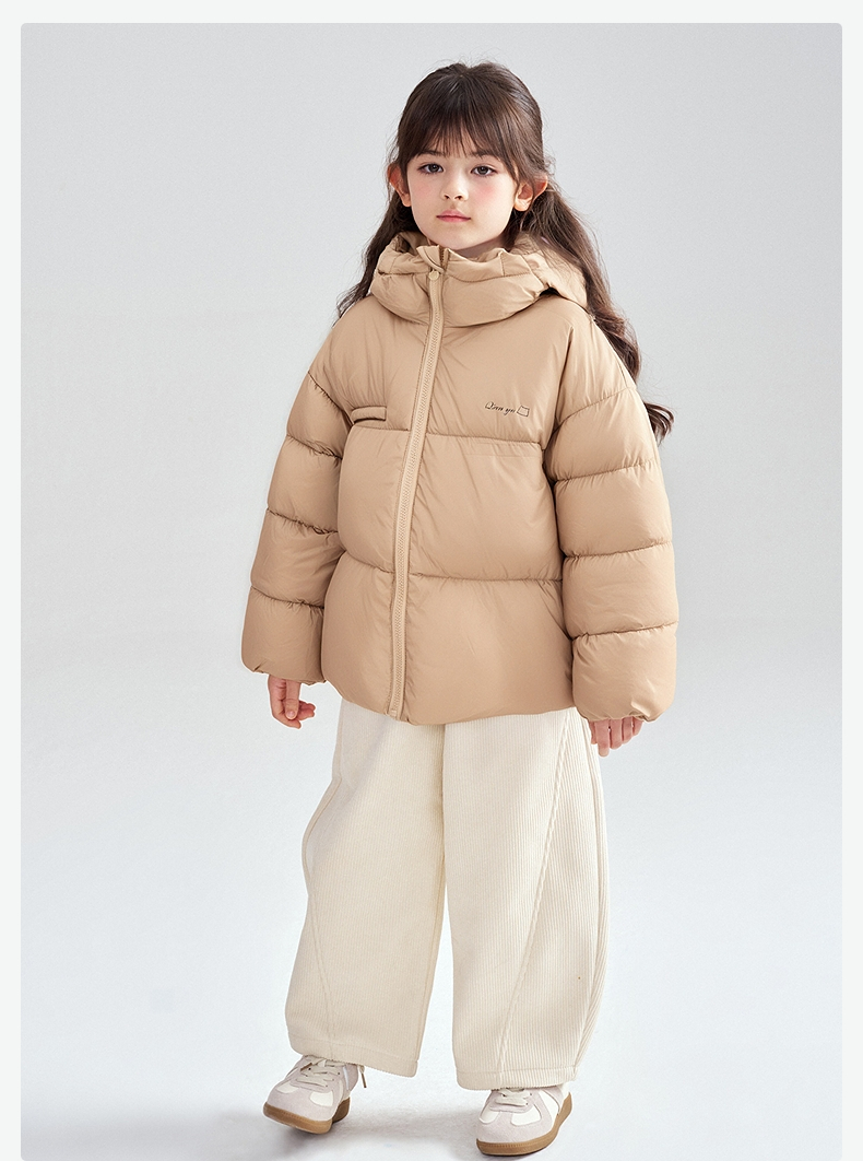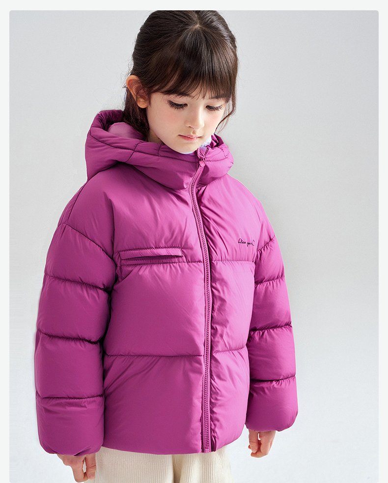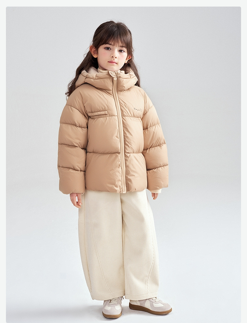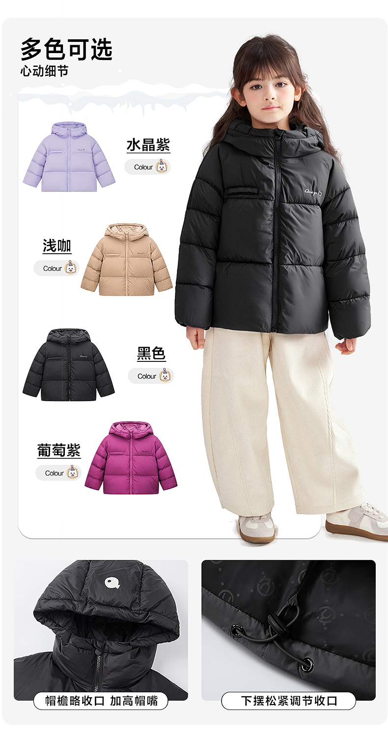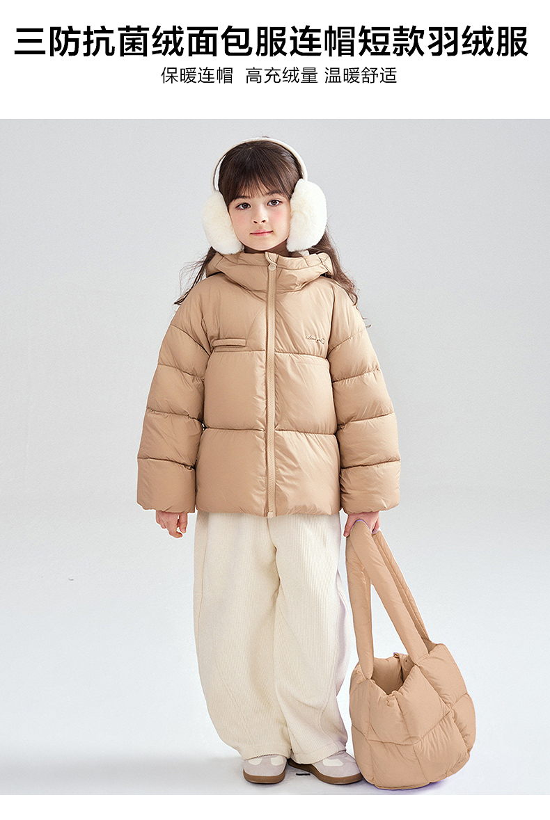 笛莎Deesha 2025冬季新款三防抗菌绒面包服连帽短款羽绒服