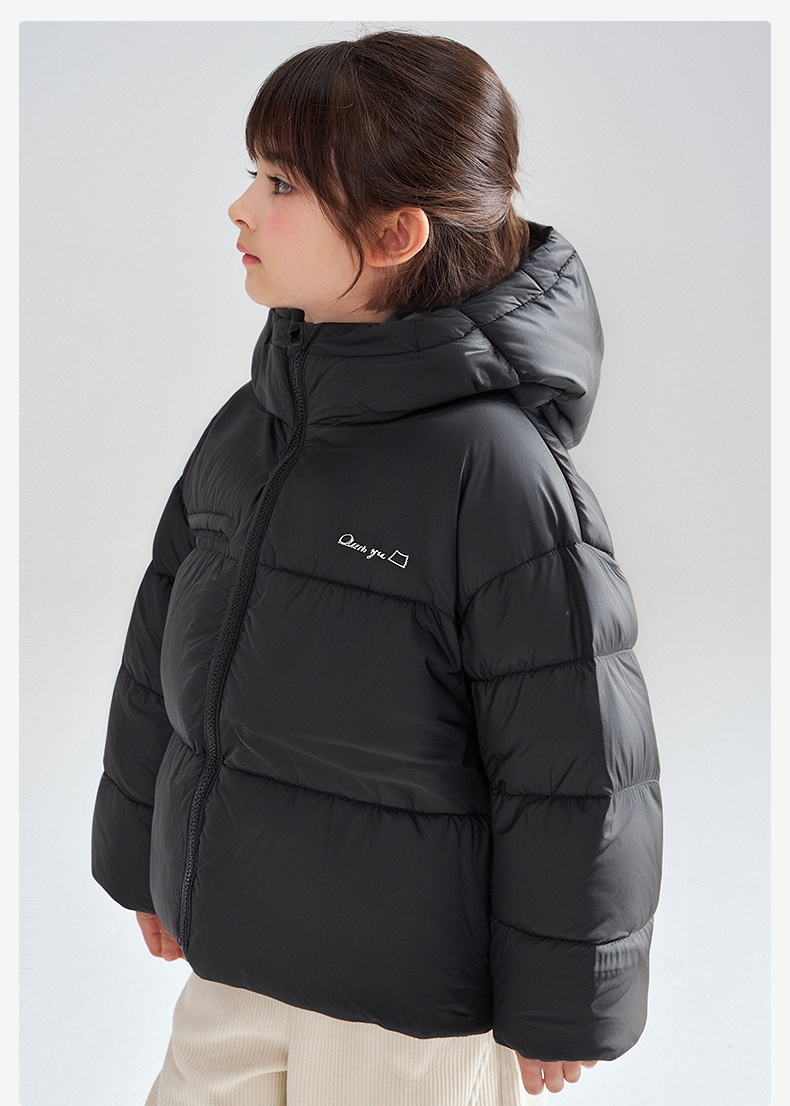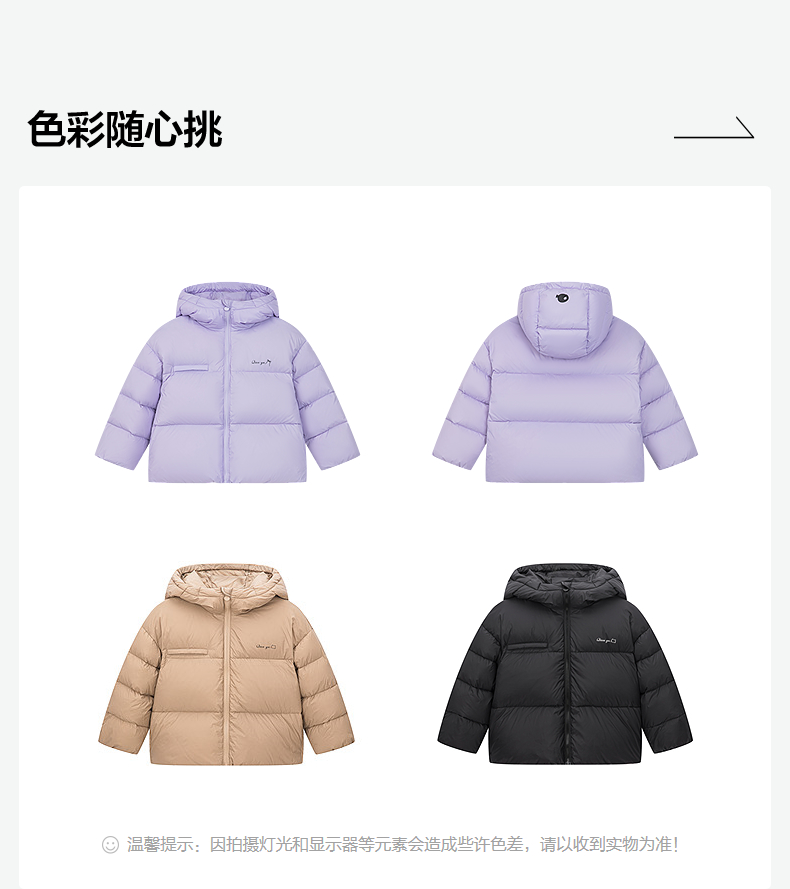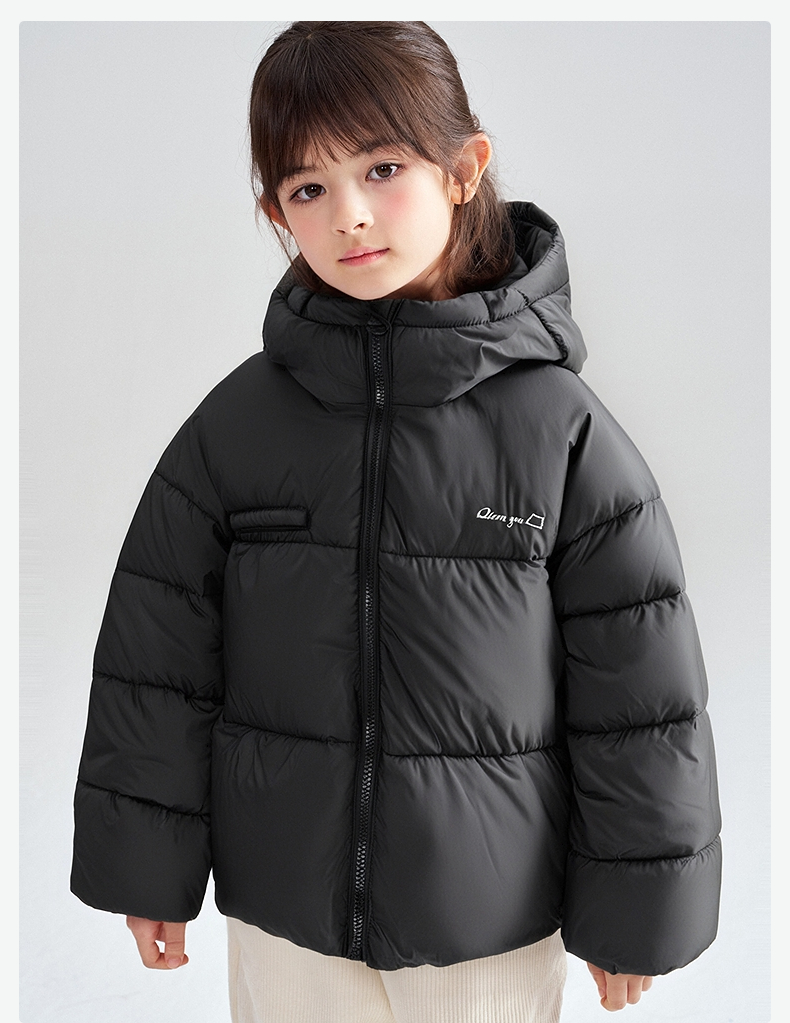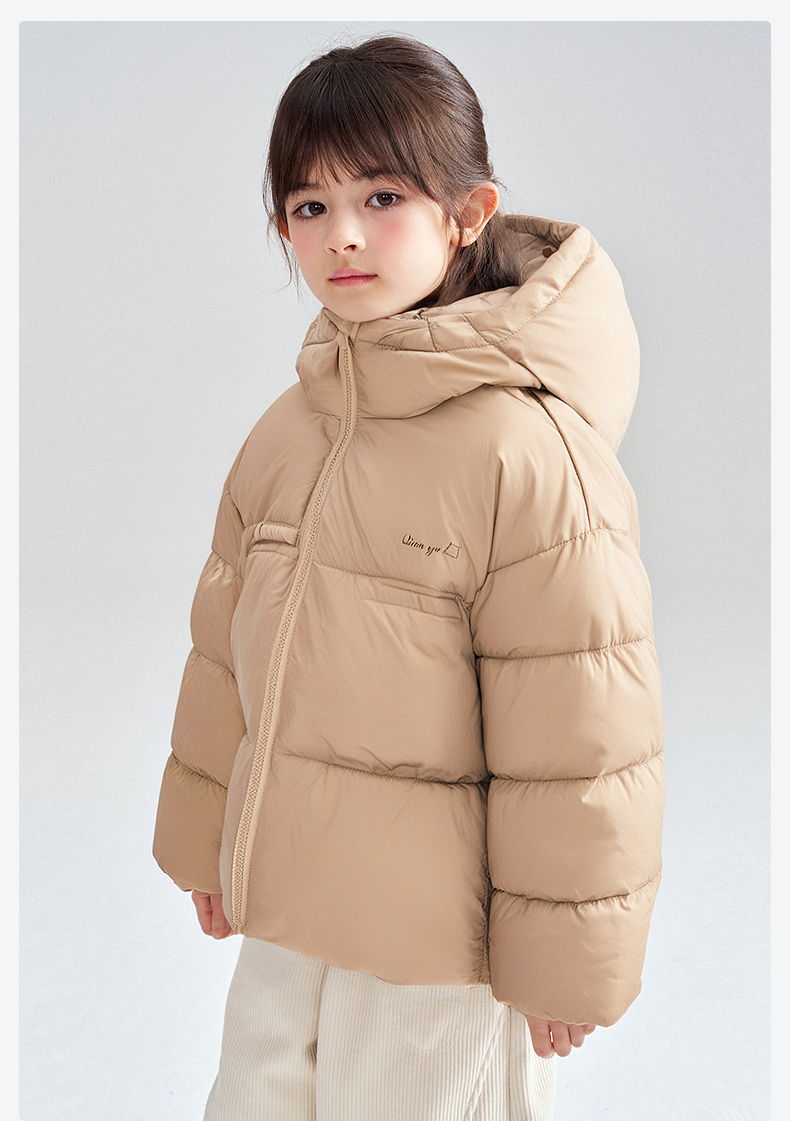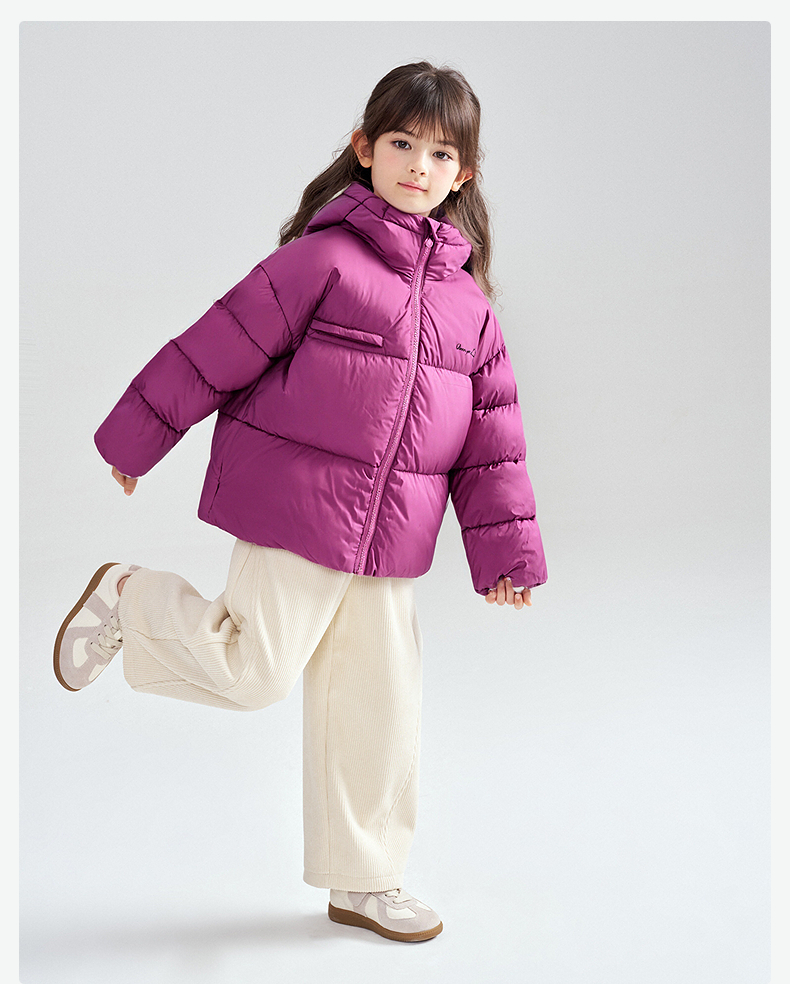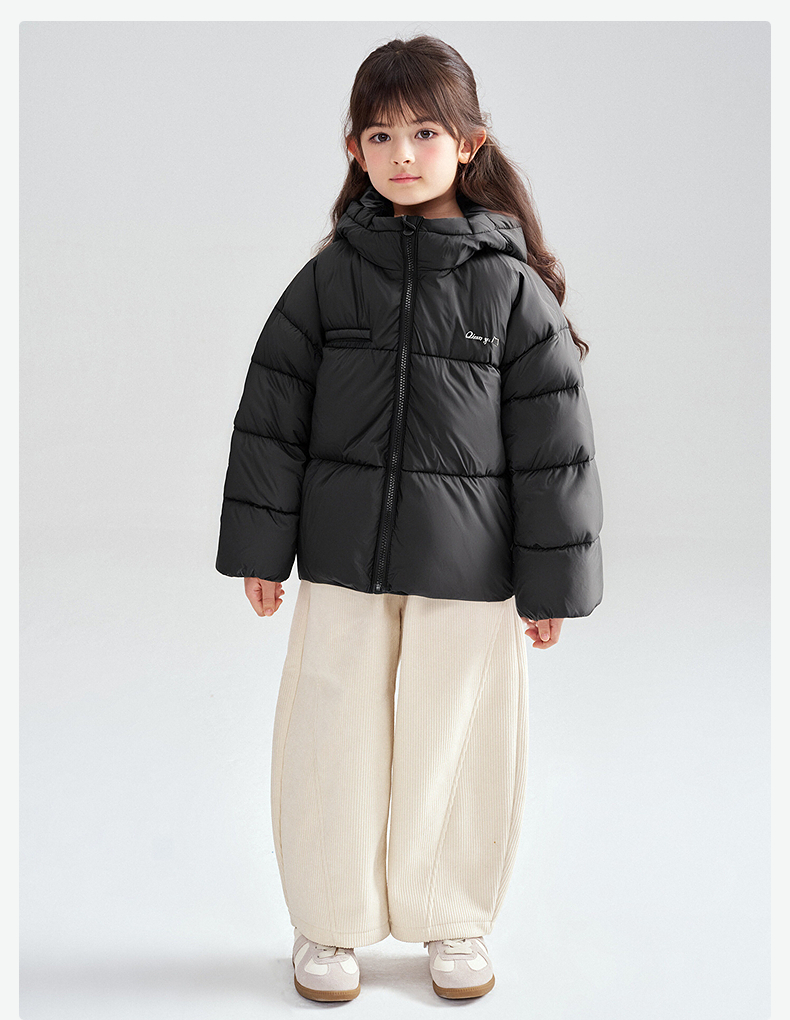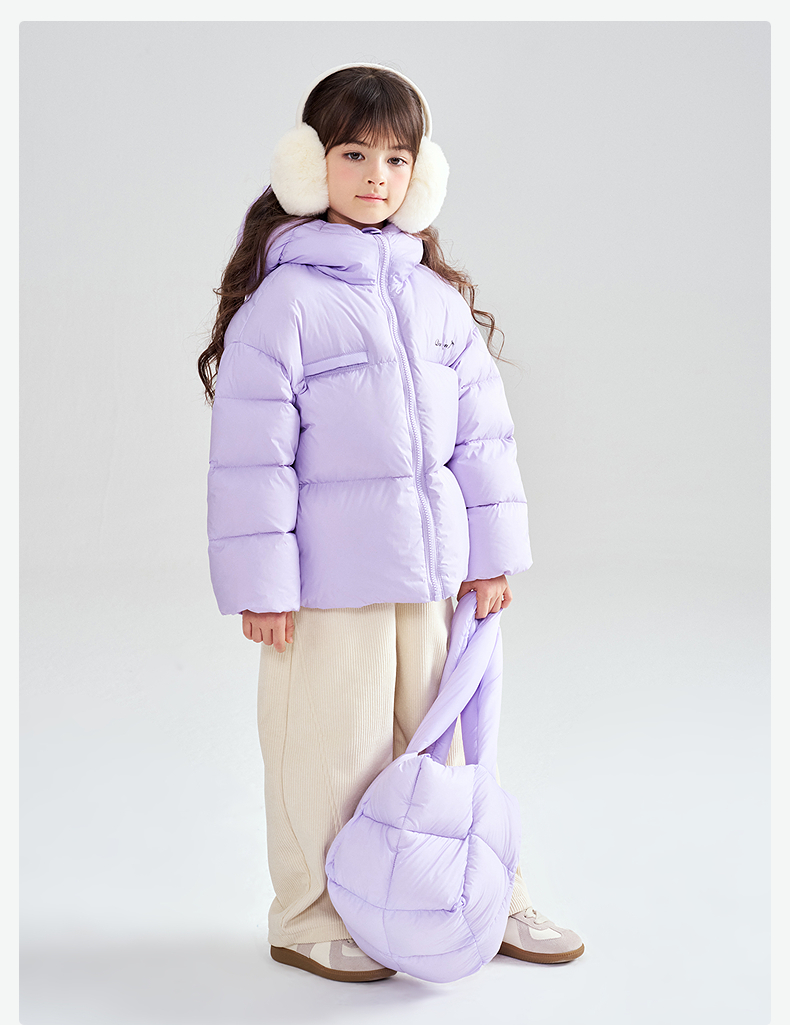 笛莎Deesha 2025冬季新款三防抗菌绒面包服连帽短款羽绒服