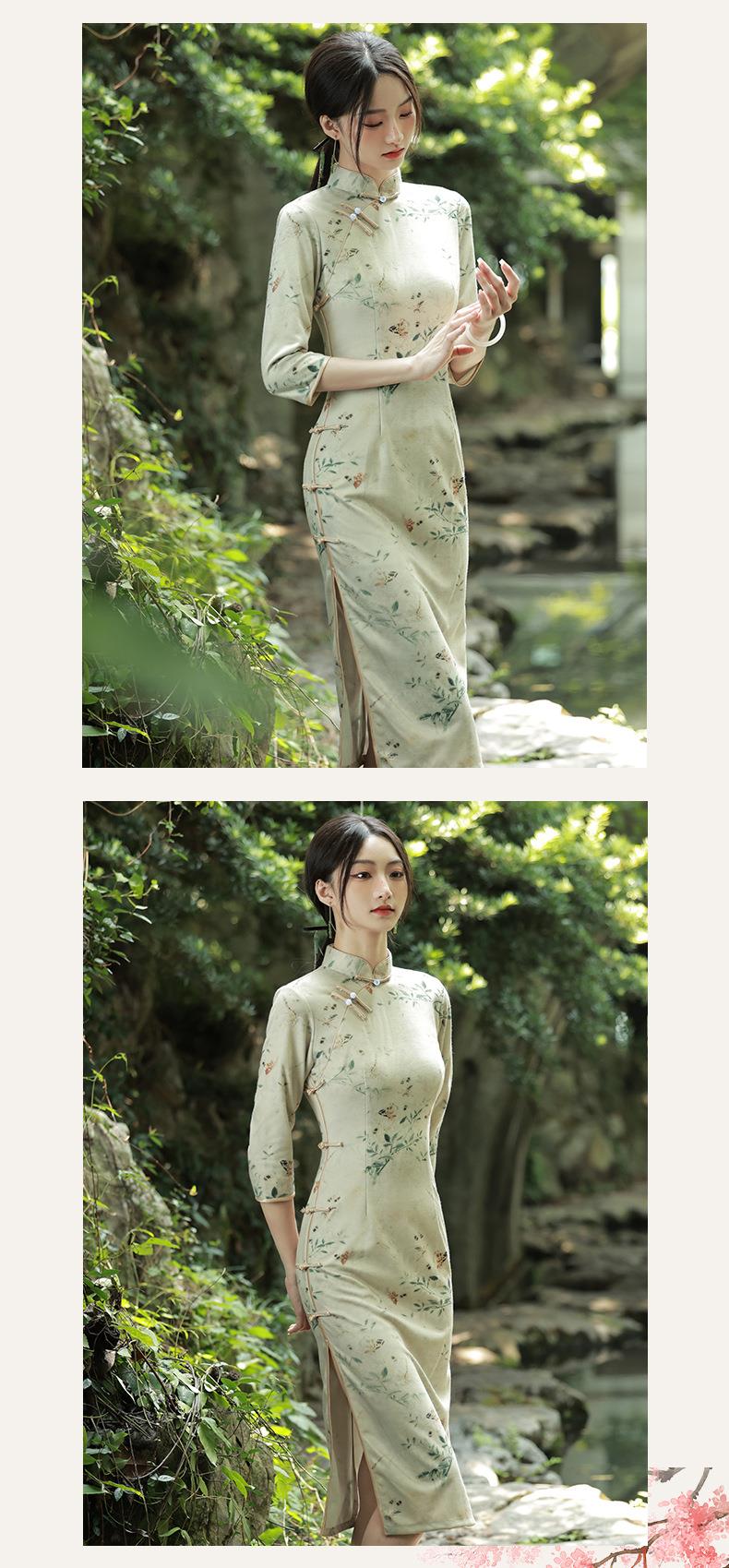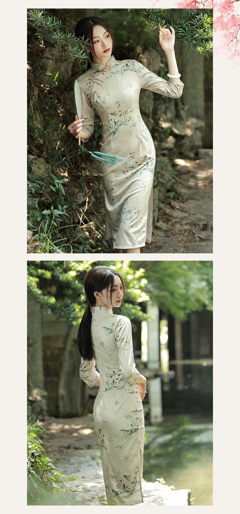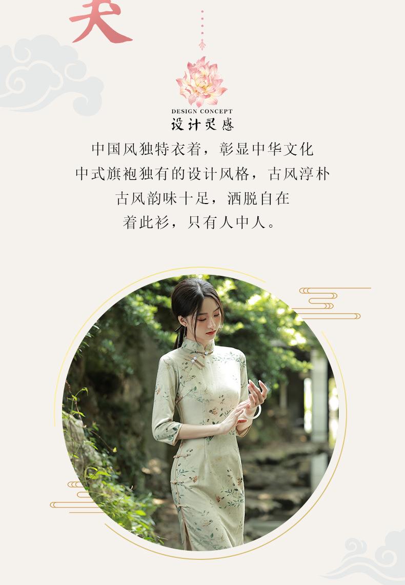 2023秋季新款雪花绒印花侧八扣中长款旗袍连衣裙复古改良少女旗袍