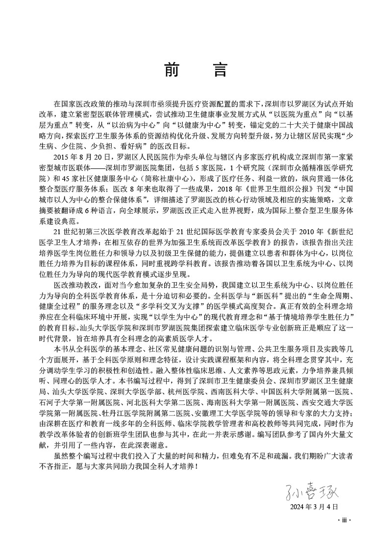 本书旨在为临床相关专业本科生提供足够的社区卫生服务实践内容,培养其初步具备全科理念,提升其全科基本知识和技能的应用能力,引导其将预防疾病、解除病痛和维护人民群众健康权益作为自己的职业责任。本书中导入医学人文和沟通技巧等思政元素,有助于培养更多的兼具倾听、同理心、人文关怀等职业素养的"有温度"的好医生。基于目前全科医学课程缺乏实用性和体验性难题,本书以汕头大学医学院医学教育积淀和深圳市罗湖医院集团多年新医改经验为基础,构建面向临床相关专业培育全科理念的学生、基于实践的全科医学教育课程。
