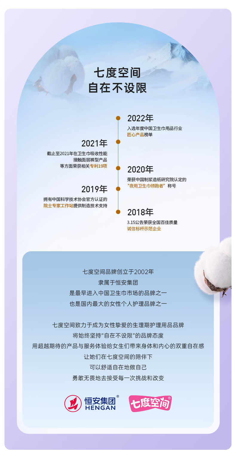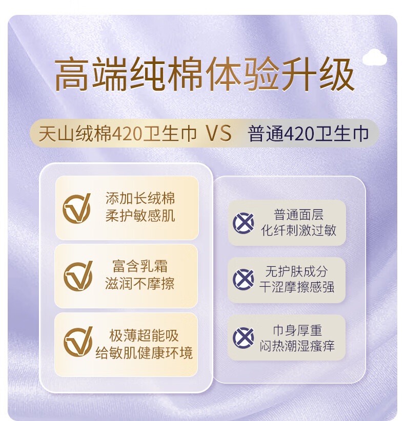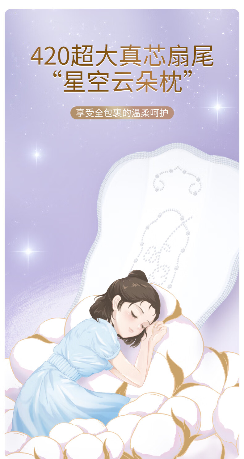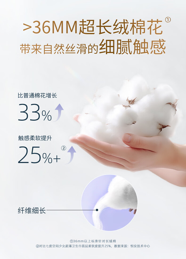 七度空间 天山绒棉系列极薄纯棉超特长夜用卫生巾420mm 5片/包