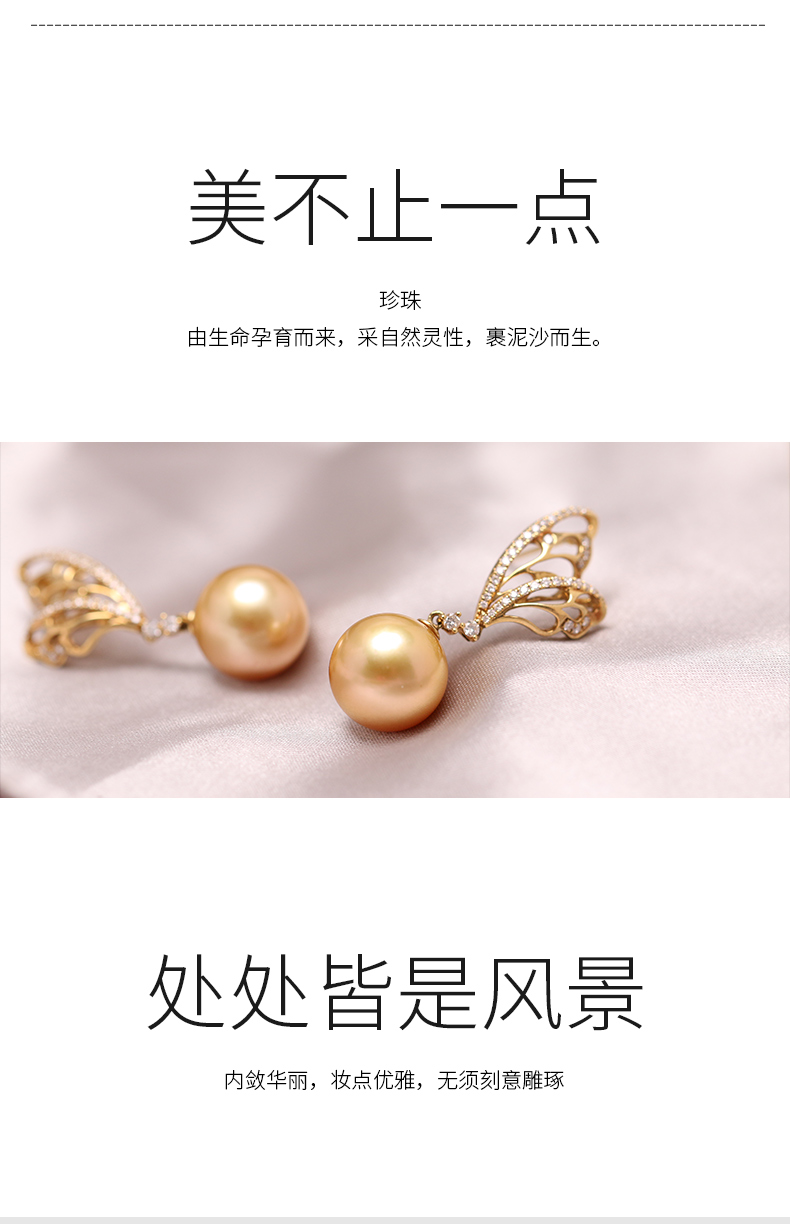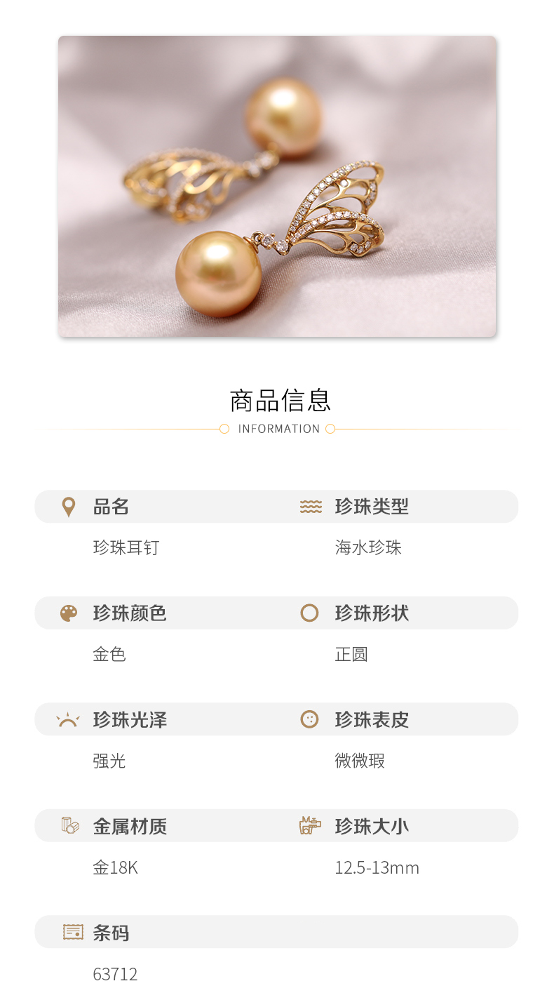 炫彩海南 金18K海水珍珠耳钉 12.5-13mm 63712