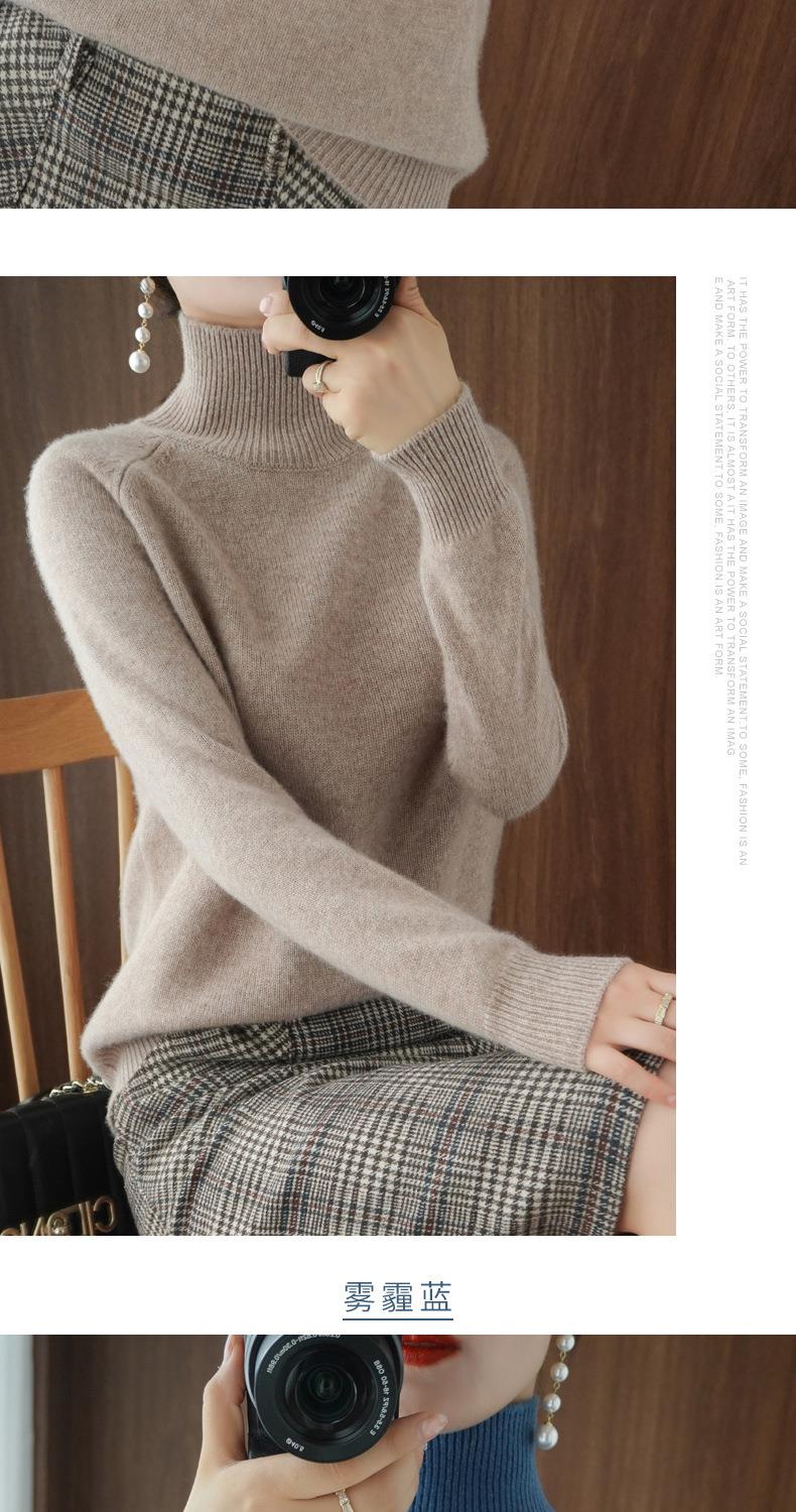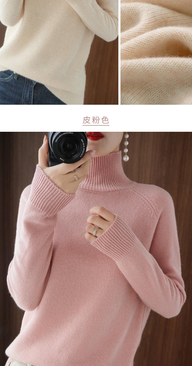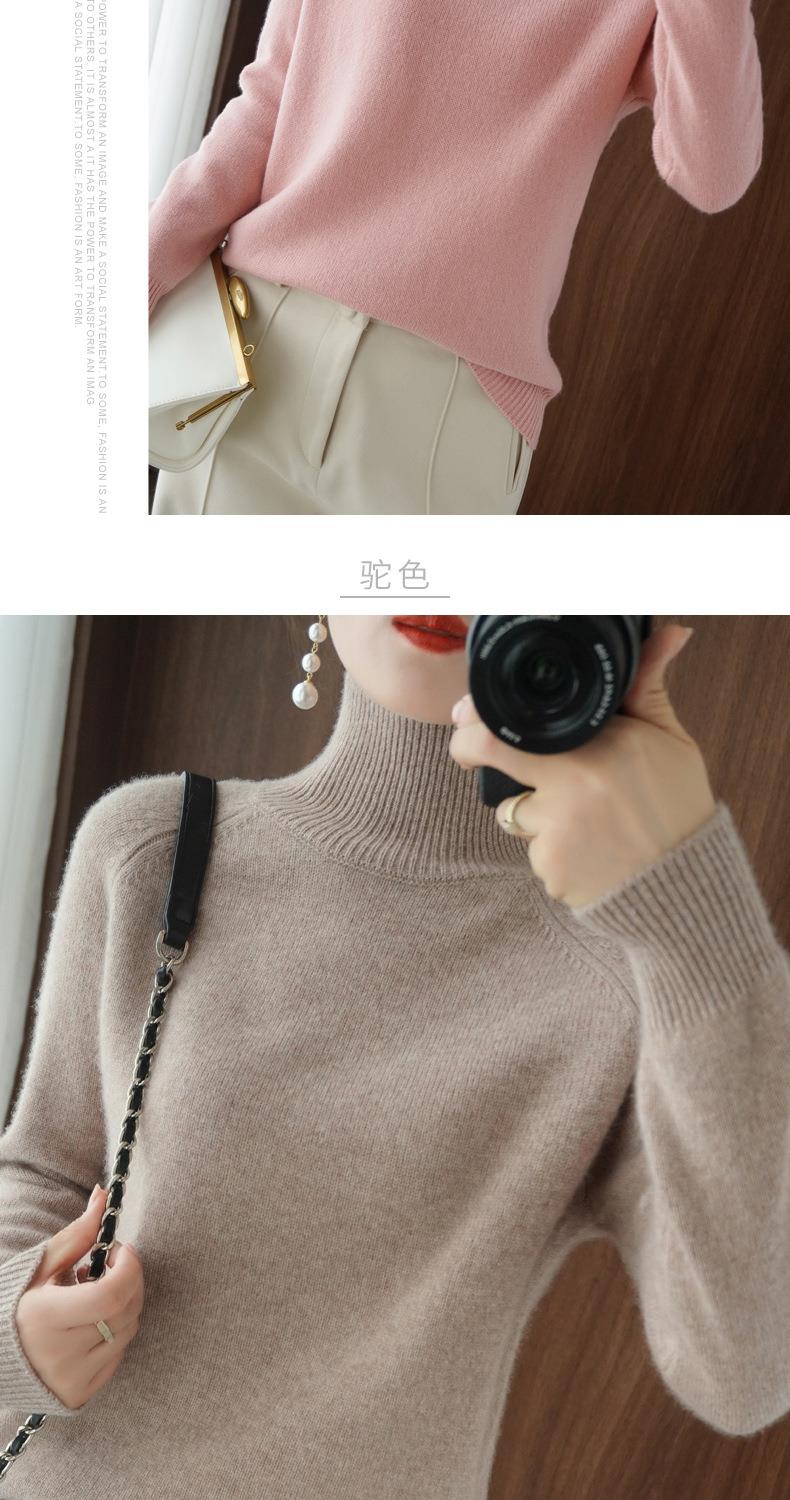 立领毛衣女秋冬新款2023厚款韩版女装纯色套头宽松针织长袖打底