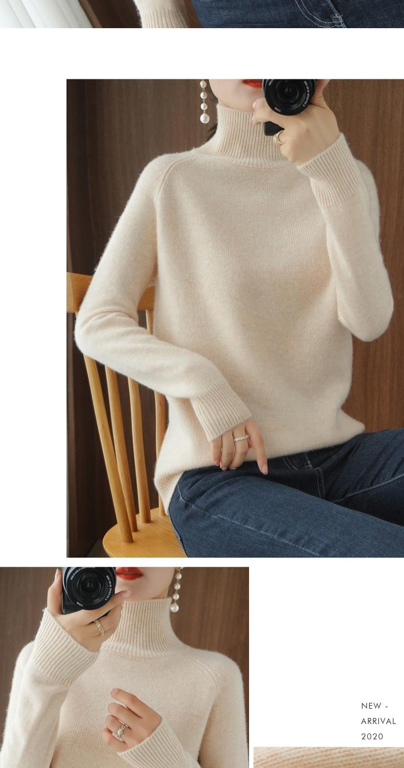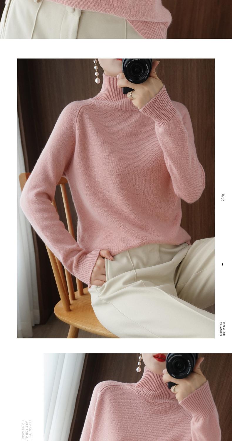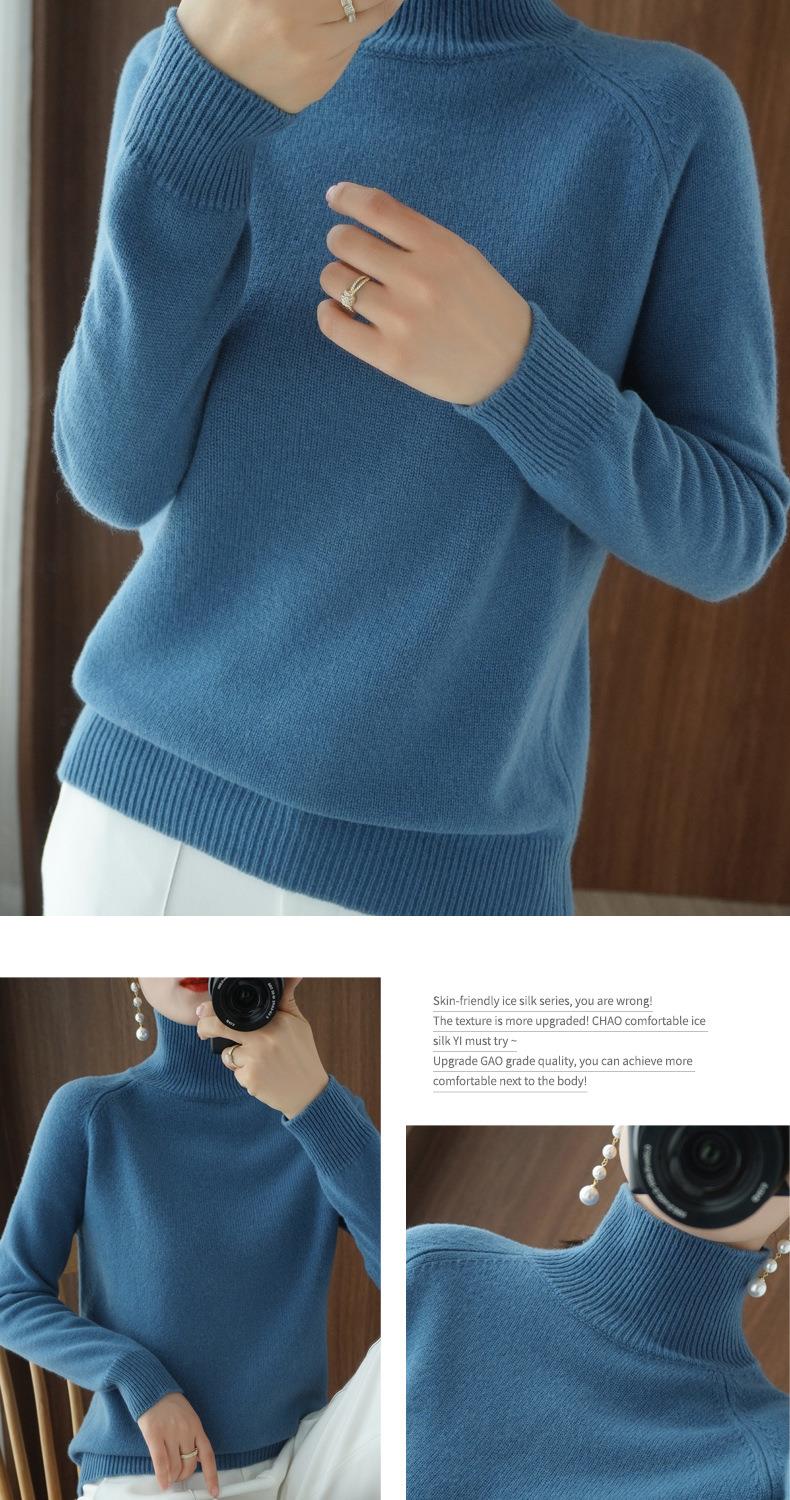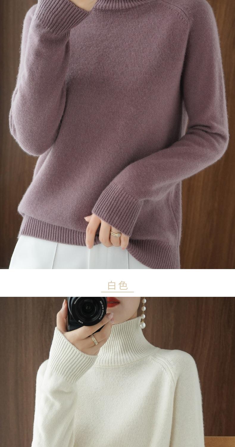 立领毛衣女秋冬新款2023厚款韩版女装纯色套头宽松针织长袖打底