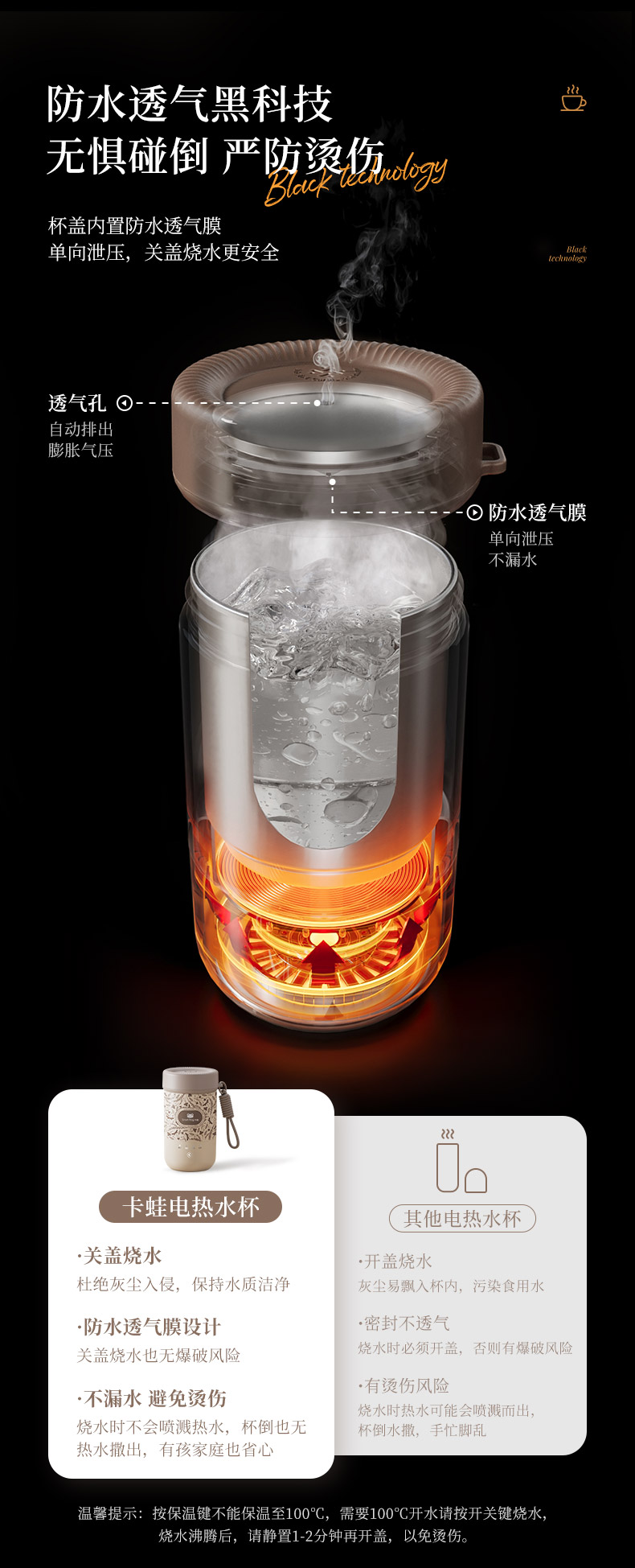 卡蛙便携电热水杯KW-CD01:内胆304不锈钢。