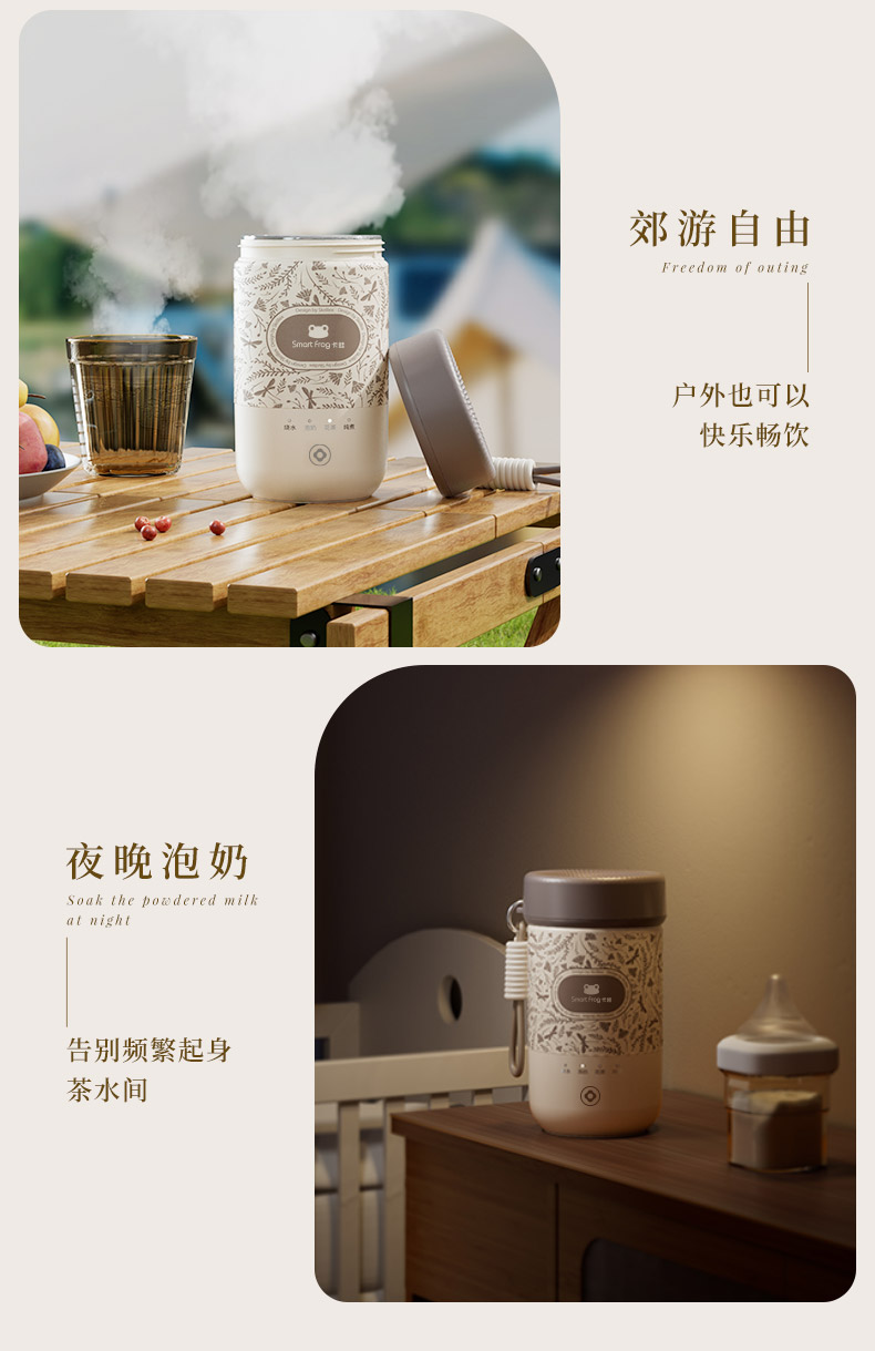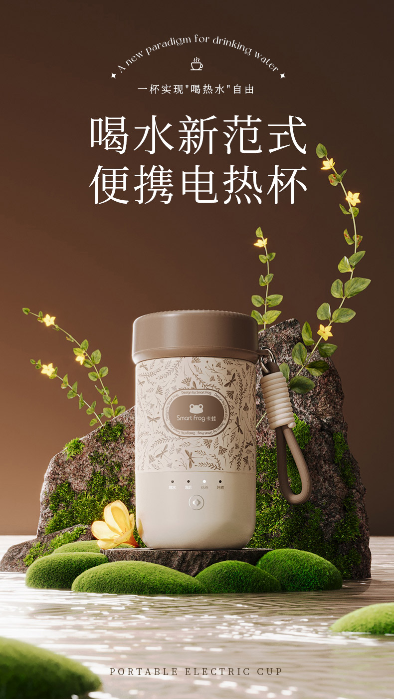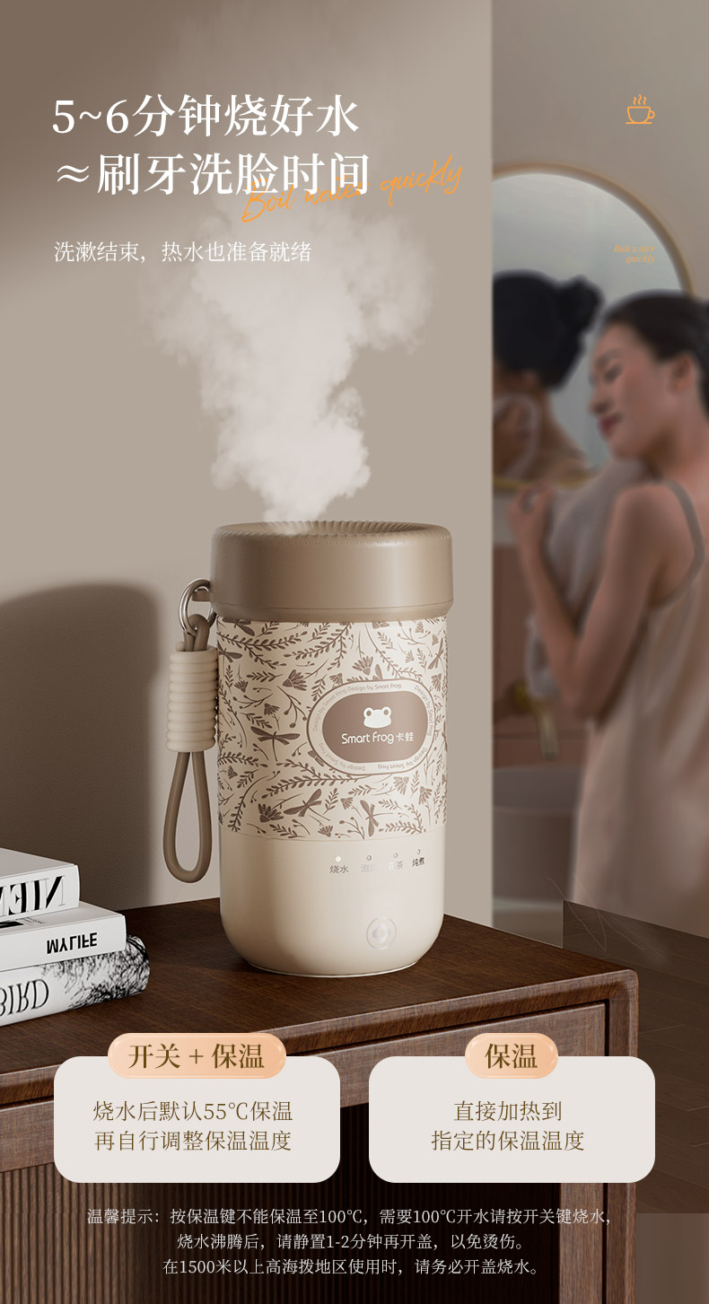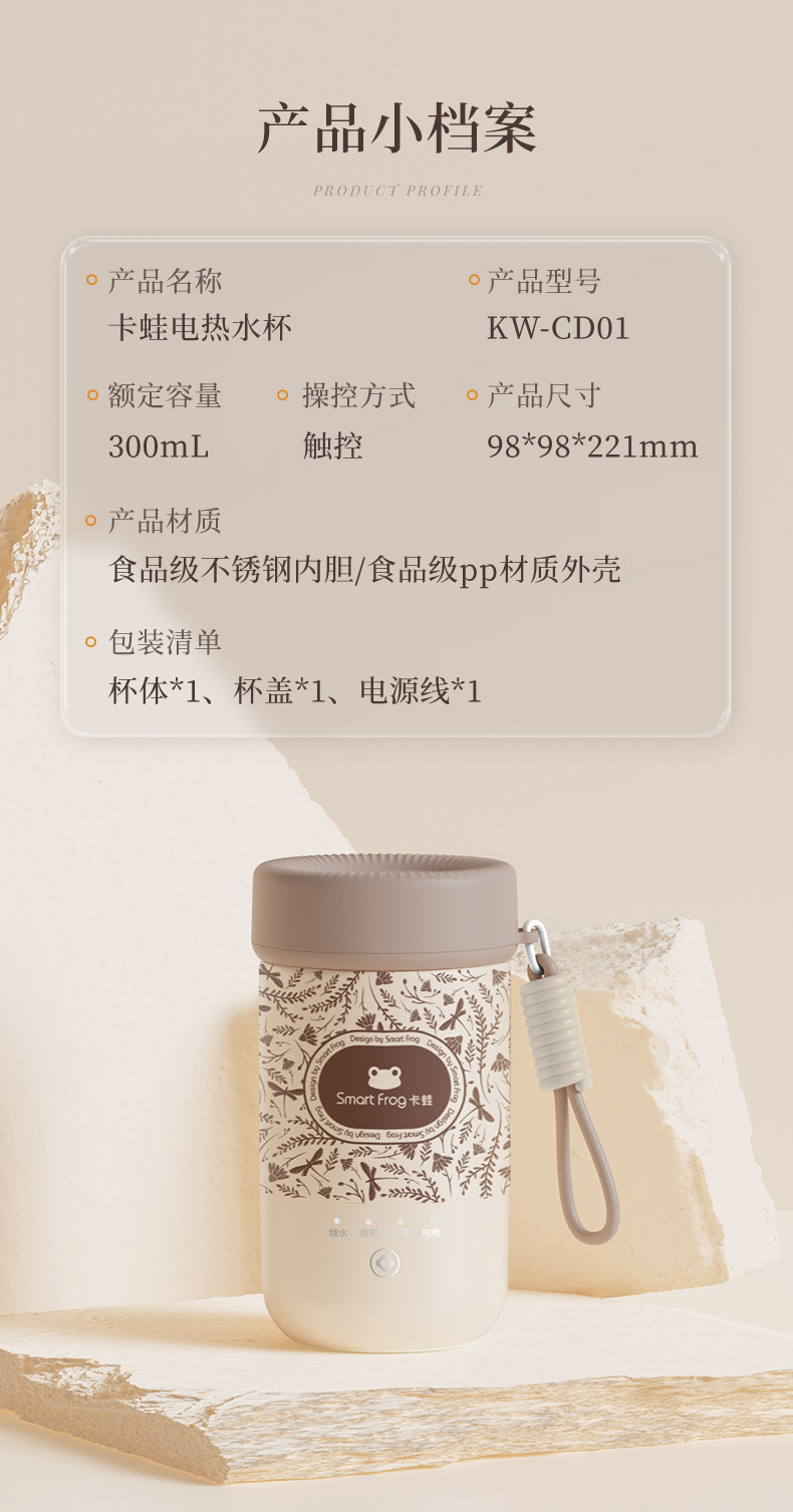 【可调温烧水杯】卡蛙 便携电热水杯 防水透气 关盖烧水 4档水温可调 快速烧水 6H长时保温 300ML大容量KW-CD01