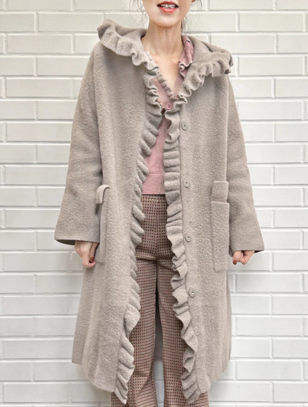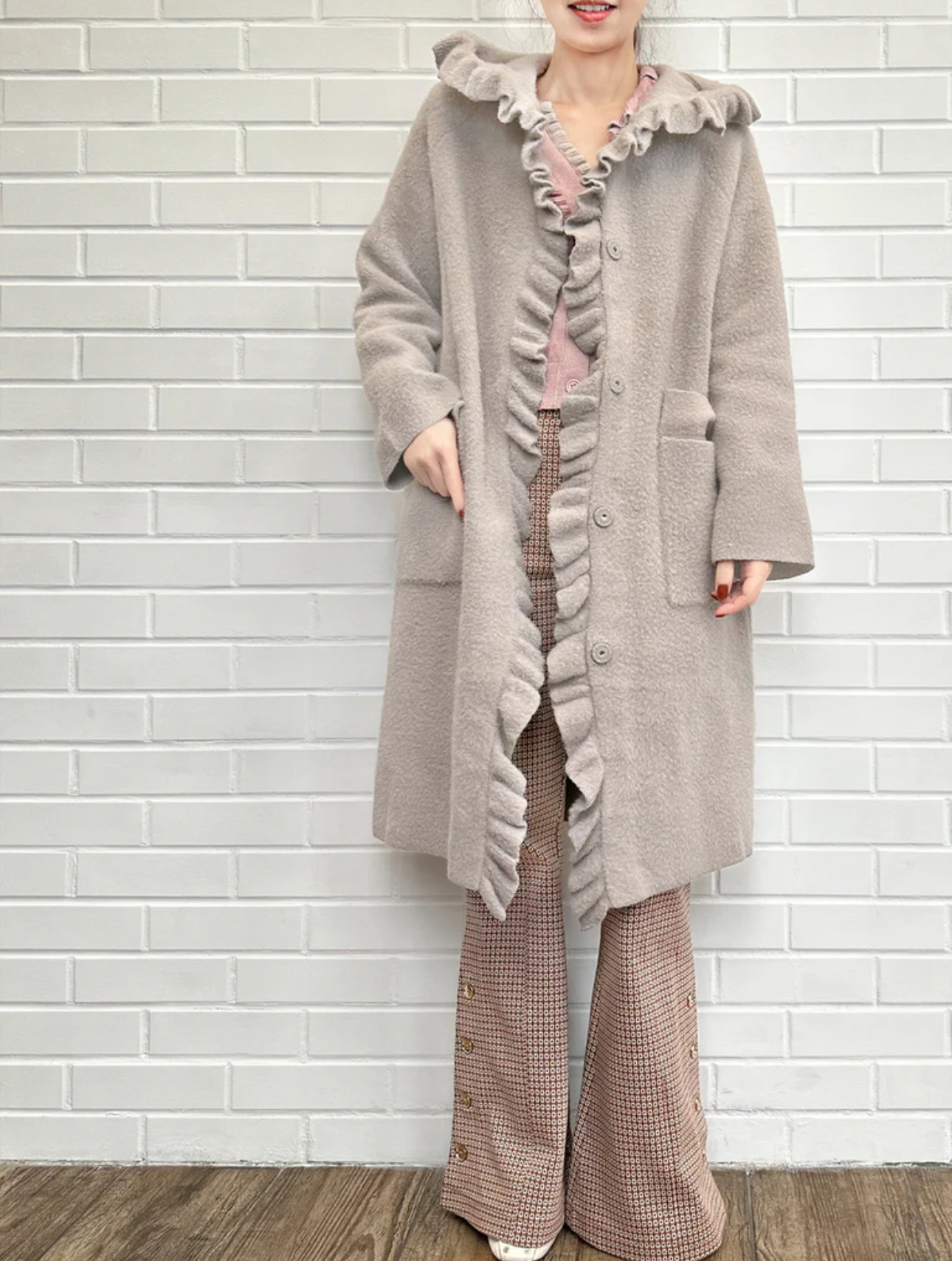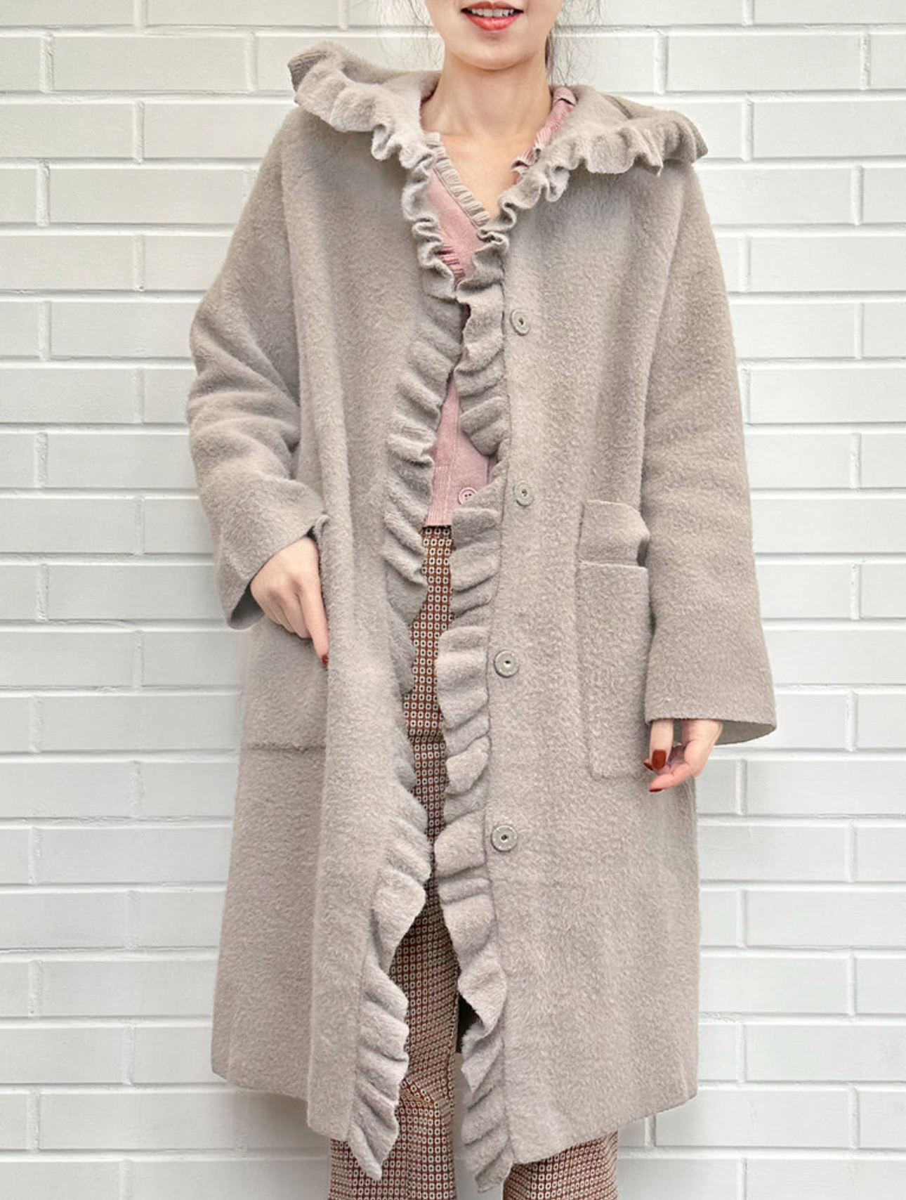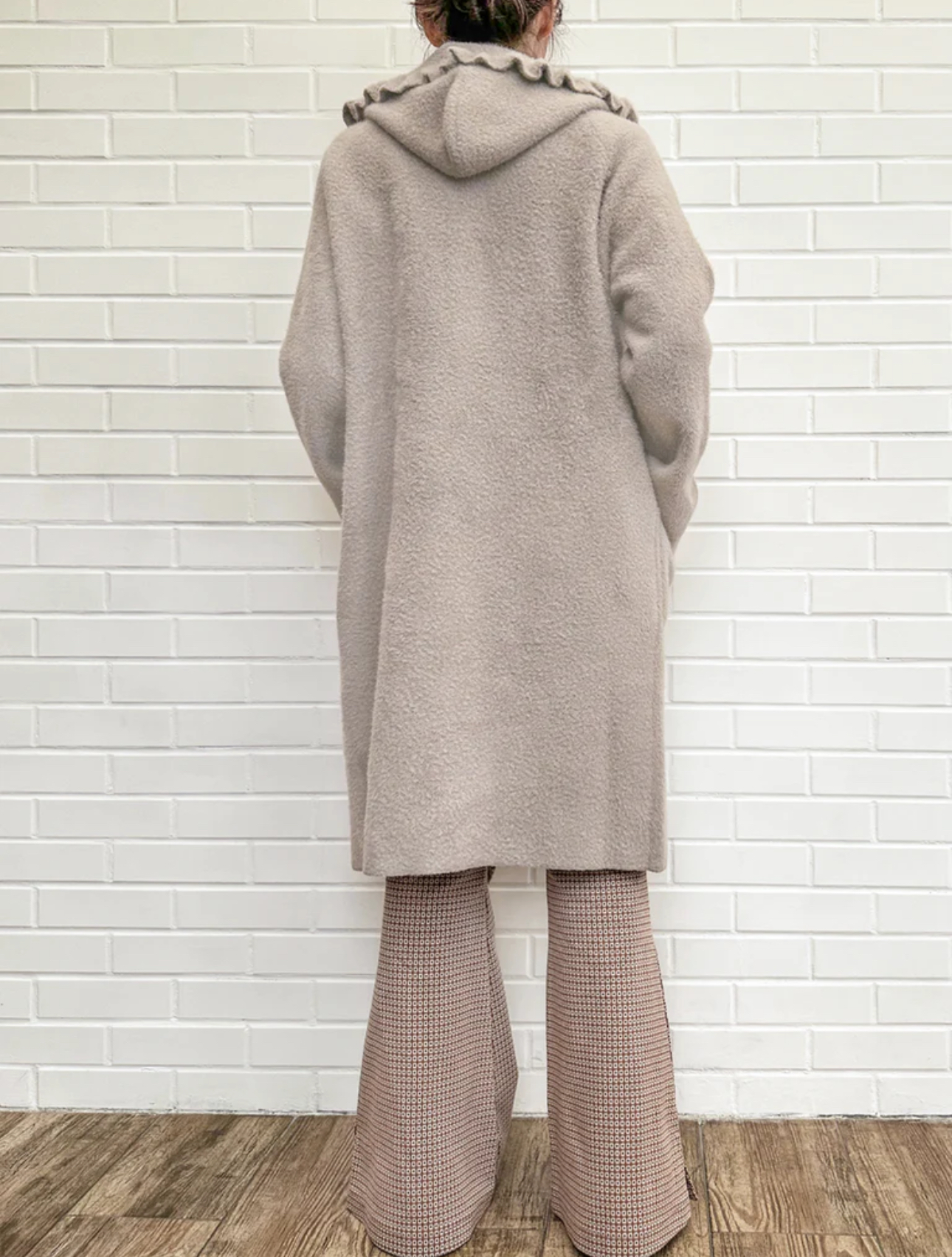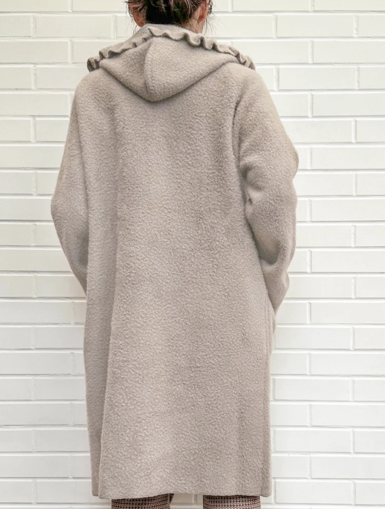 TYNVIE 荷叶边连帽针织大衣-灰色