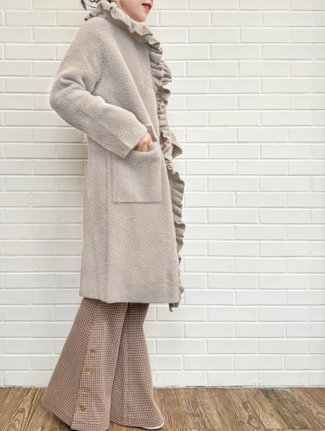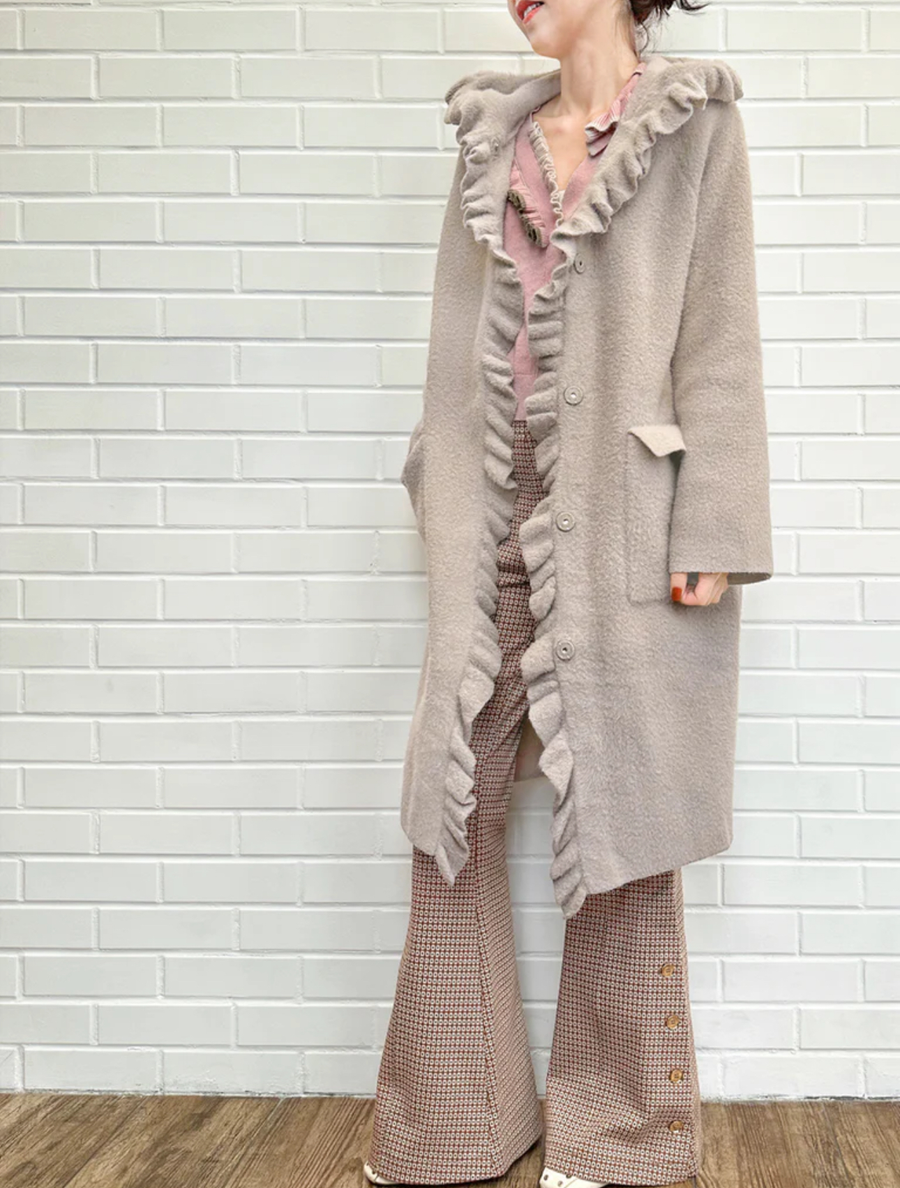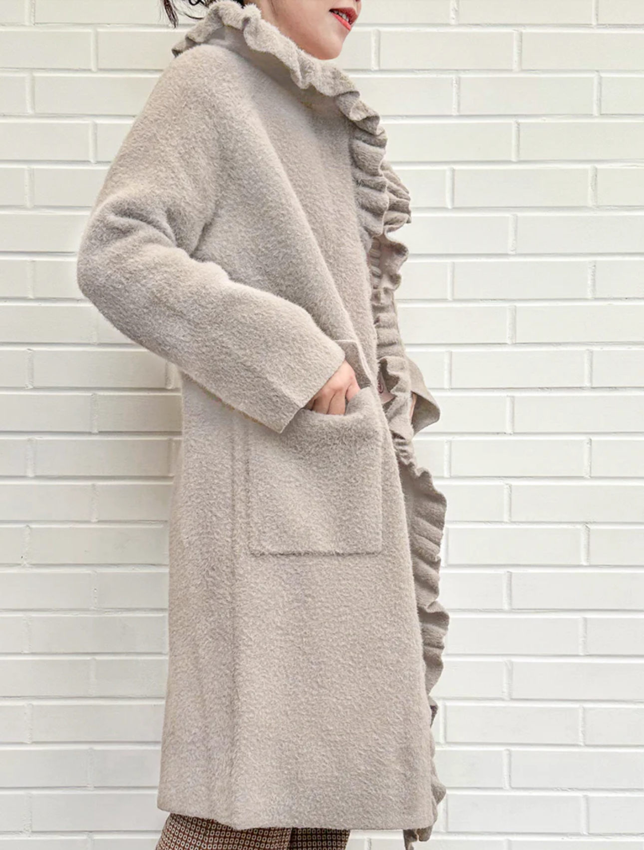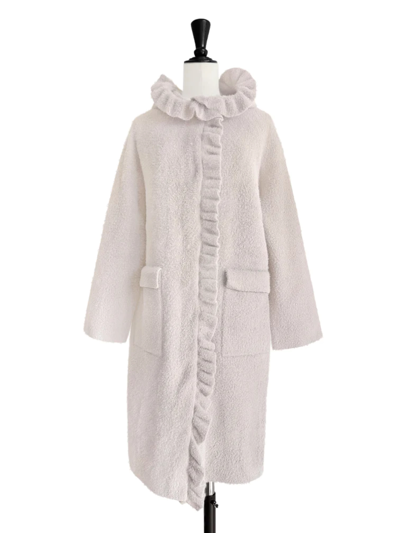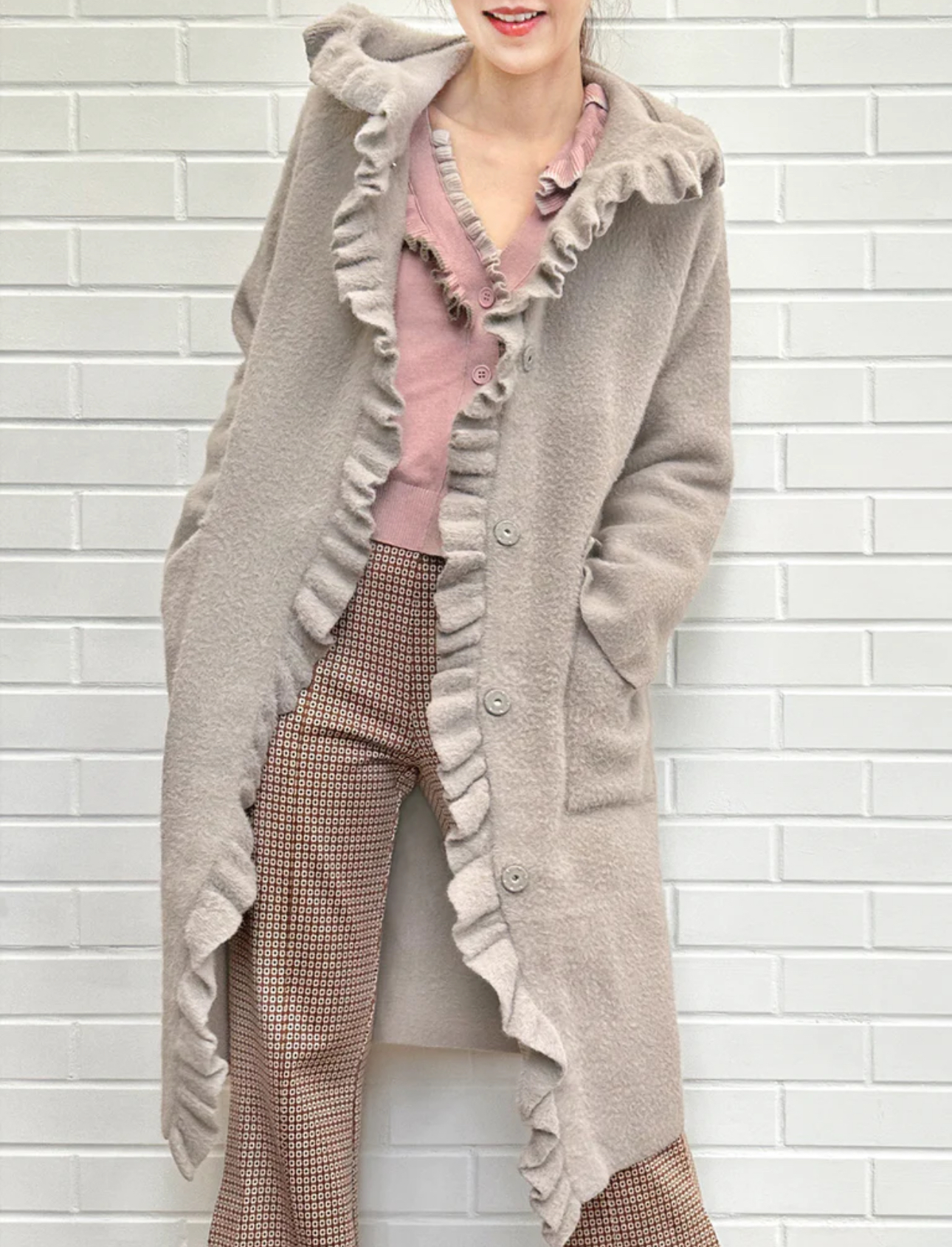 TYNVIE 荷叶边连帽针织大衣-灰色