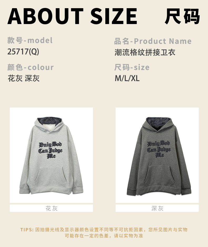 潮流格纹拼接卫衣-纪念日百货门店同款167145631