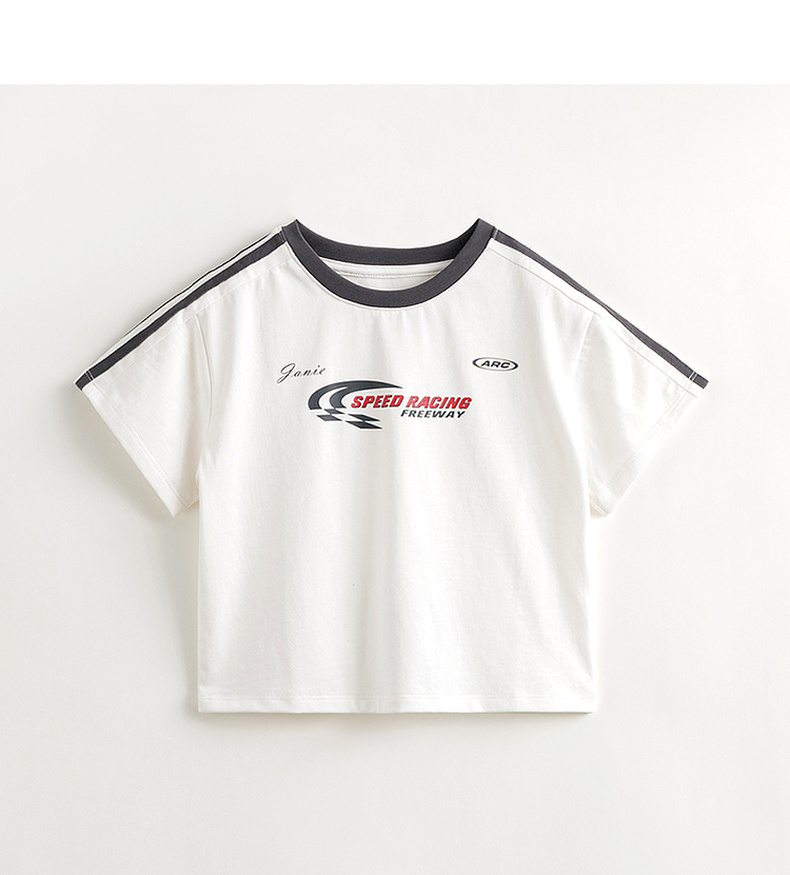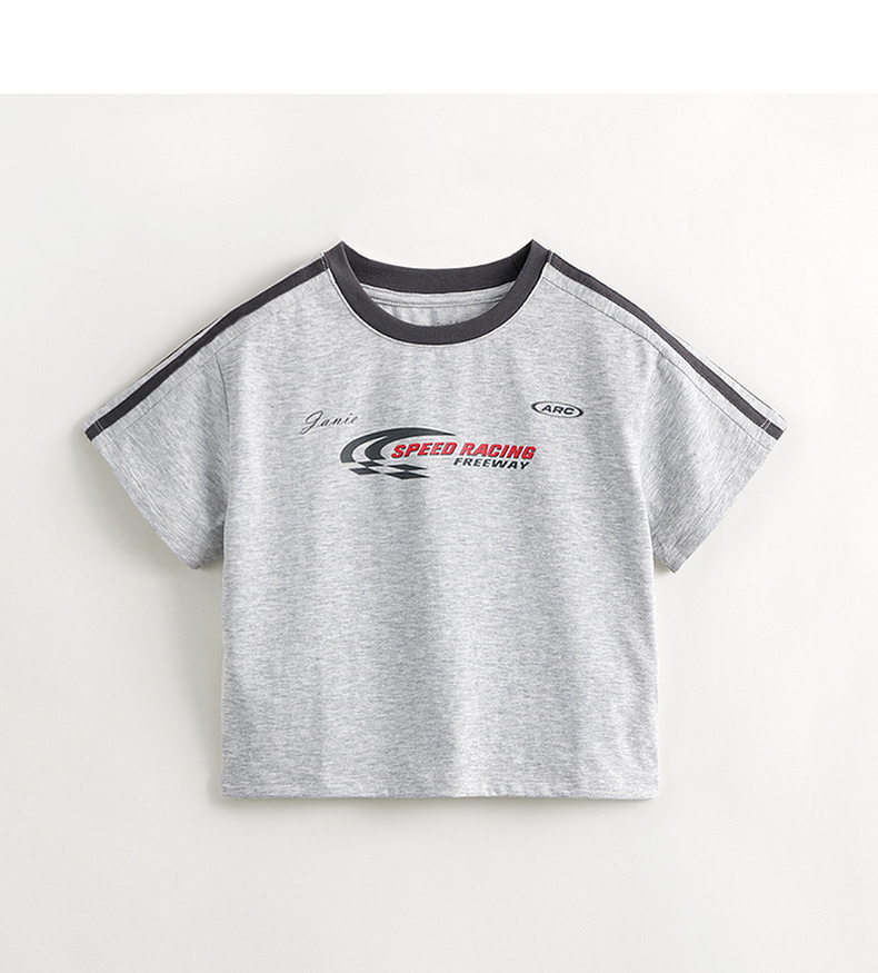 [凉感透气]马克珍妮男童美式侧边条纹短袖T恤儿童上衣夏装240577