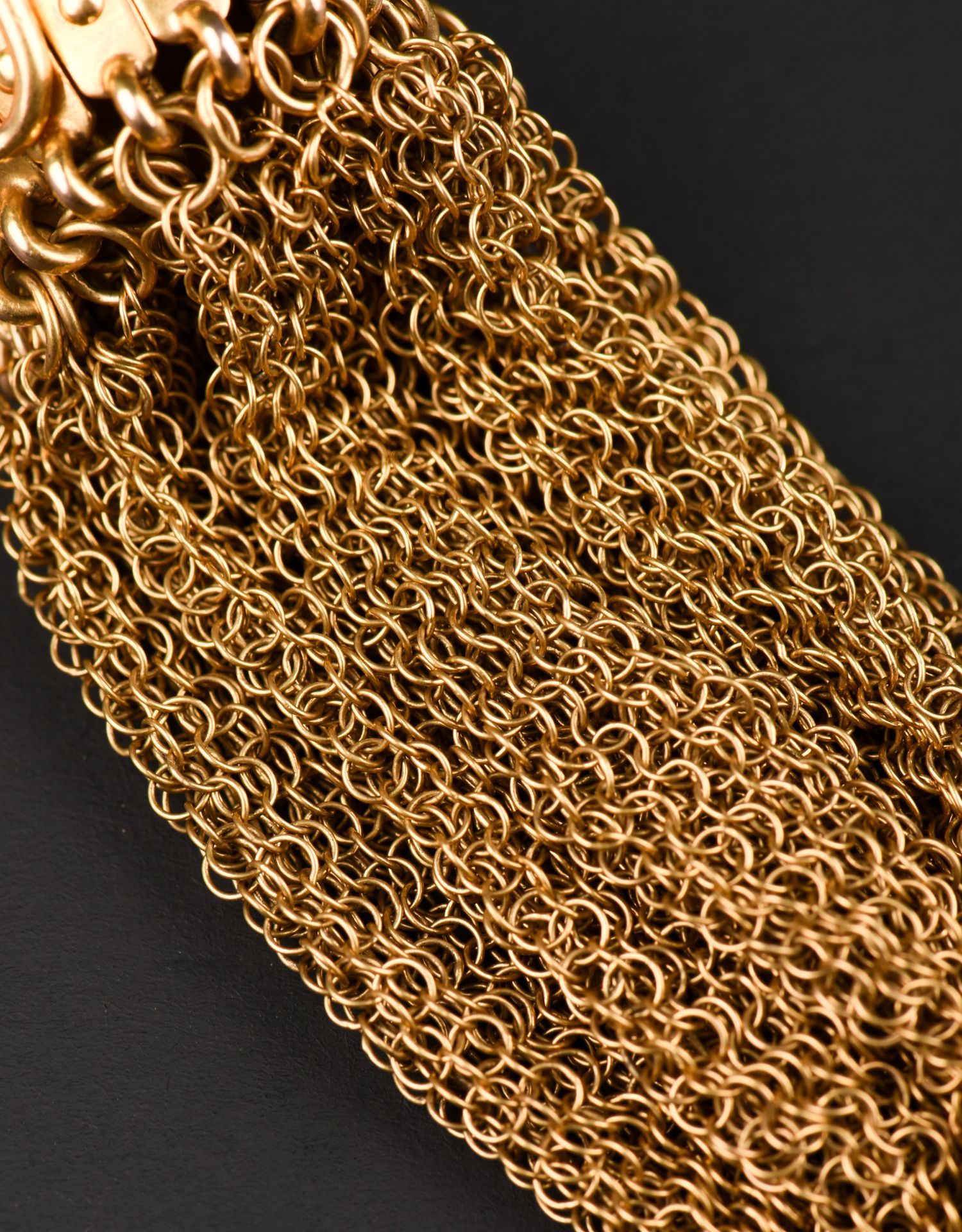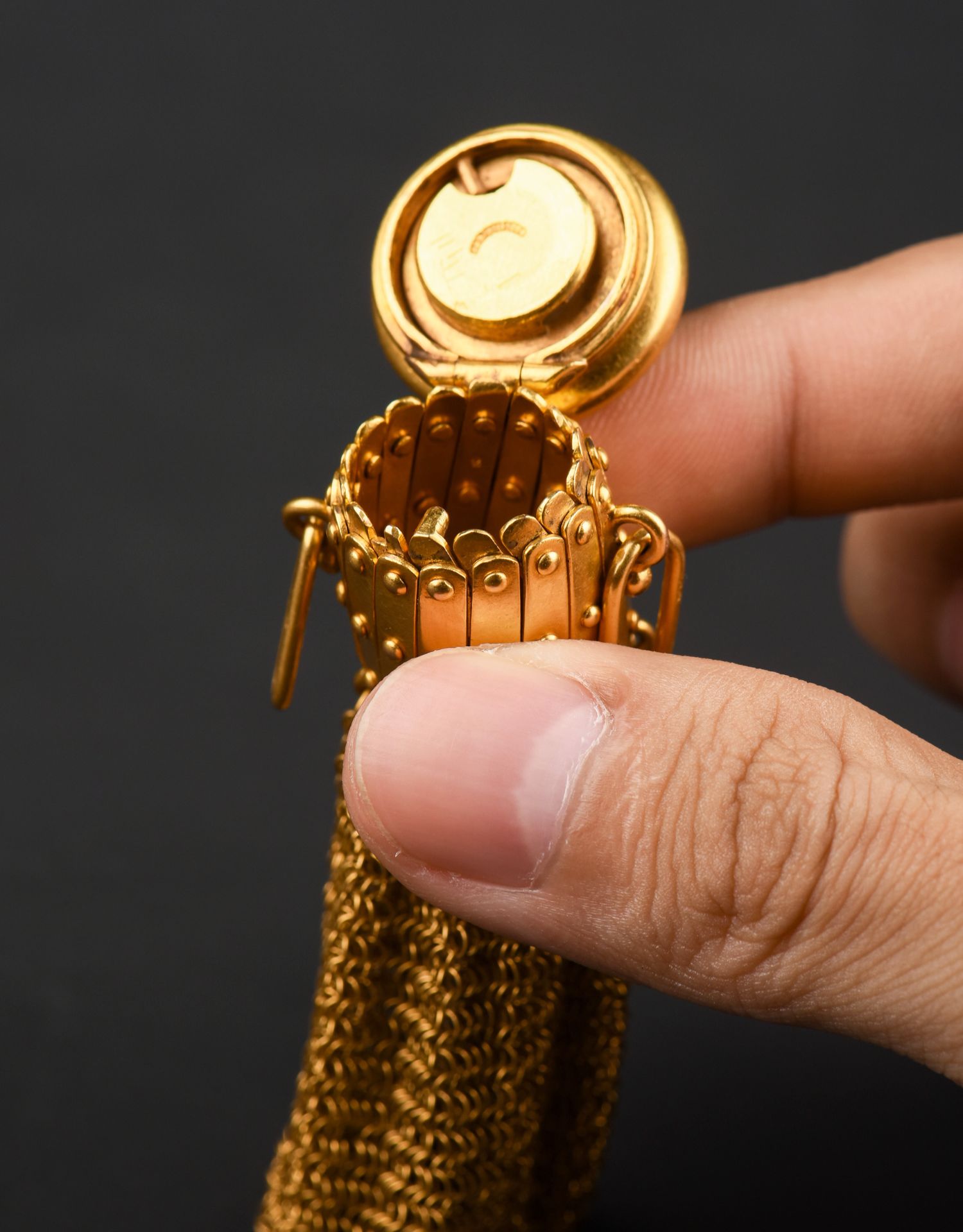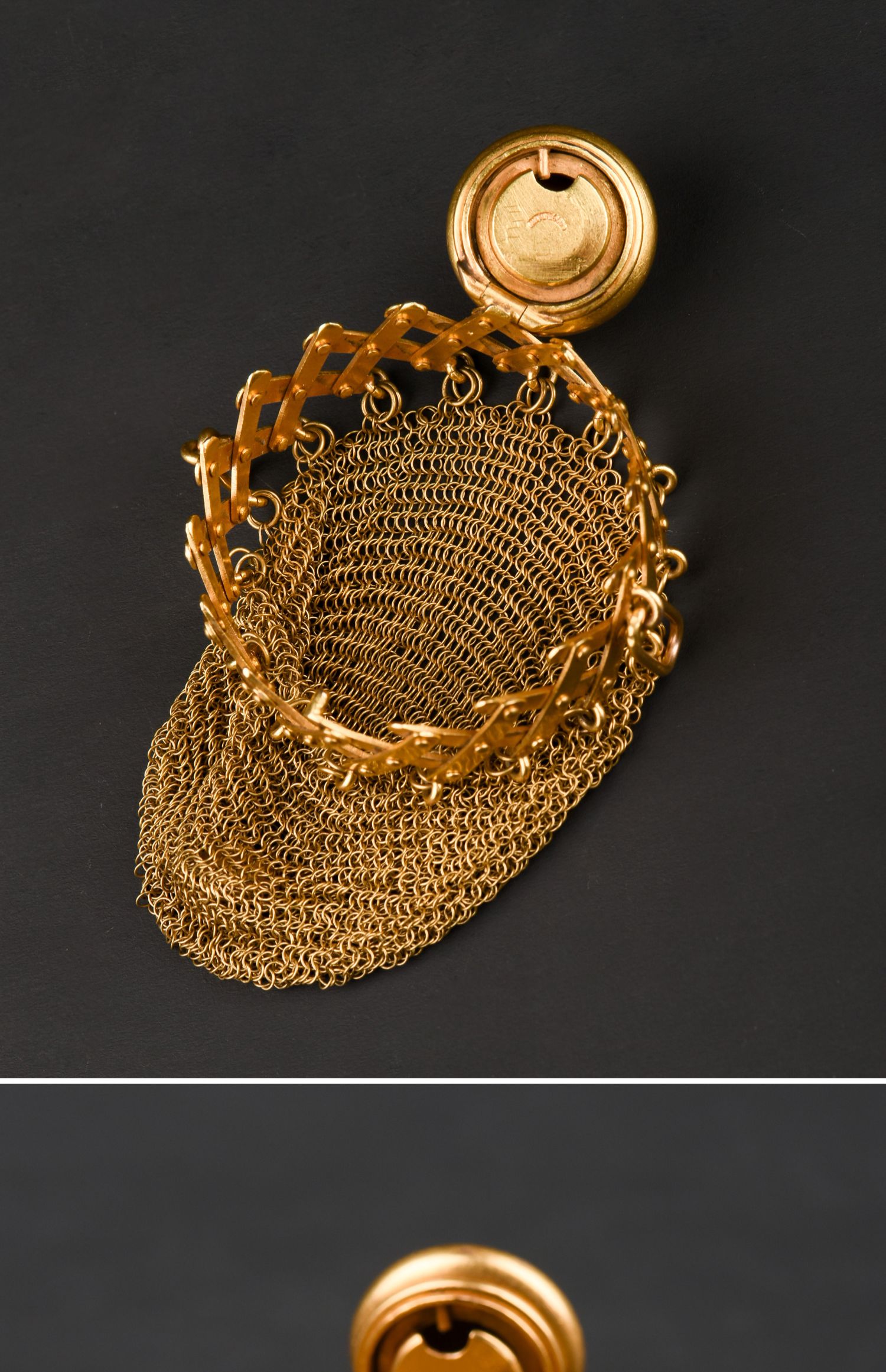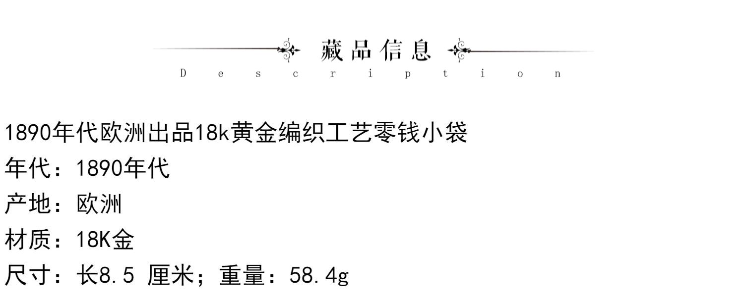 独角鹿西洋古董1890年代欧洲出品18K黄金编织工艺古董零钱袋