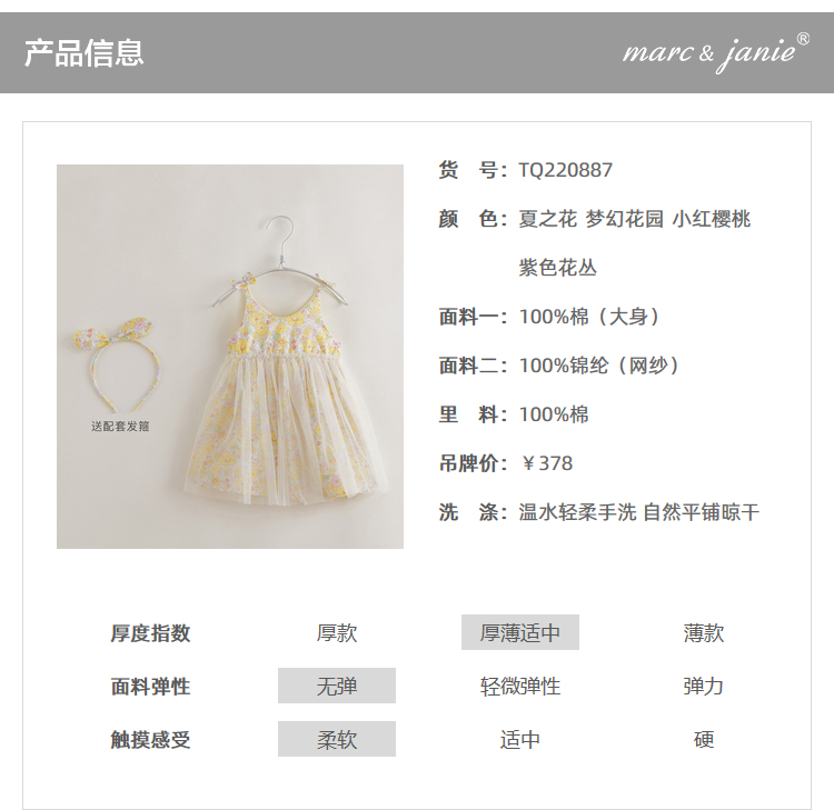 【马克珍妮 芦芙系列】夏装女童网纱吊带连衣裙220887