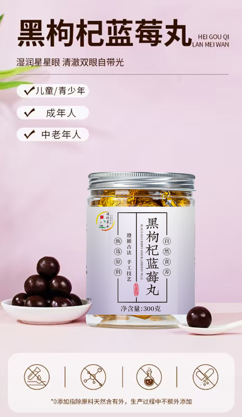 【护眼健康❗️草本黑枸杞蓝莓丸】甄选蓝莓 黑枸杞 紫米 黑豆 紫薯 绿豆 桑椹 山楂 决明子 金银花 山药 龙眼肉 核桃 胡萝卜粉 菊花 黑芝麻 蜂蜜精制而成!儿童明晴女人花青素