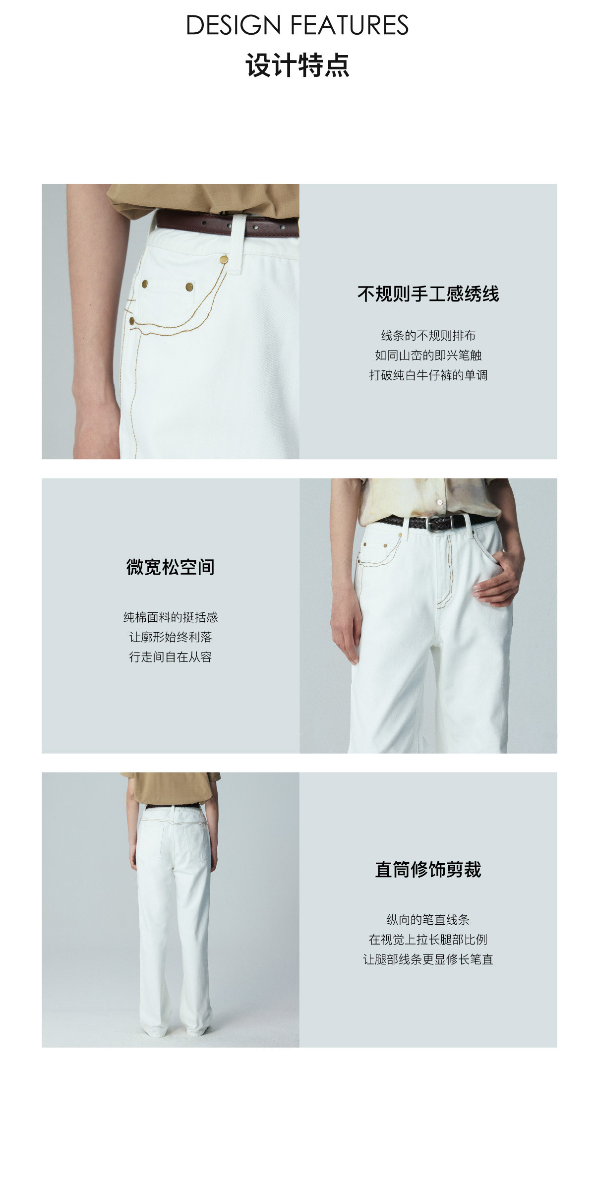 LIYIHAN 2026夏季新款女纯棉直筒牛仔裤白色通勤长裤子小众设计感