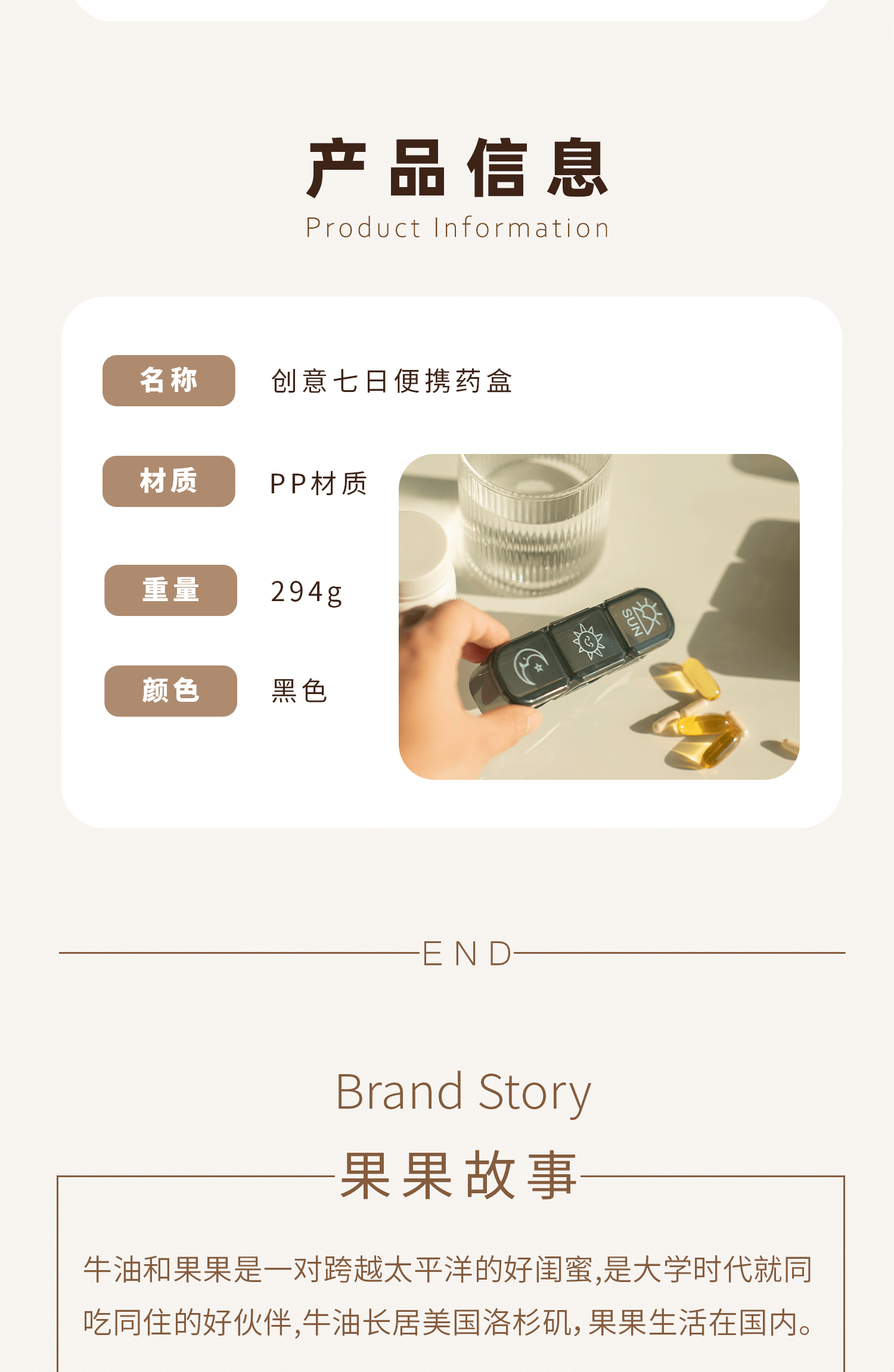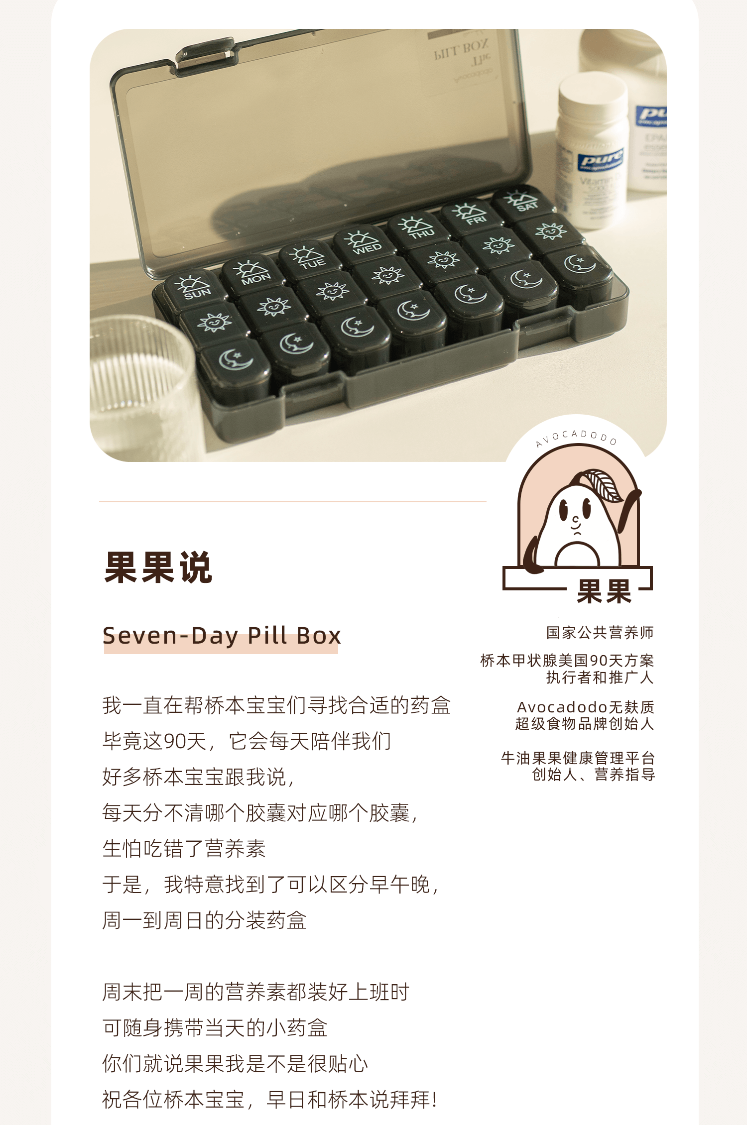 牛油果果7日21格便携药盒黑色避光环保桥本90天补剂营养素随身
