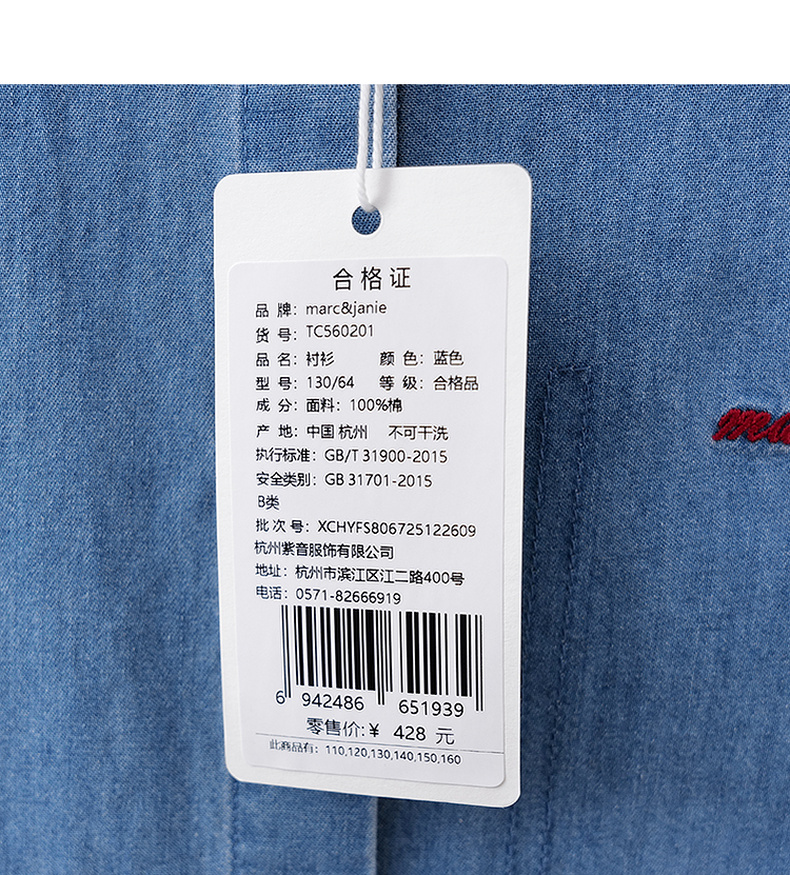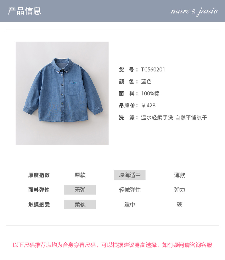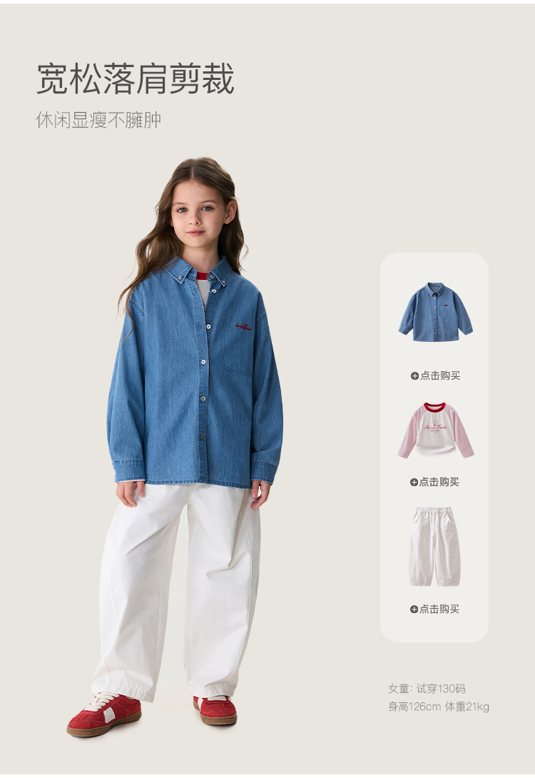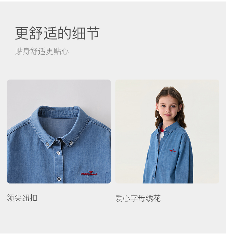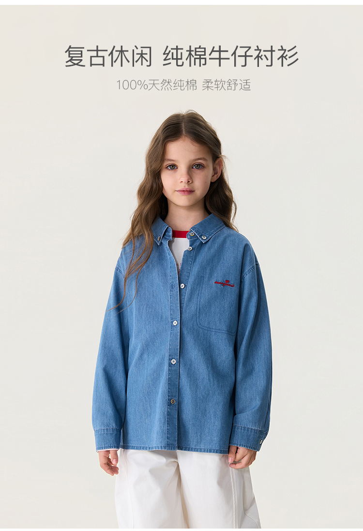 马克珍妮复古休闲女童纯棉牛仔衬衫2026年春装新款560201