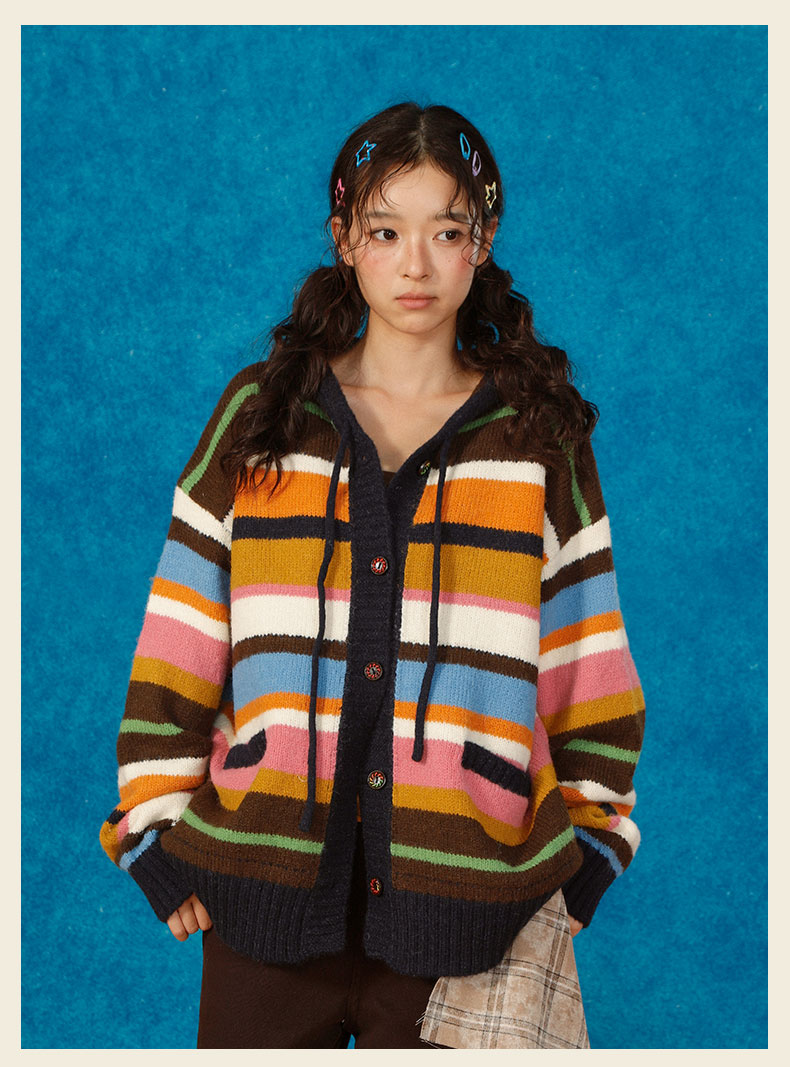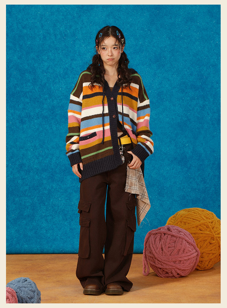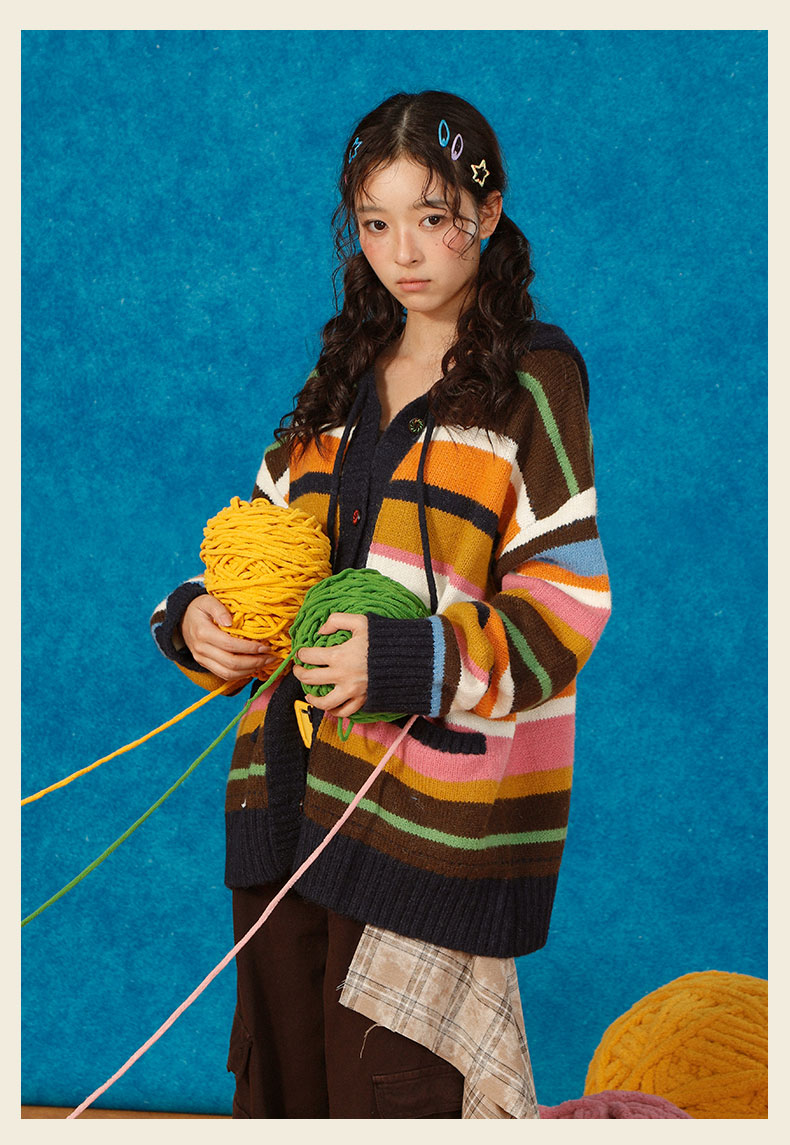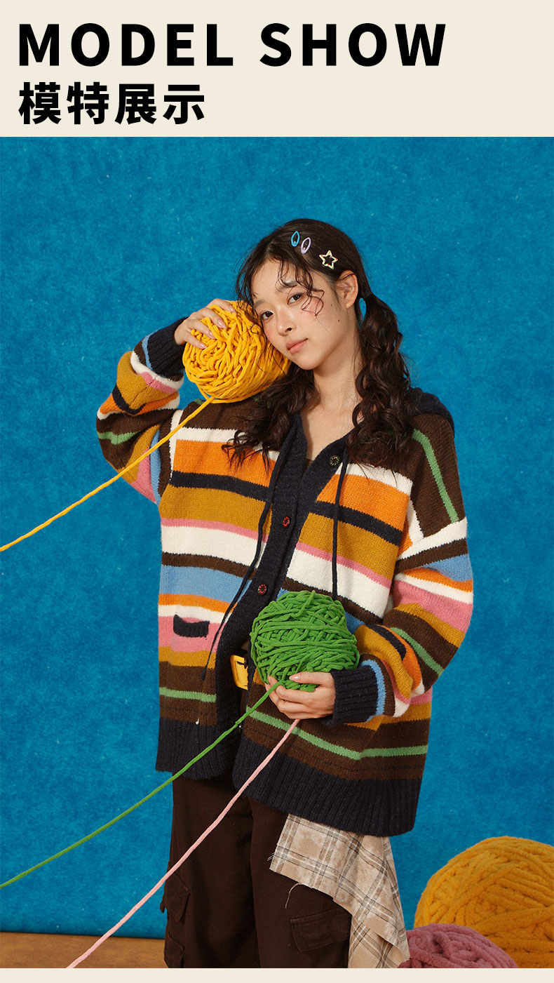 休闲条纹拼接纽扣开衫-纪念日百货门店同款166546505
