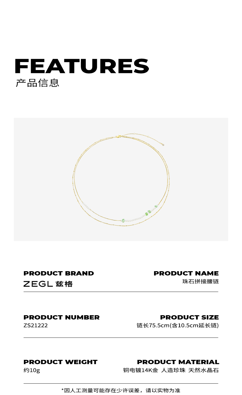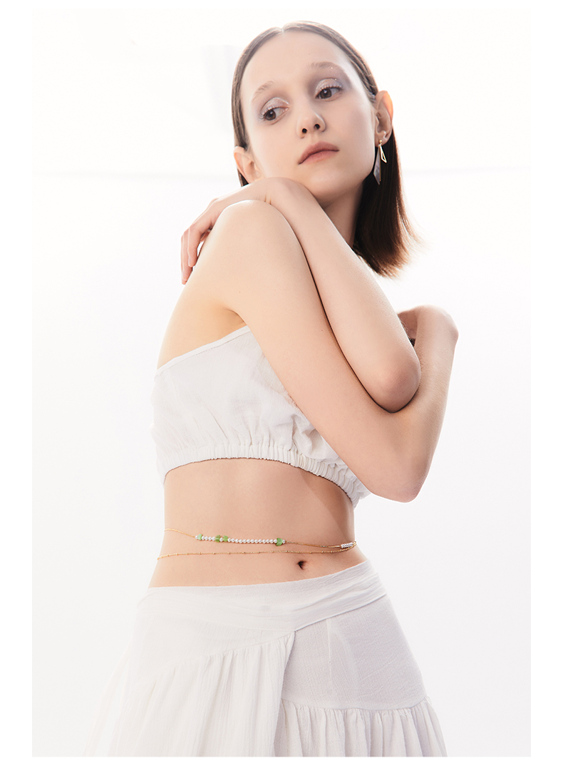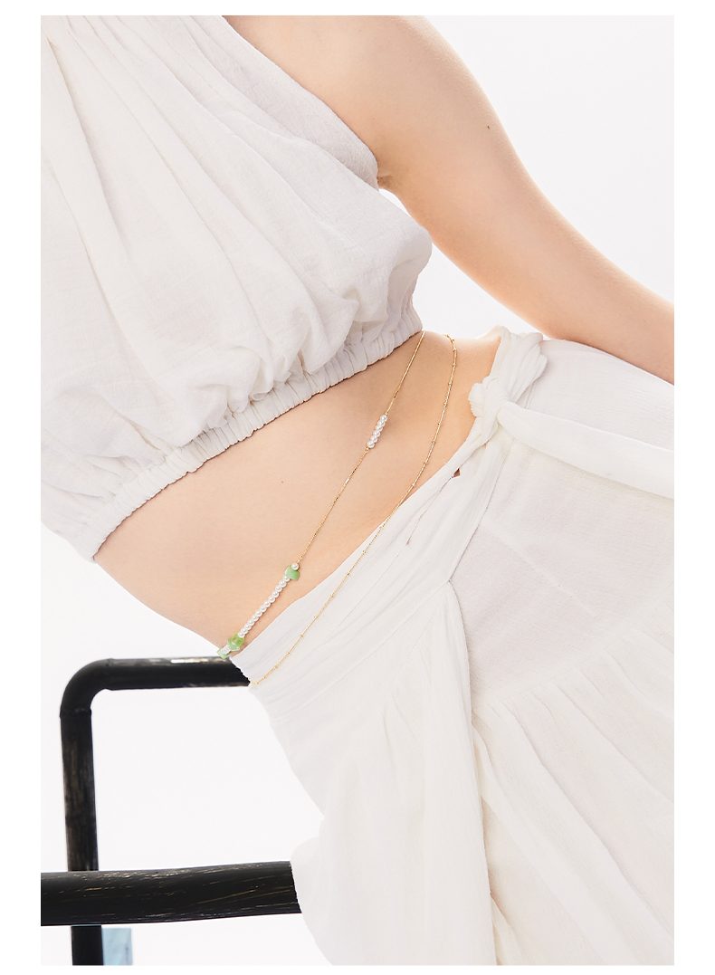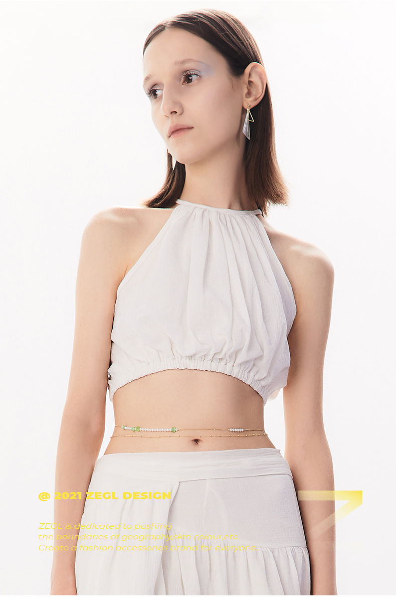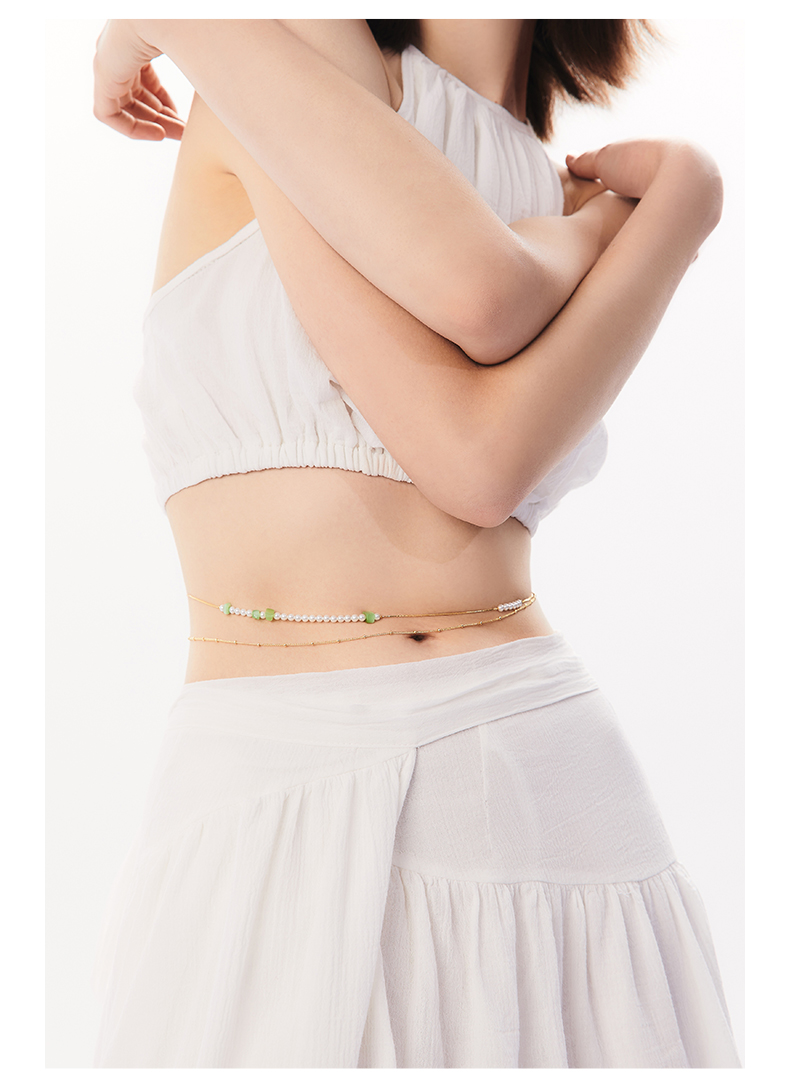 ZEGL设计师人造珍珠晶石头腰链女夏季优雅配裙子身体链网红配饰品