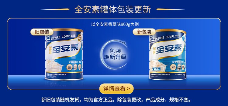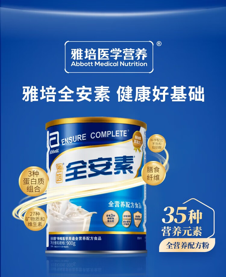 雅培(Abbott) 全安素 原装进口成人全营养配方粉含蛋白质 维生素 膳食纤维 原味(香草味)