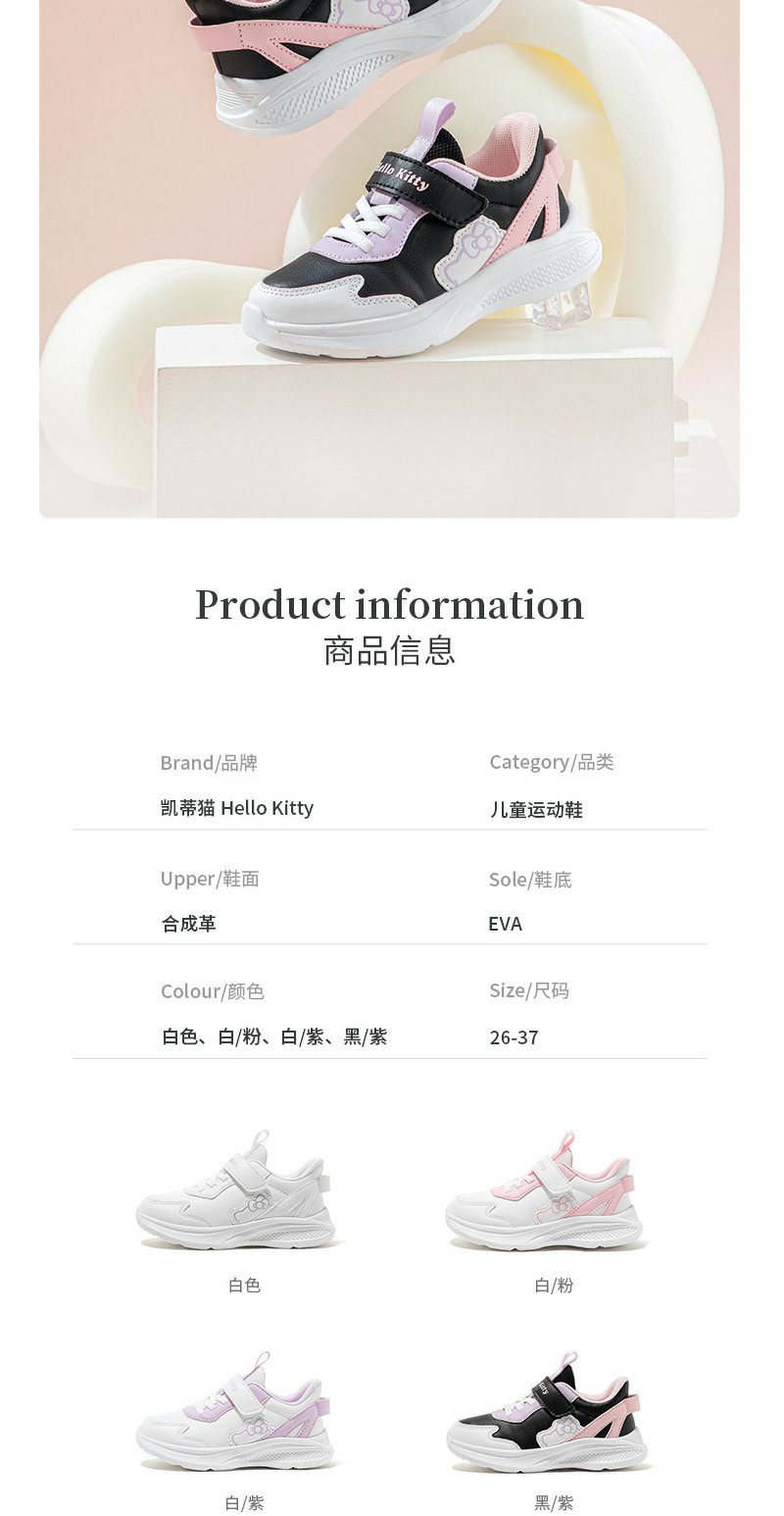 HelloKitty童鞋女童运动鞋小白鞋春秋款女孩休闲鞋26-37 K3536805