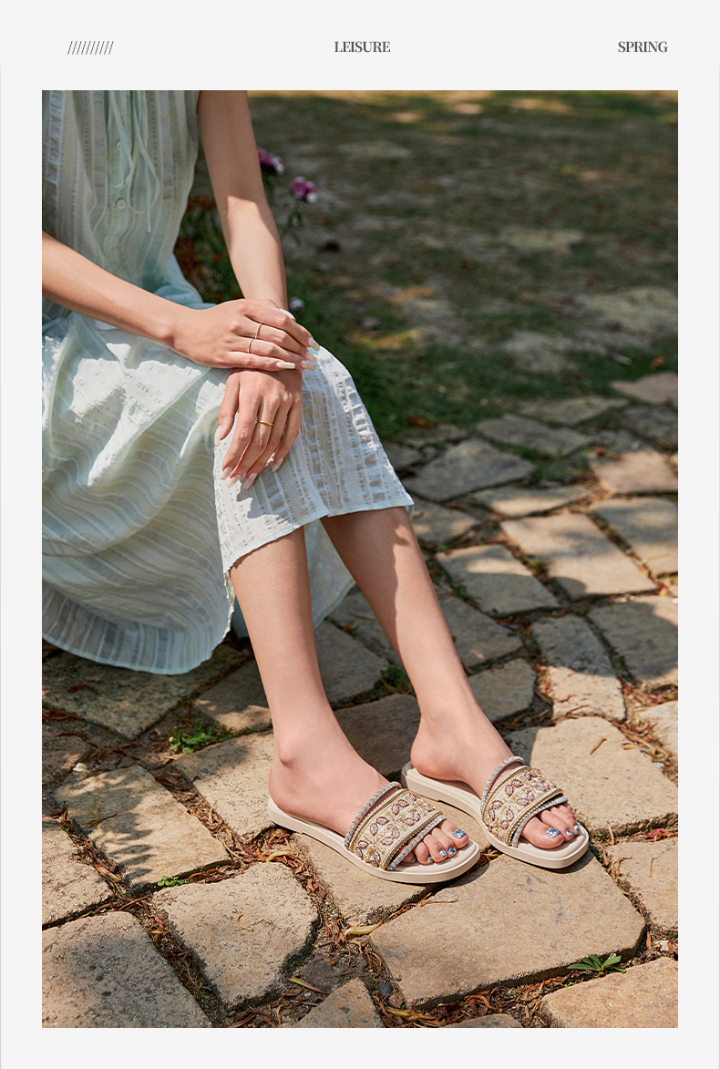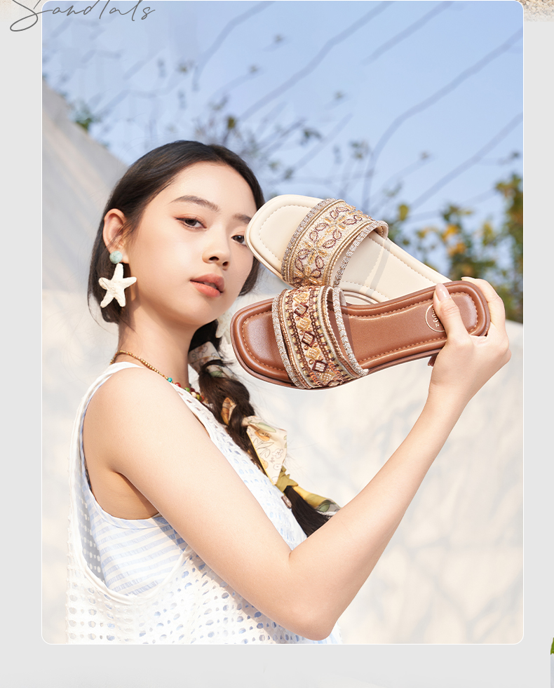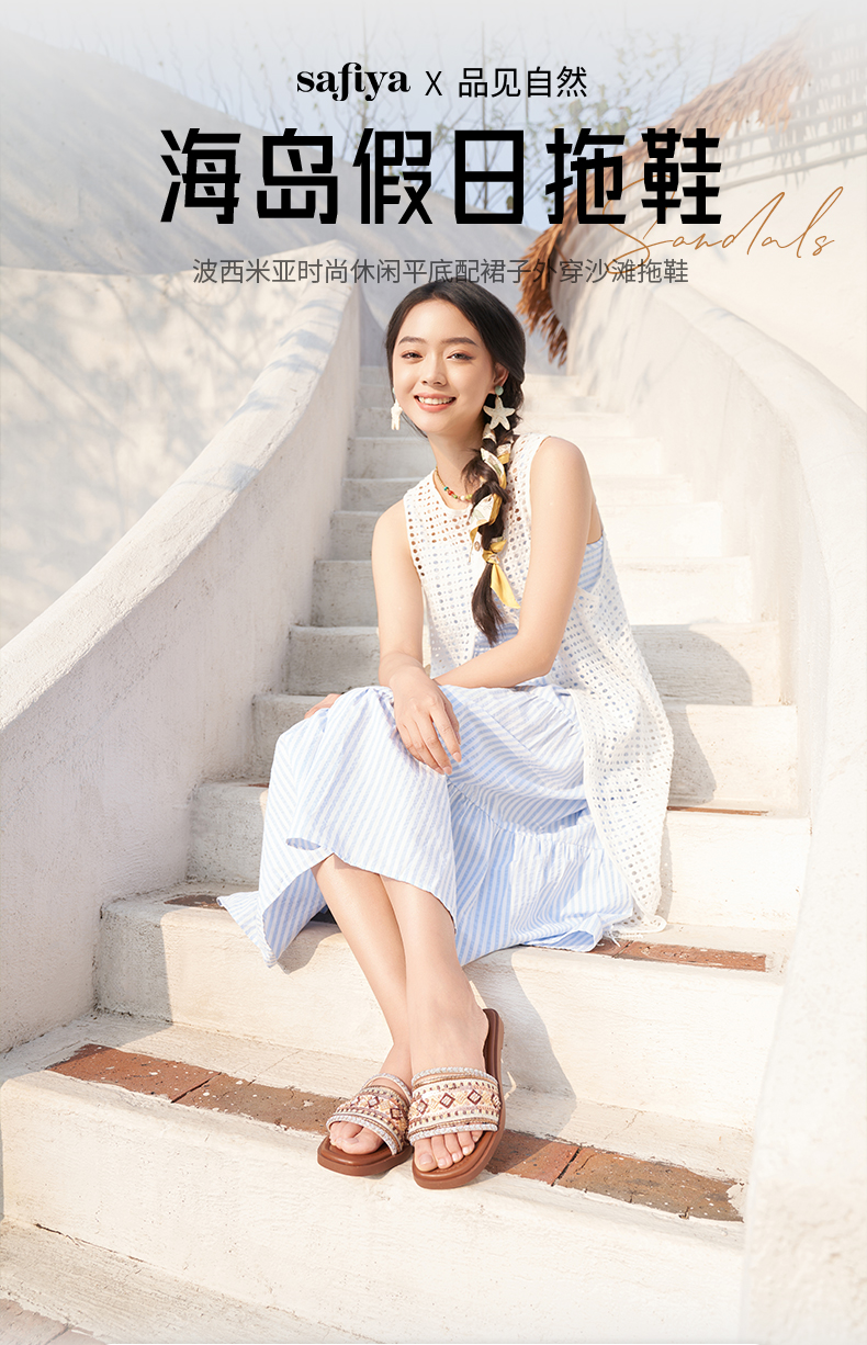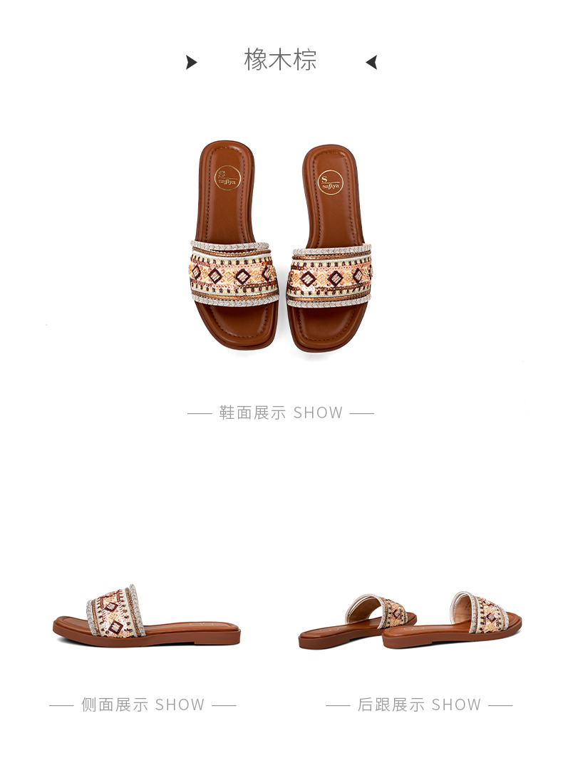 Safiya/索菲娅2025波西米亚时尚休闲平底配裙子外穿沙滩拖鞋SFD2110M64/SFD2110364