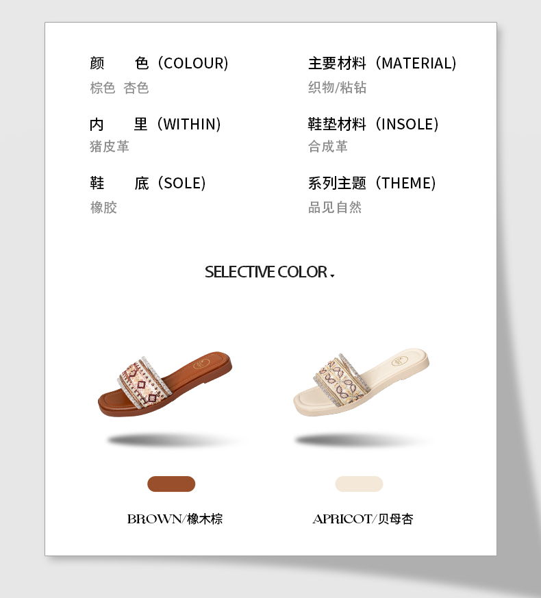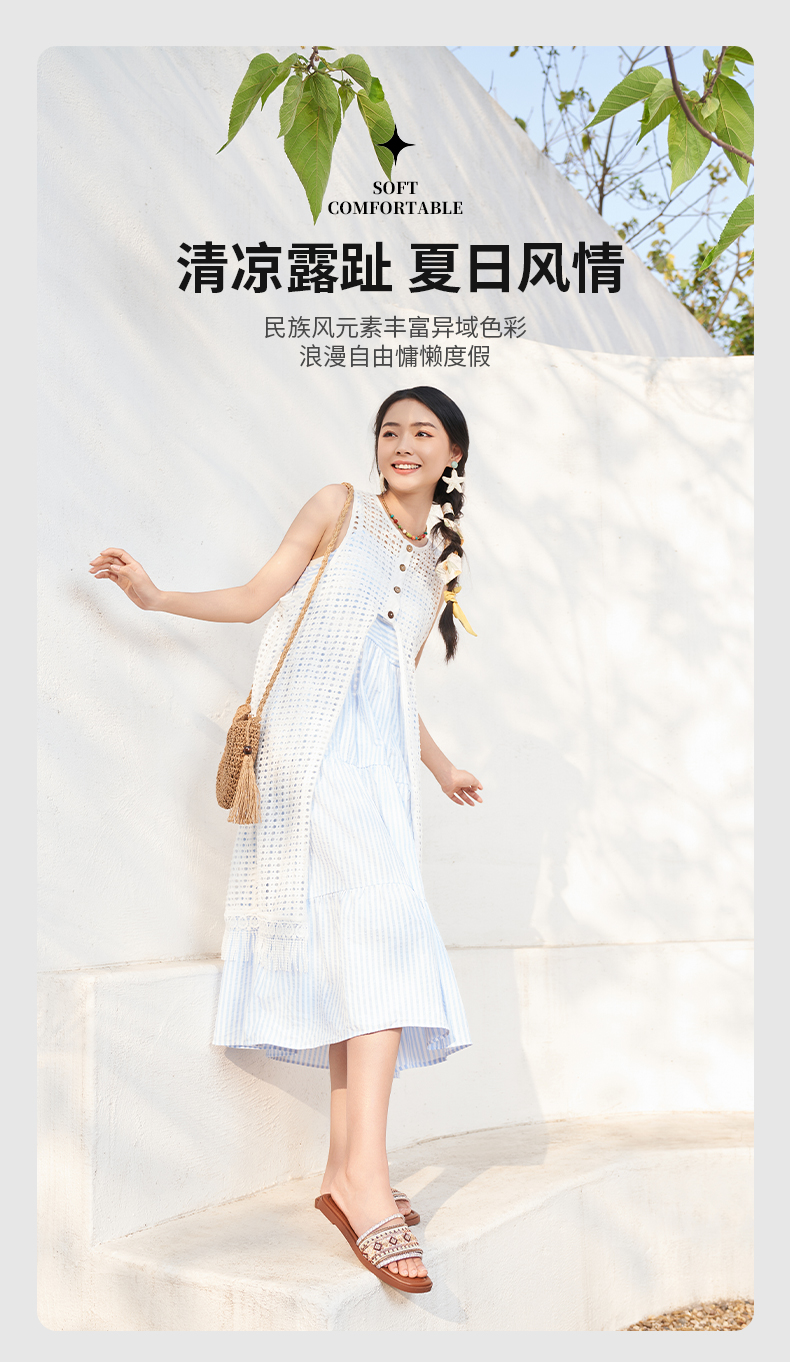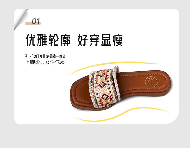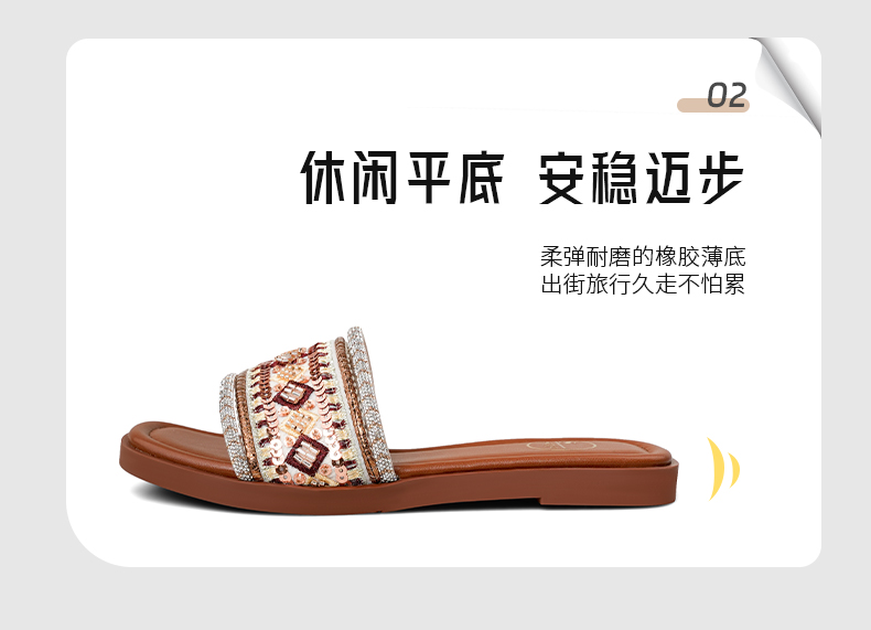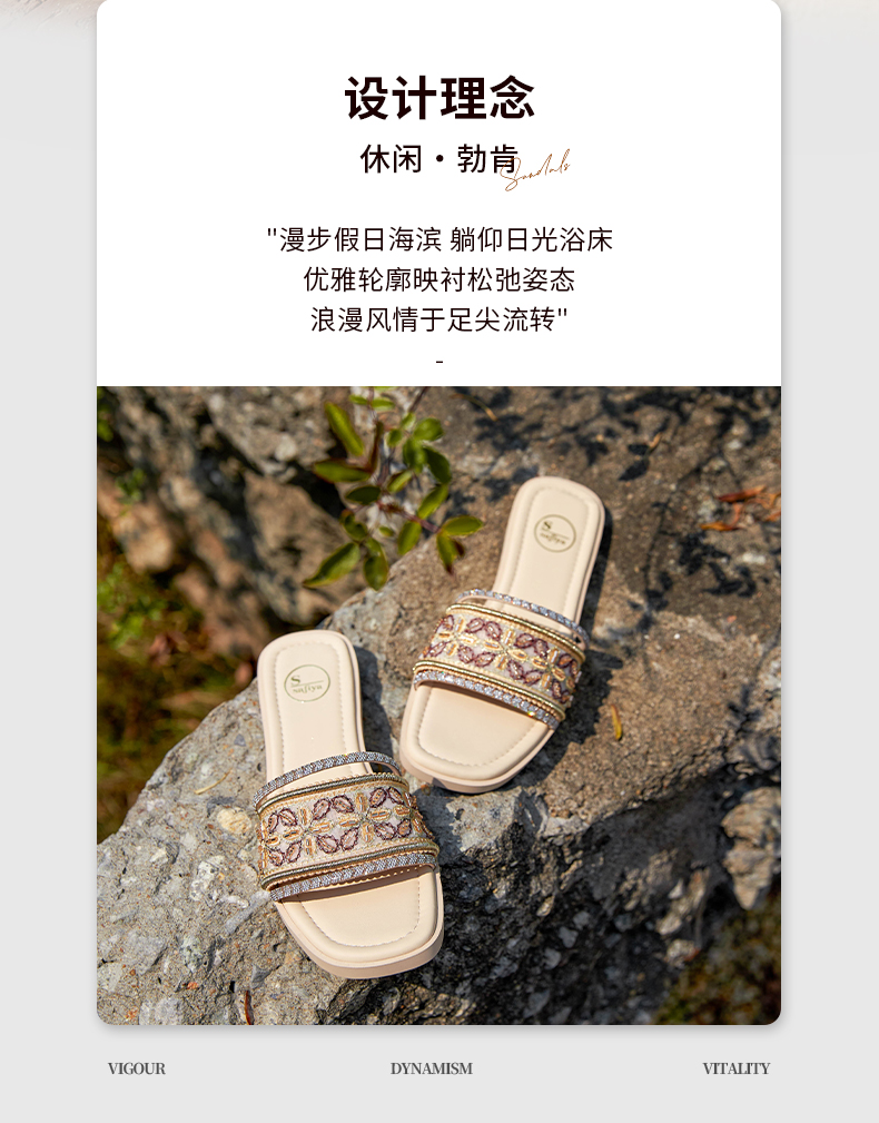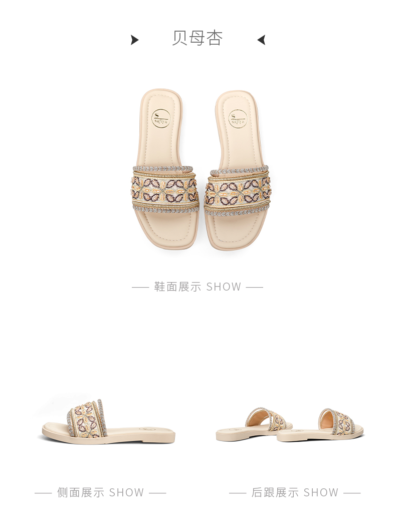 Safiya/索菲娅2025波西米亚时尚休闲平底配裙子外穿沙滩拖鞋SFD2110M64/SFD2110364