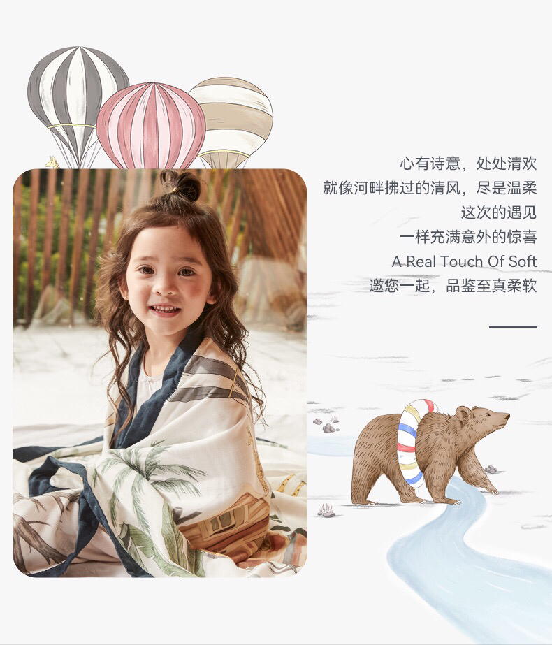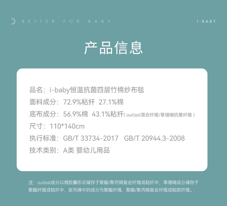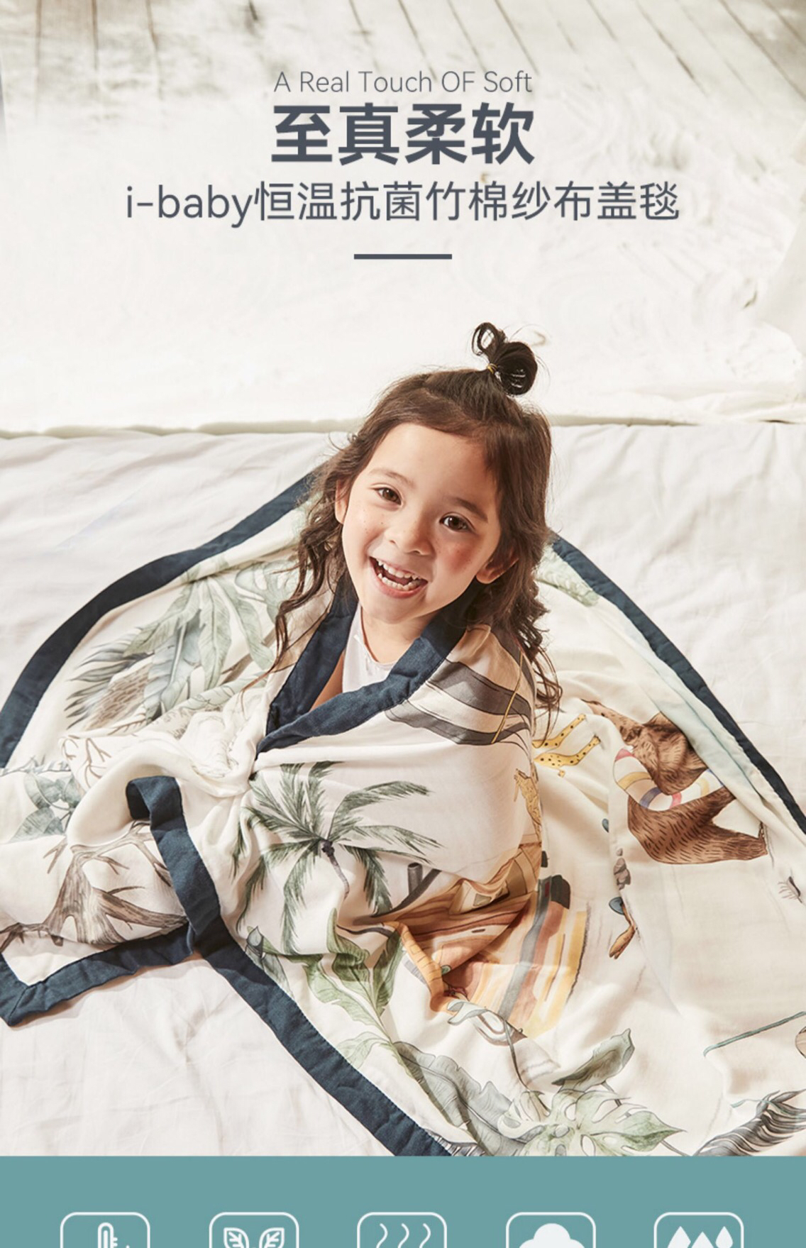 【QHXJ】i-baby恒温纱布毯 宝宝午睡毯四层纱儿童盖毯婴儿纱布童毯