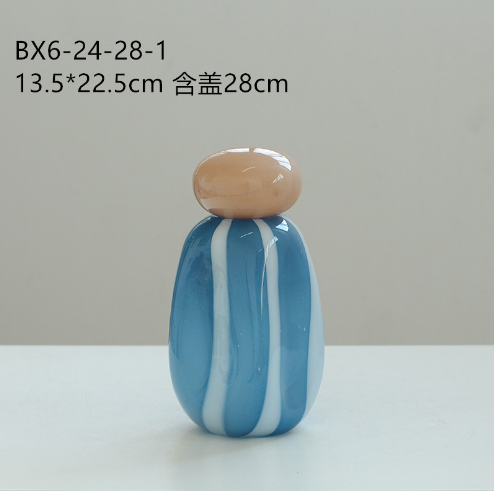 轻奢风创意吹制带盖不规则玻璃花瓶摆件软装设计师家居软装花器