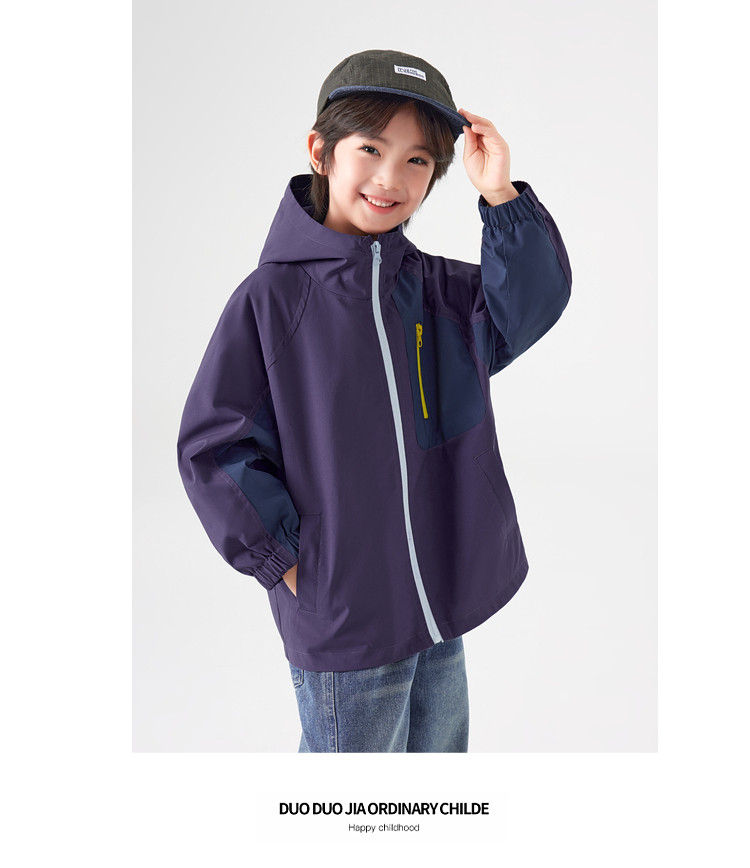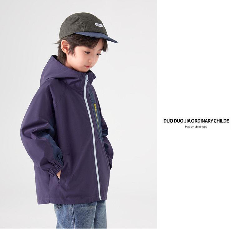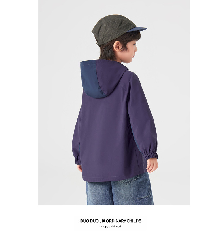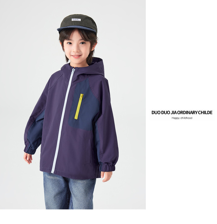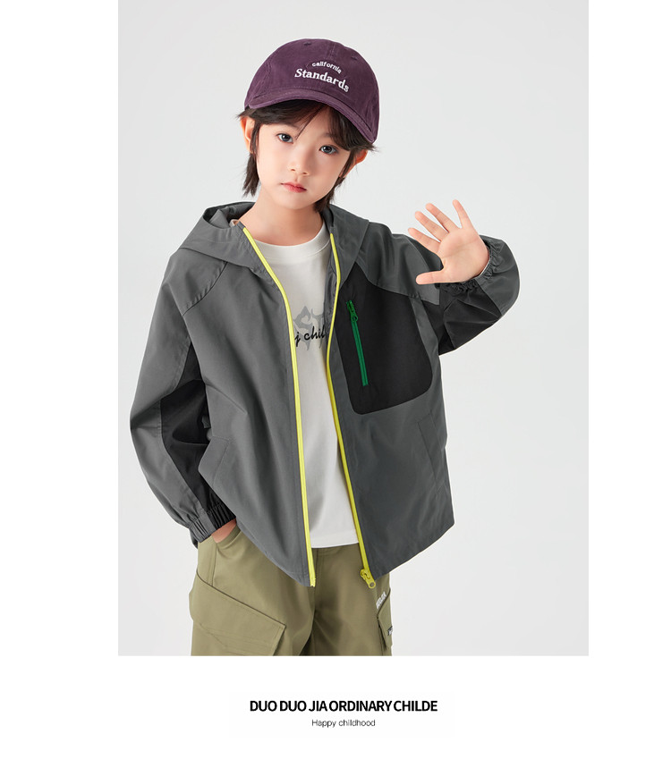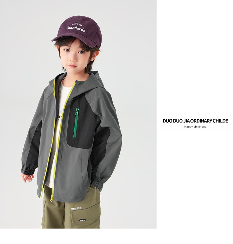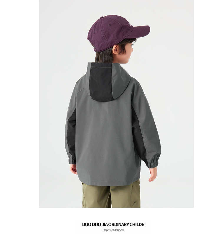 【件件底价,童装双倍积分】多多家男童外套防泼水春秋款2026新款儿童中大童拼色户外连帽上衣11311