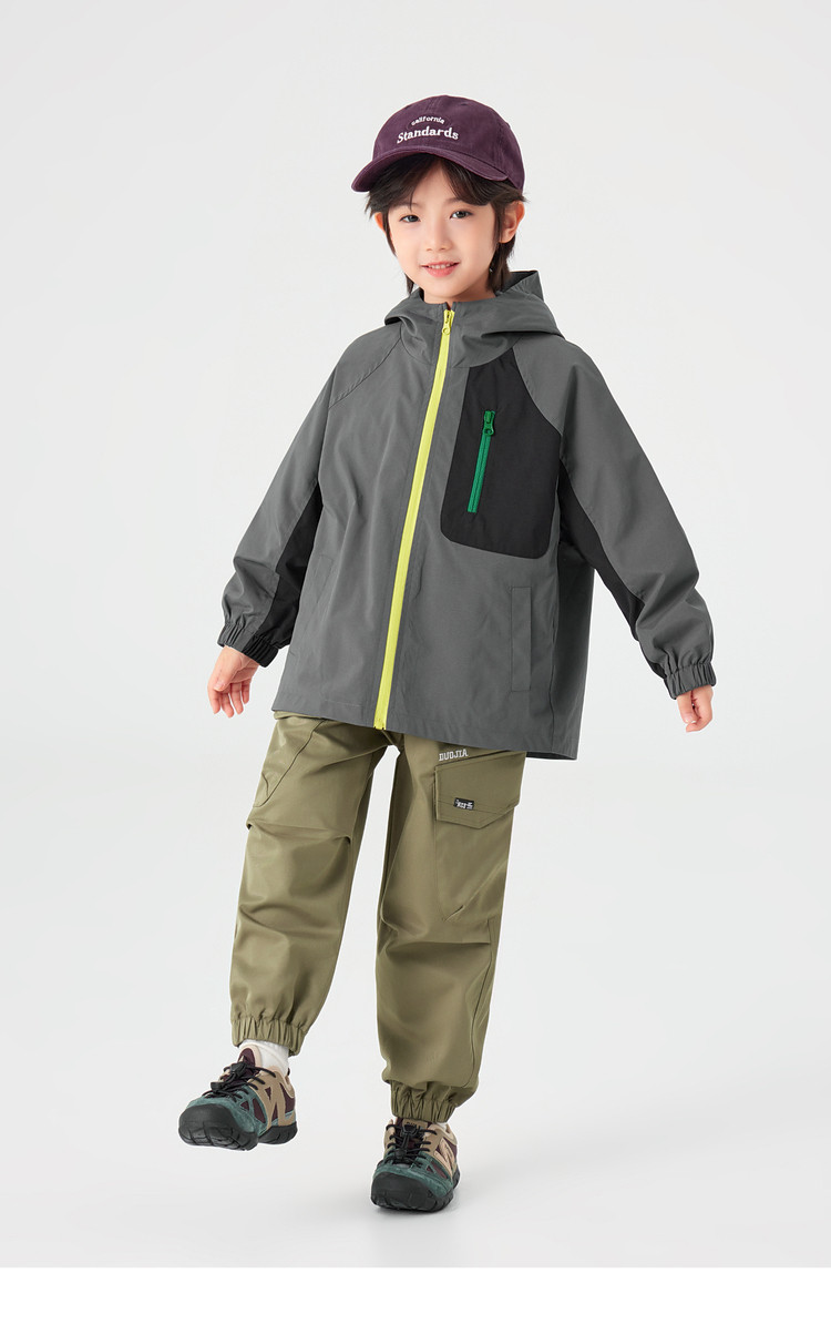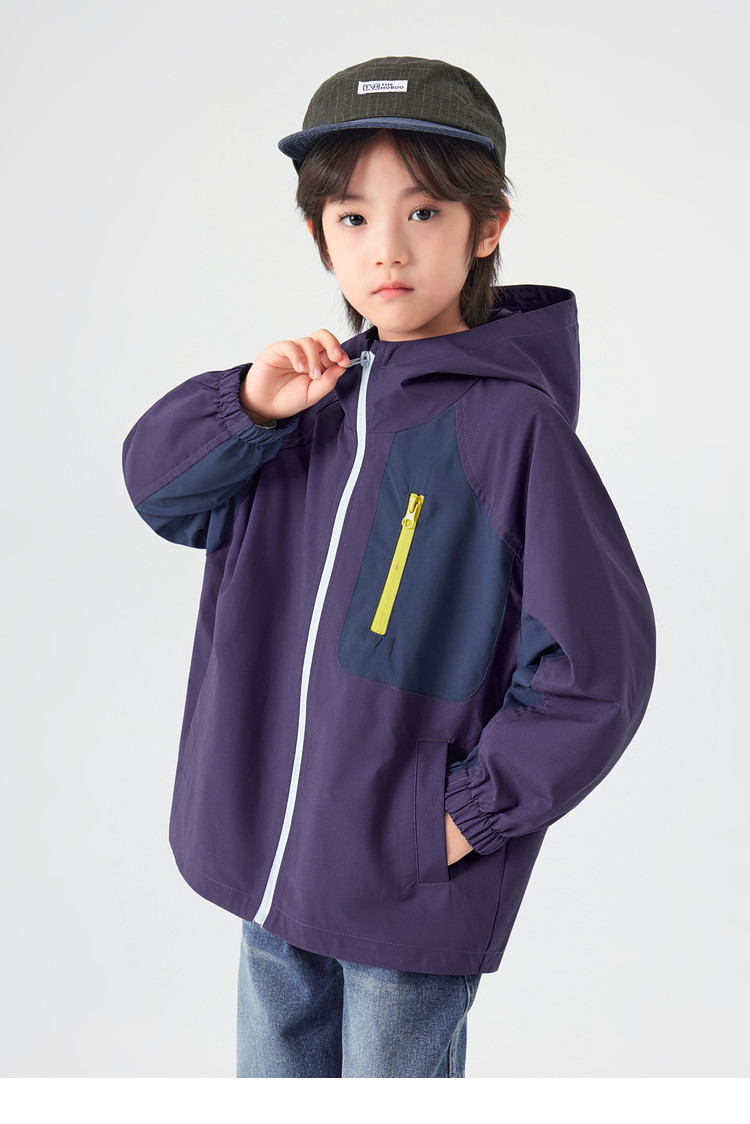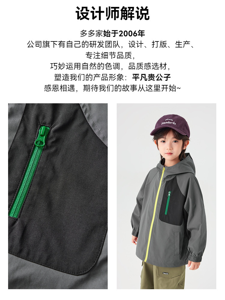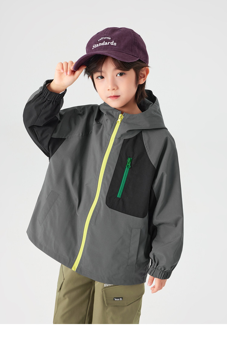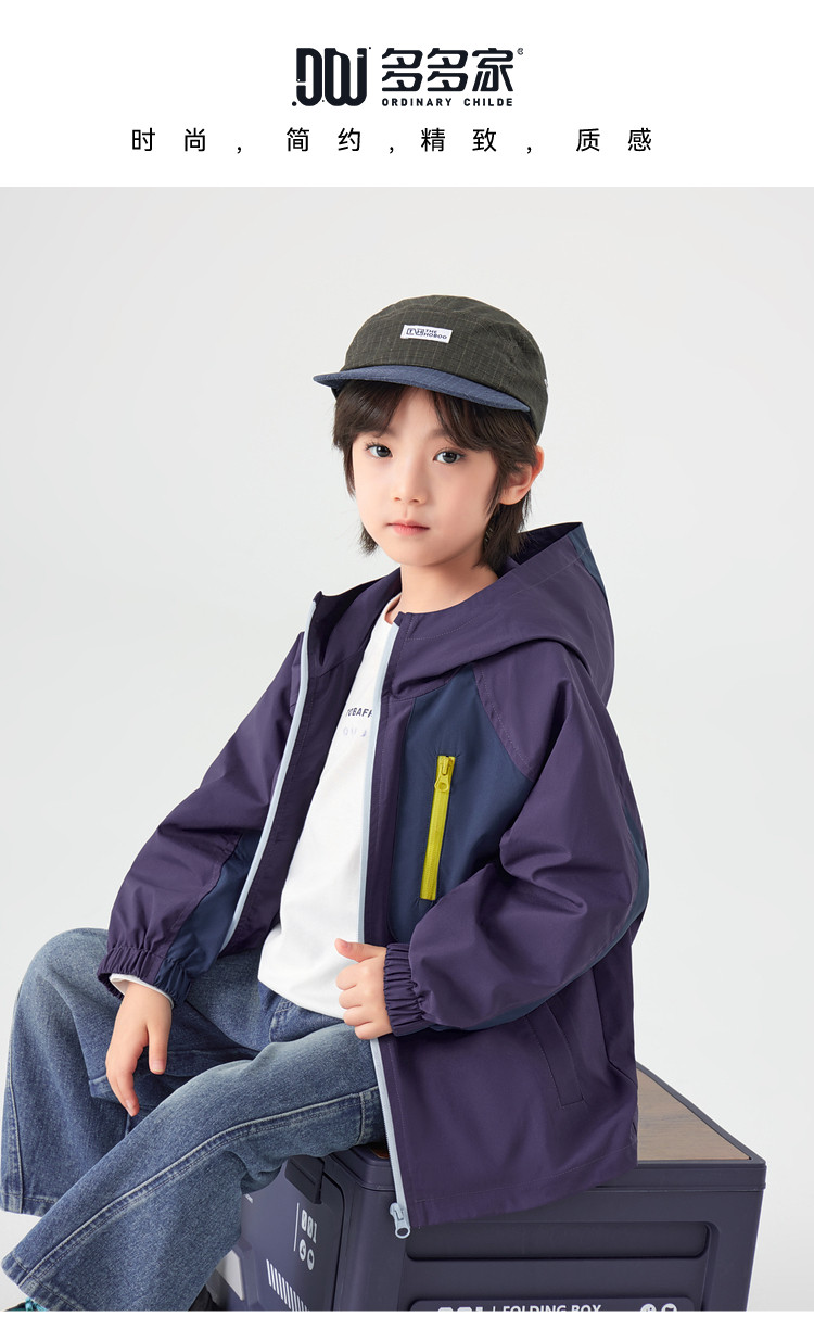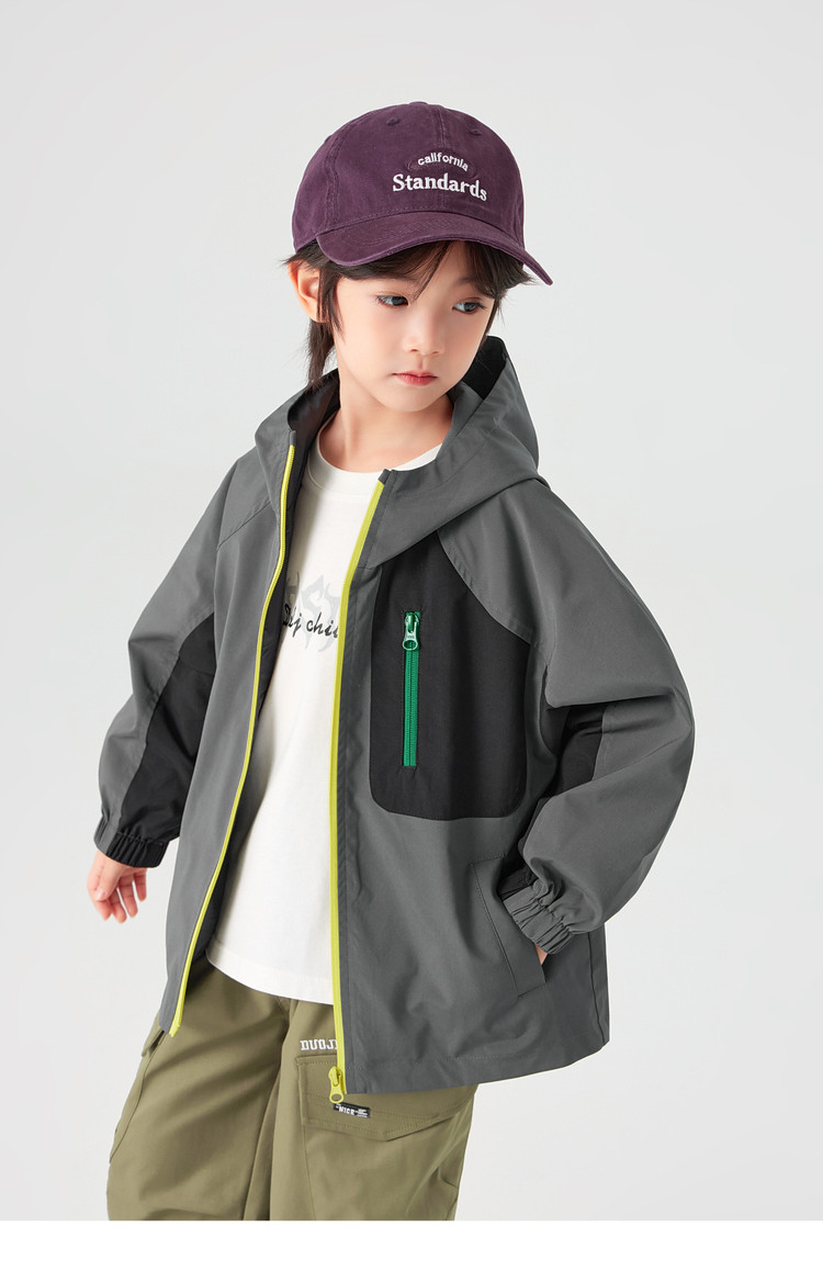 【件件底价,童装双倍积分】多多家男童外套防泼水春秋款2026新款儿童中大童拼色户外连帽上衣11311