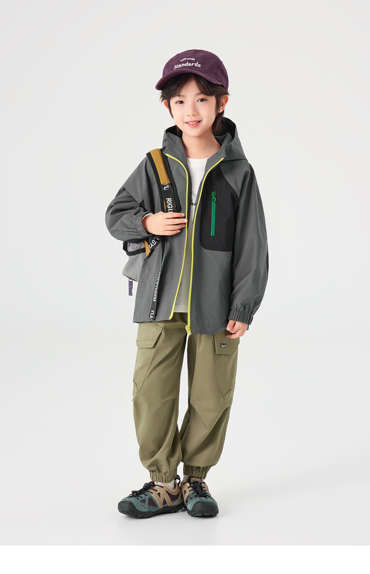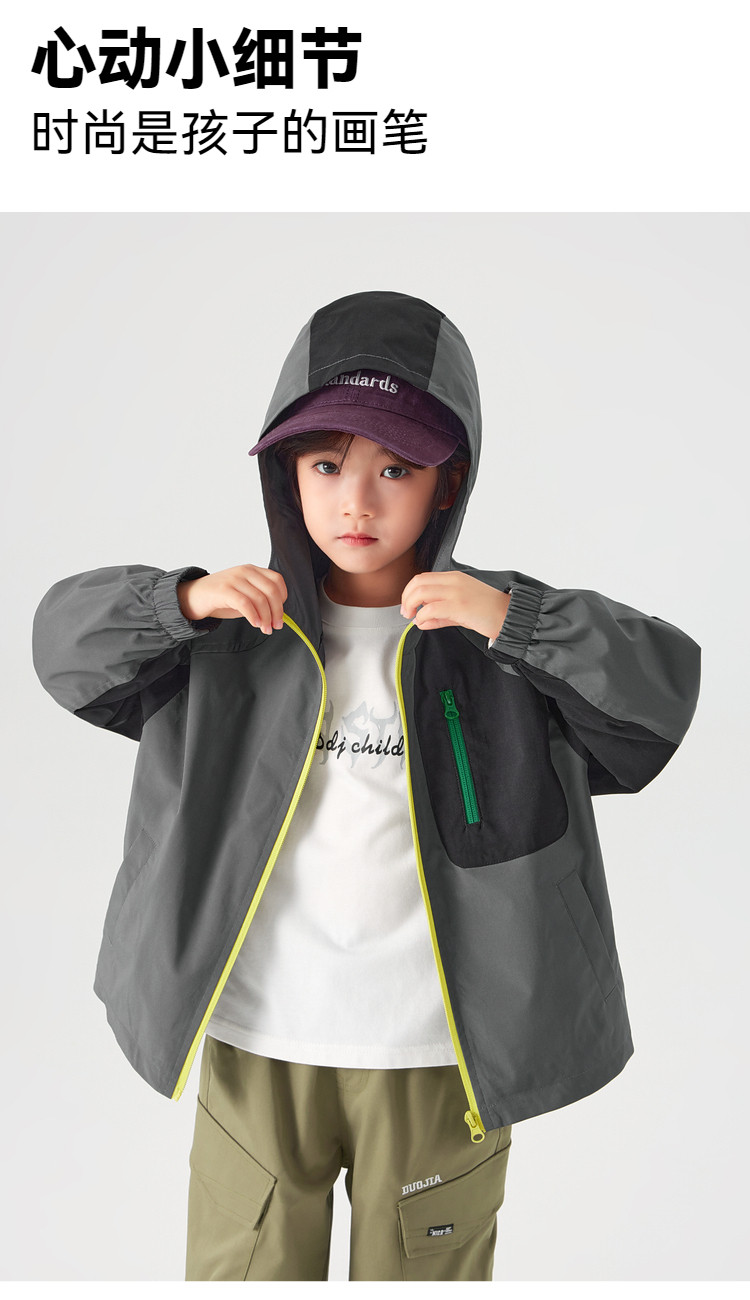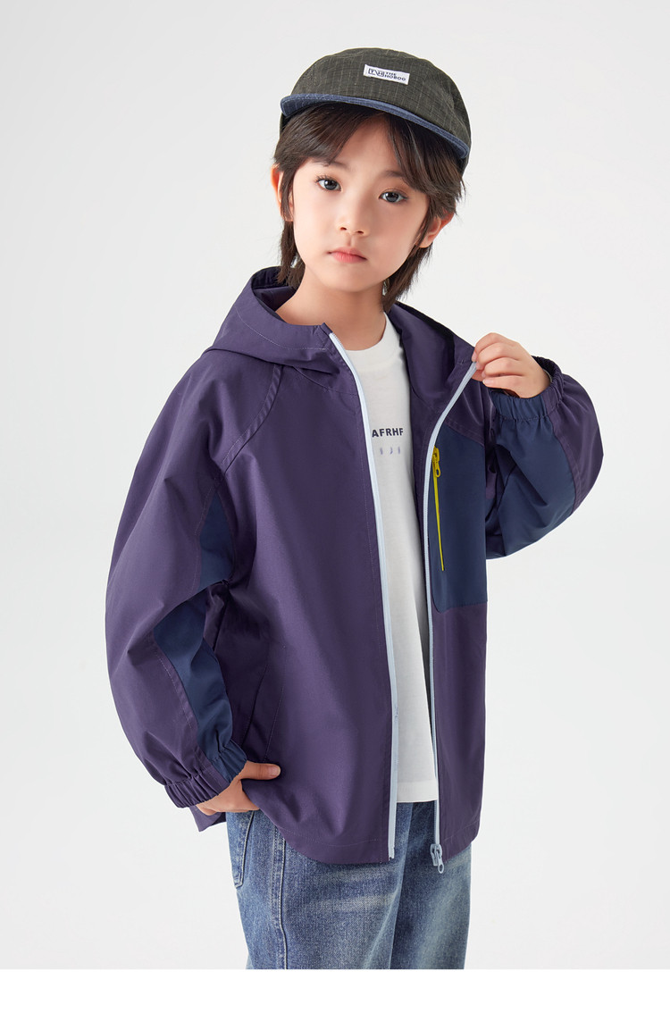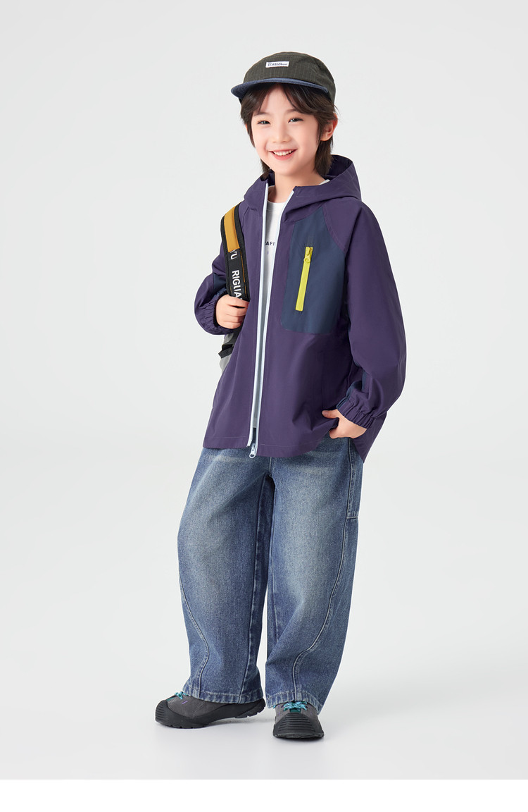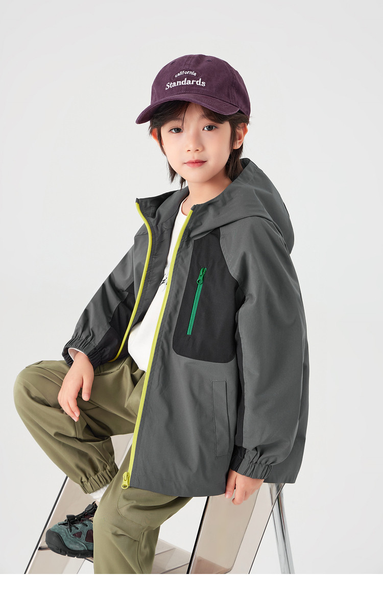 【件件底价,童装双倍积分】多多家男童外套防泼水春秋款2026新款儿童中大童拼色户外连帽上衣11311